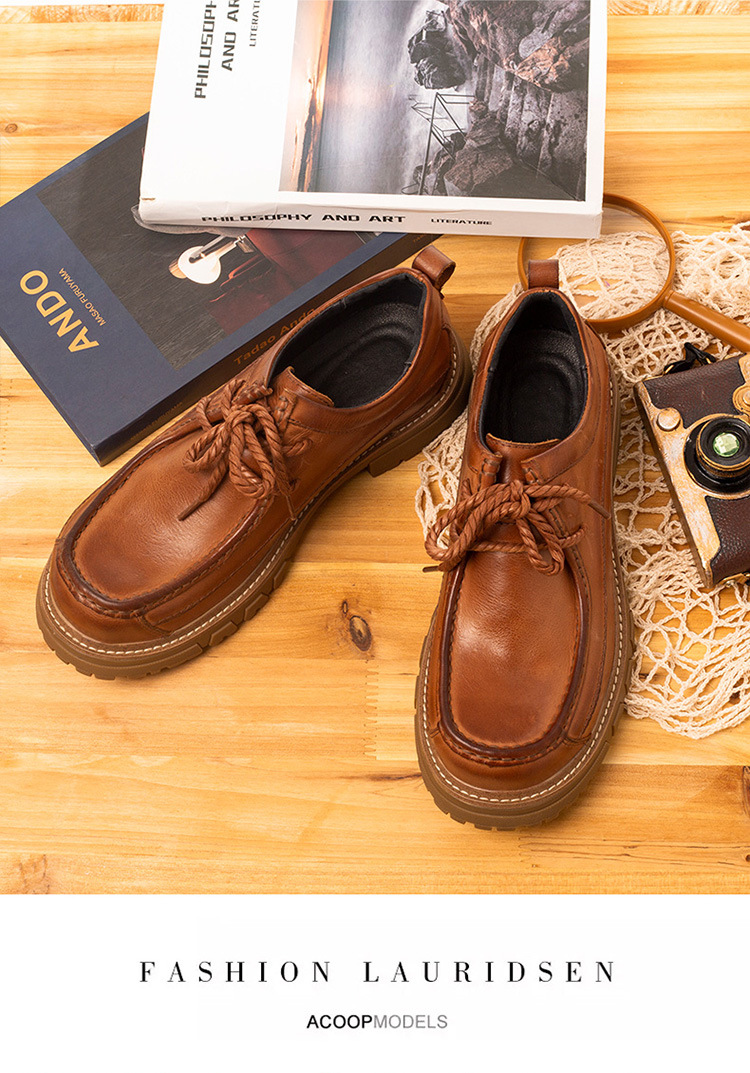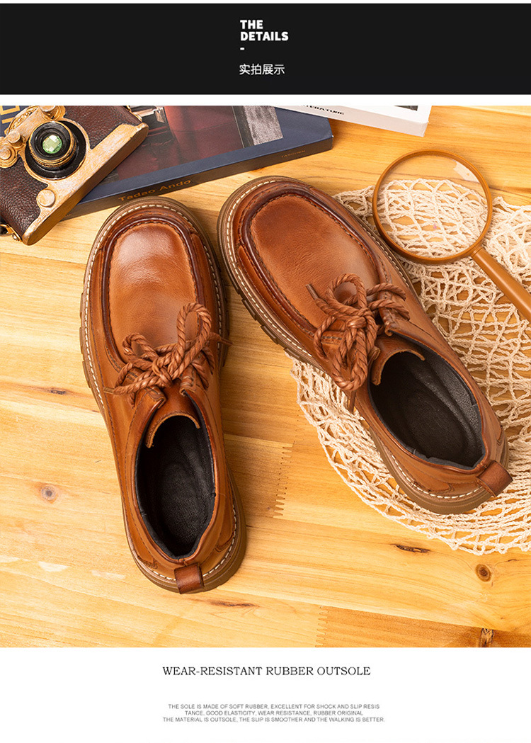작업복 신발 남성 2024 새로운 야외 정품 가죽 복고풍 두꺼운 가죽 신발 남성 올매치 영국 캐주얼 남성 신발 트렌디스토어 가기