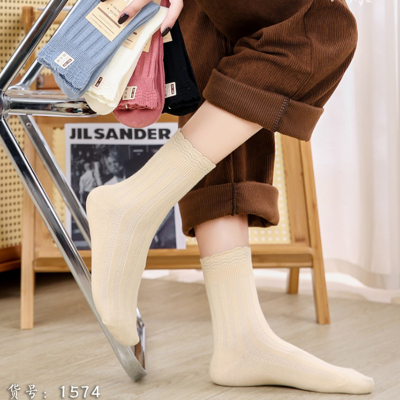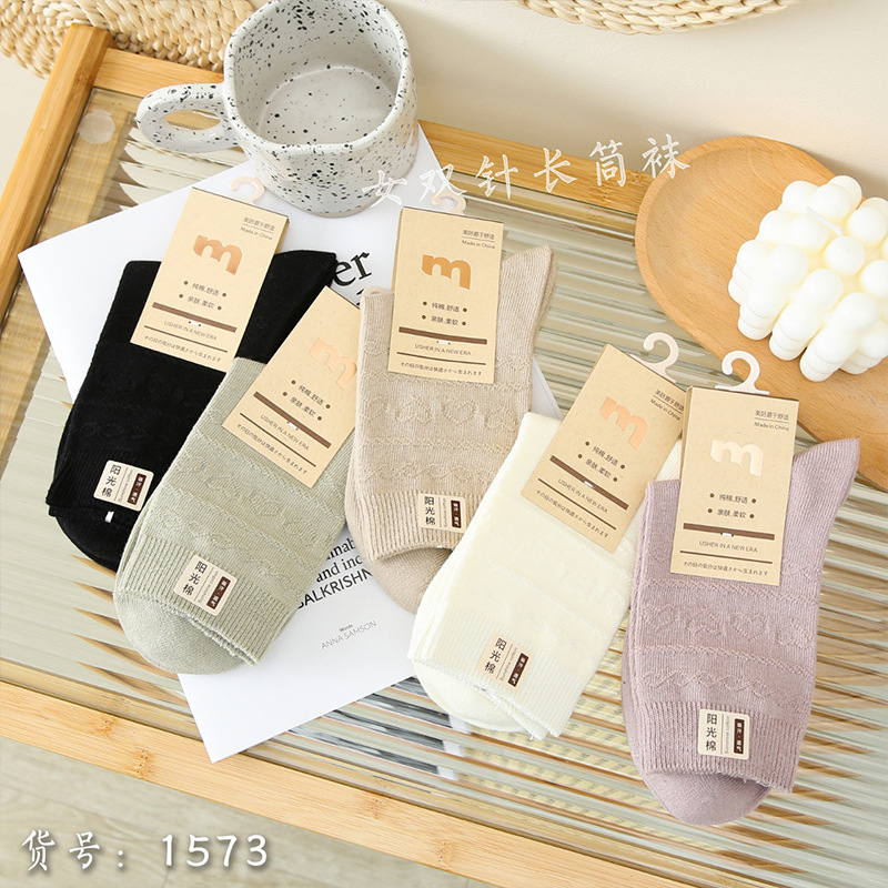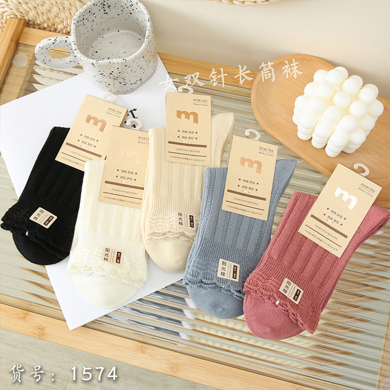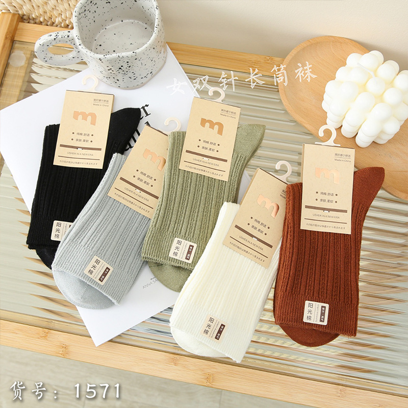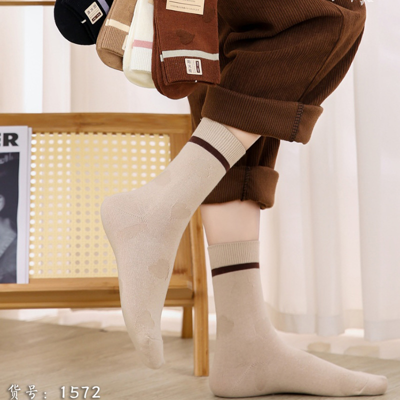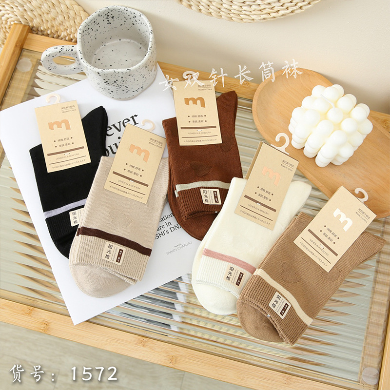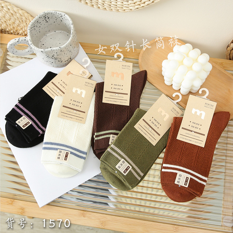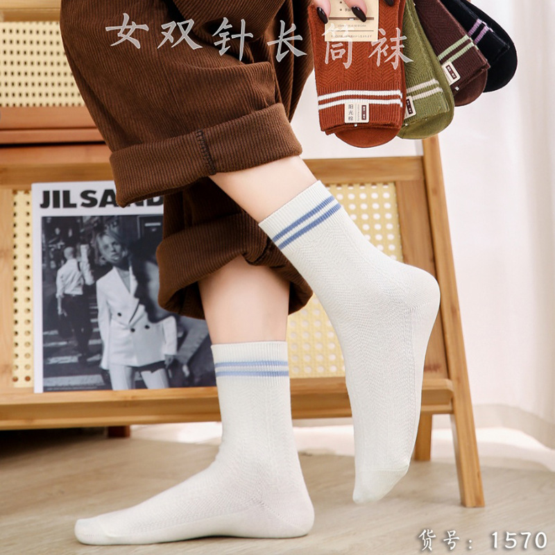 양말 여성 컬러 코튼 중간 길이 양말 Ins 트렌디 한 여성 스타킹 스포츠 일본 스타일 빈티지 더블 바늘 스트라이프 가을과 겨울 스타킹스토어 가기