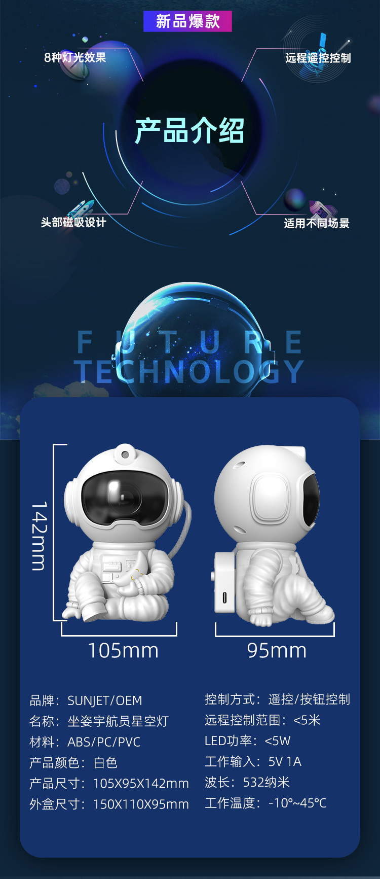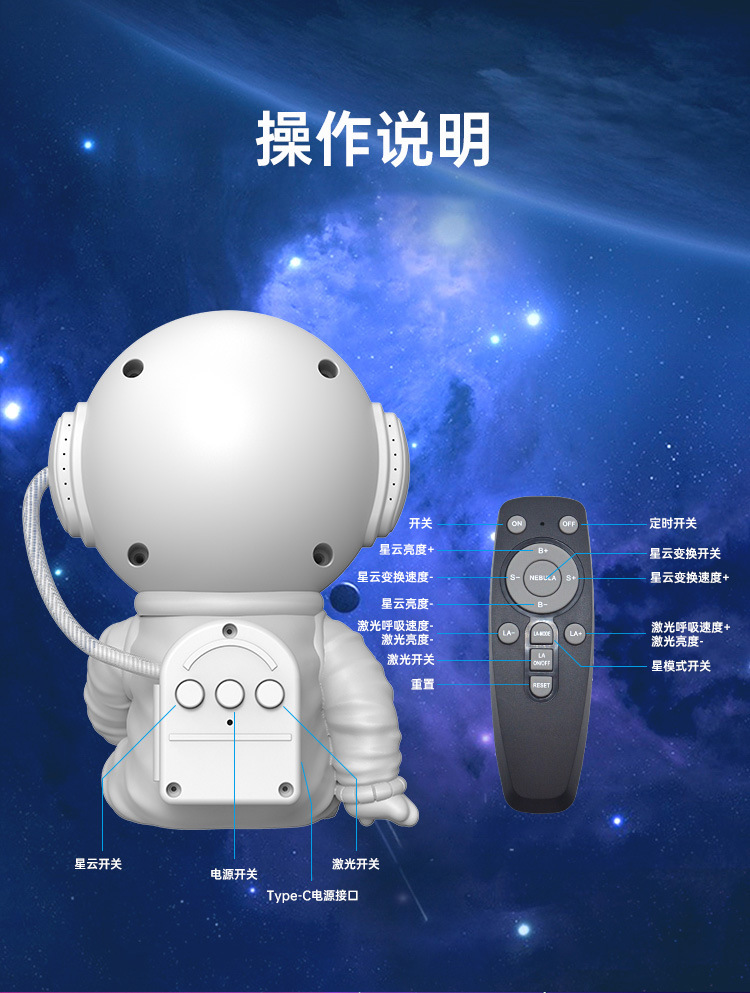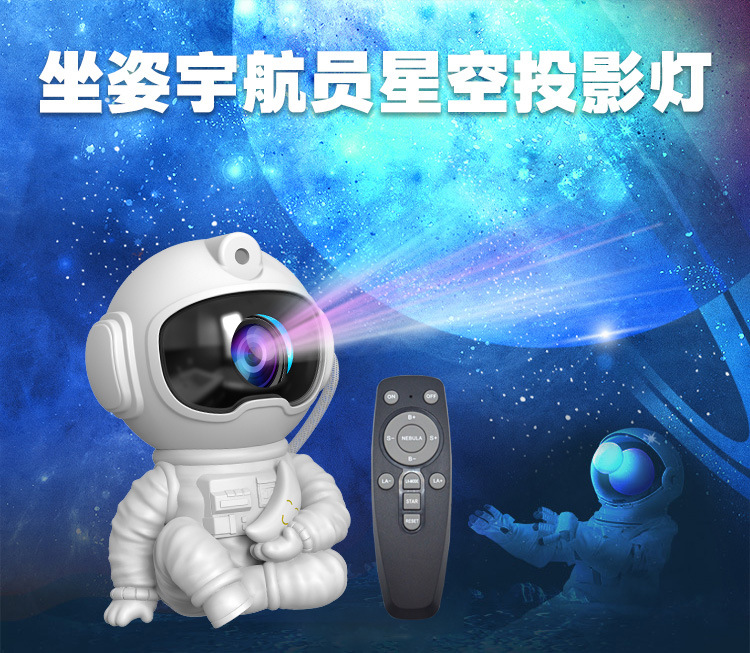 우주비행사 분위기 프로젝션 램프 앉아서 달을 안는 스타일 우주인 리모컨 야간등 침실 프로젝터 별이 빛나는 하늘 프로젝션