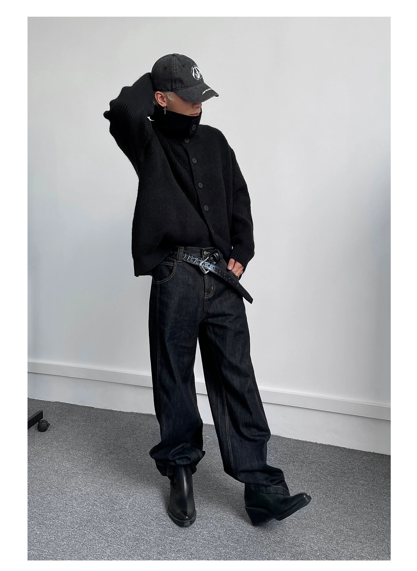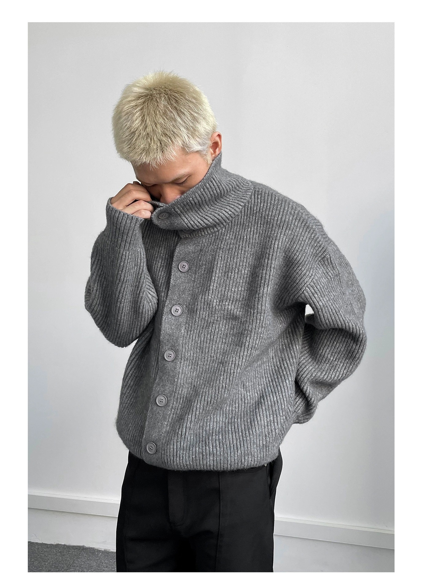 무거운 600G 재킷 남성 패션 브랜드 하이 칼라 버튼 카디건 스웨터 캐주얼 루즈 올 매치 롱 슬리브 메일라드스토어 가기