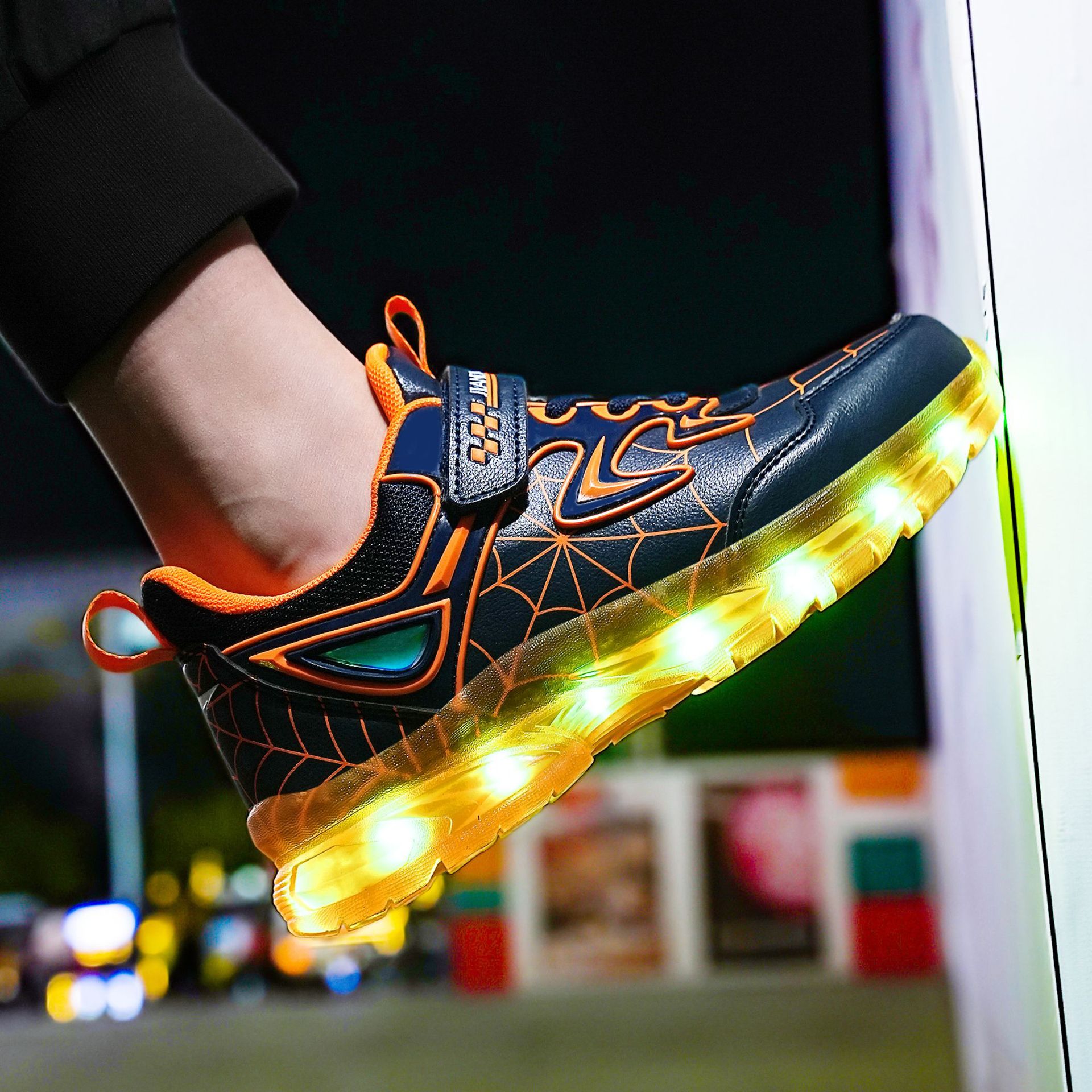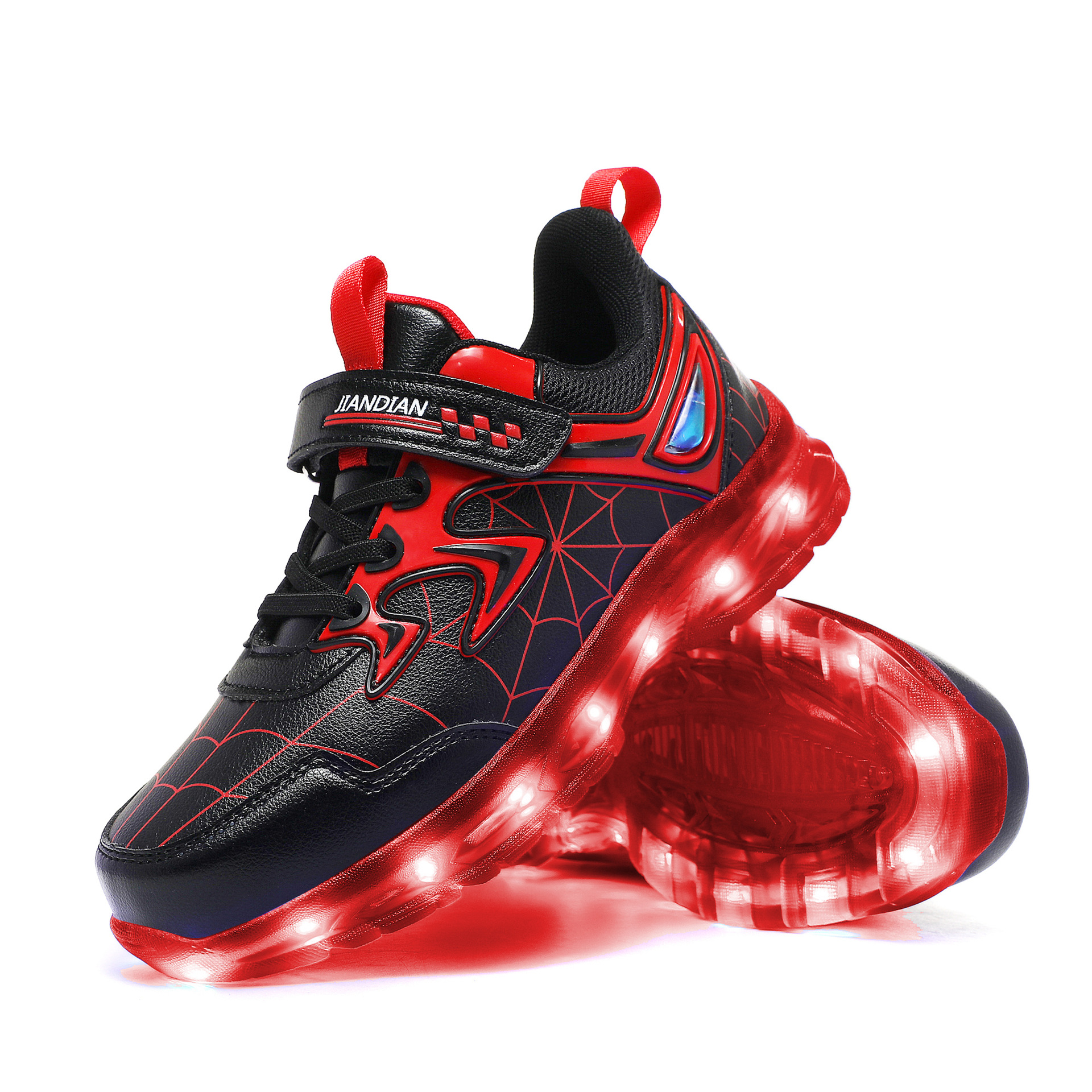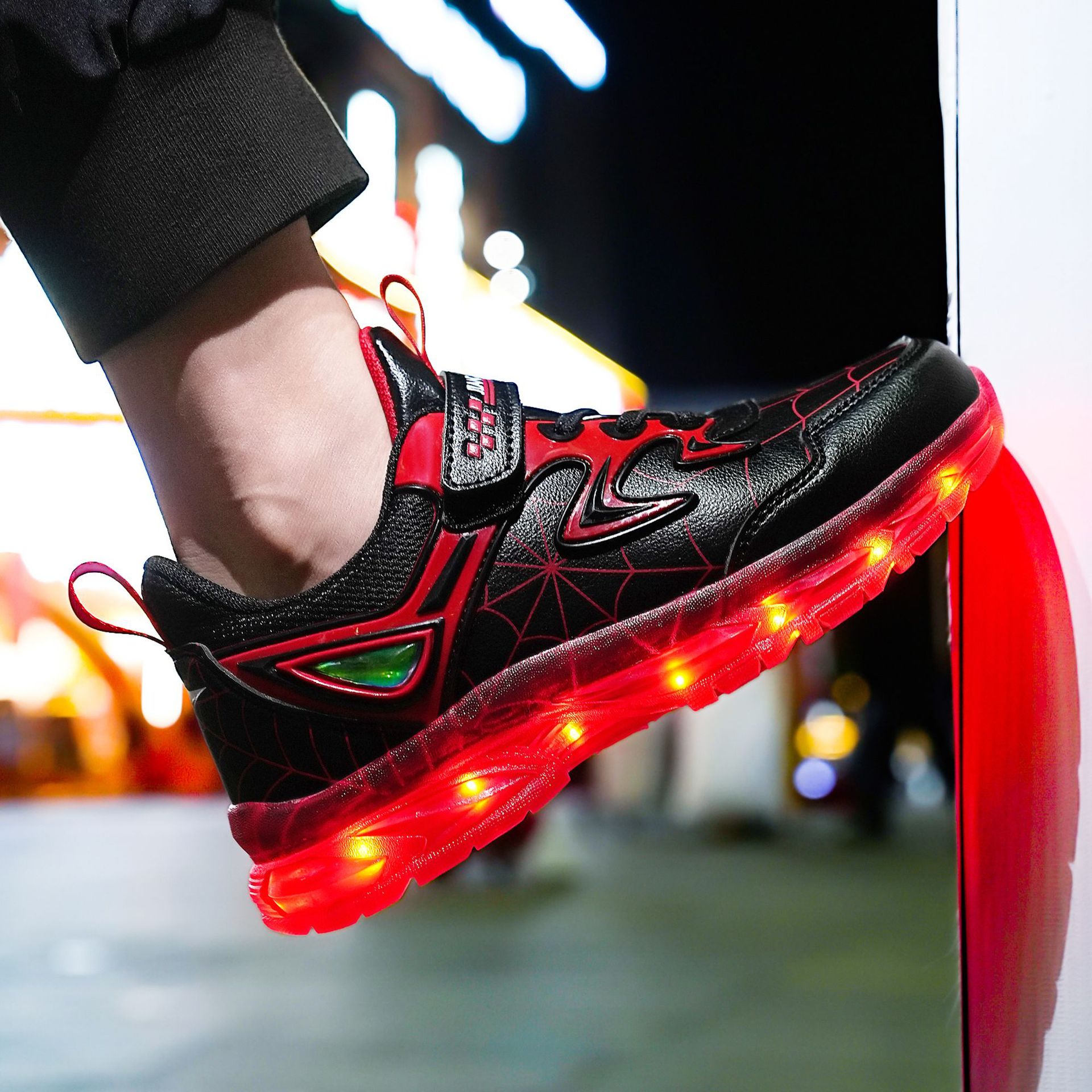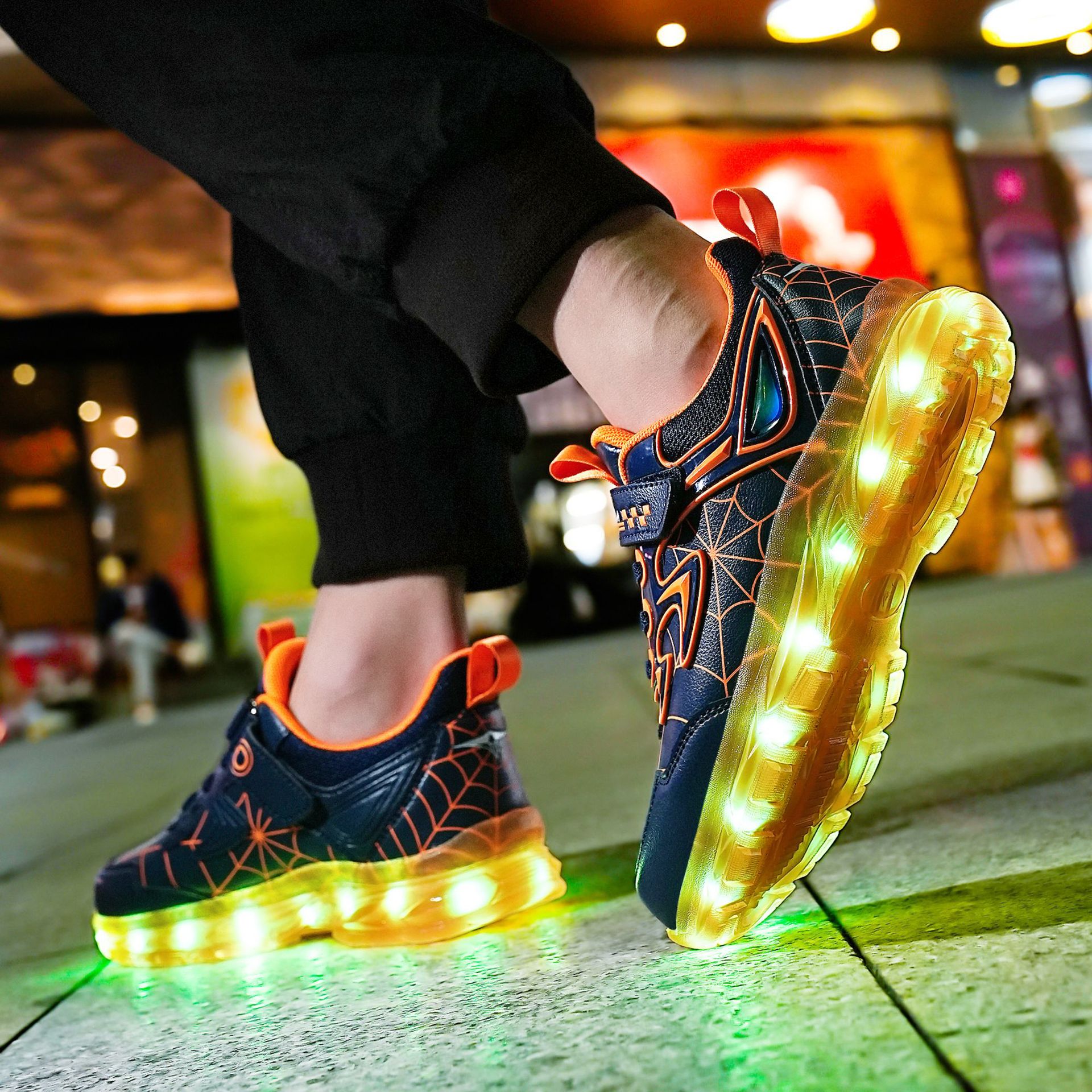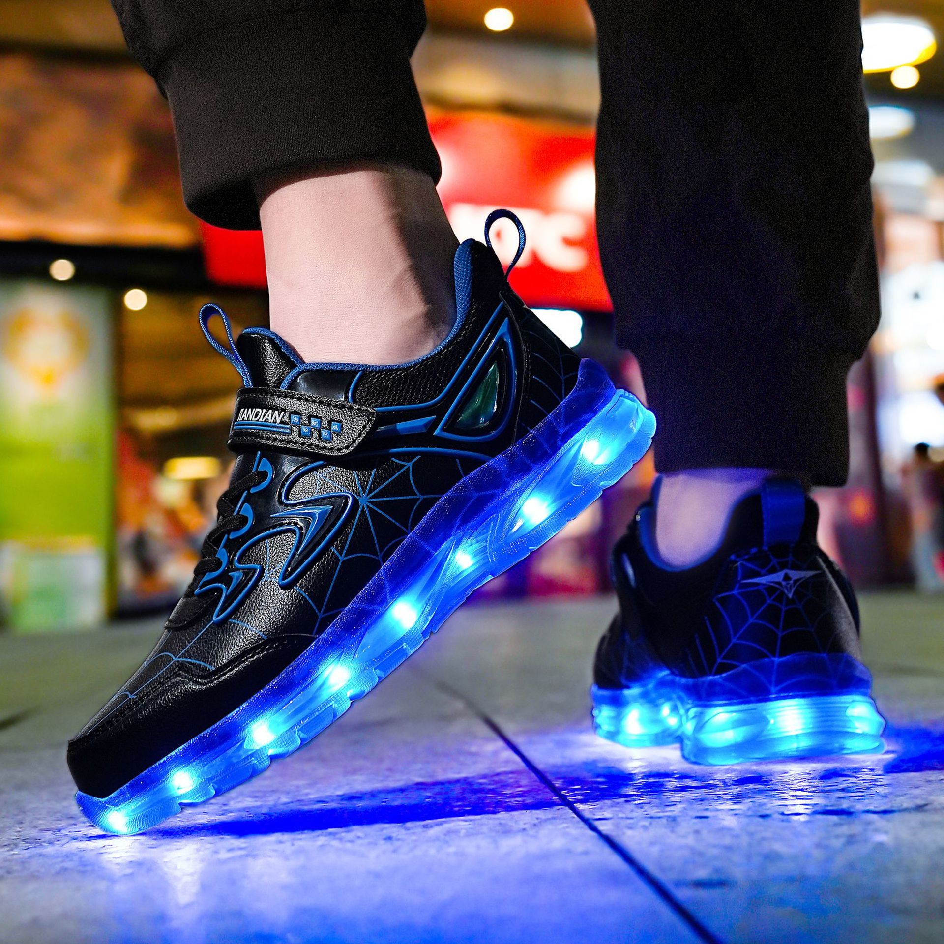 도매 국경 핫 세일 어린이 운동화 LED 충전 화려한 조명 신발 빛나는 신발 소년 신발 거미 신발 7스토어 가기