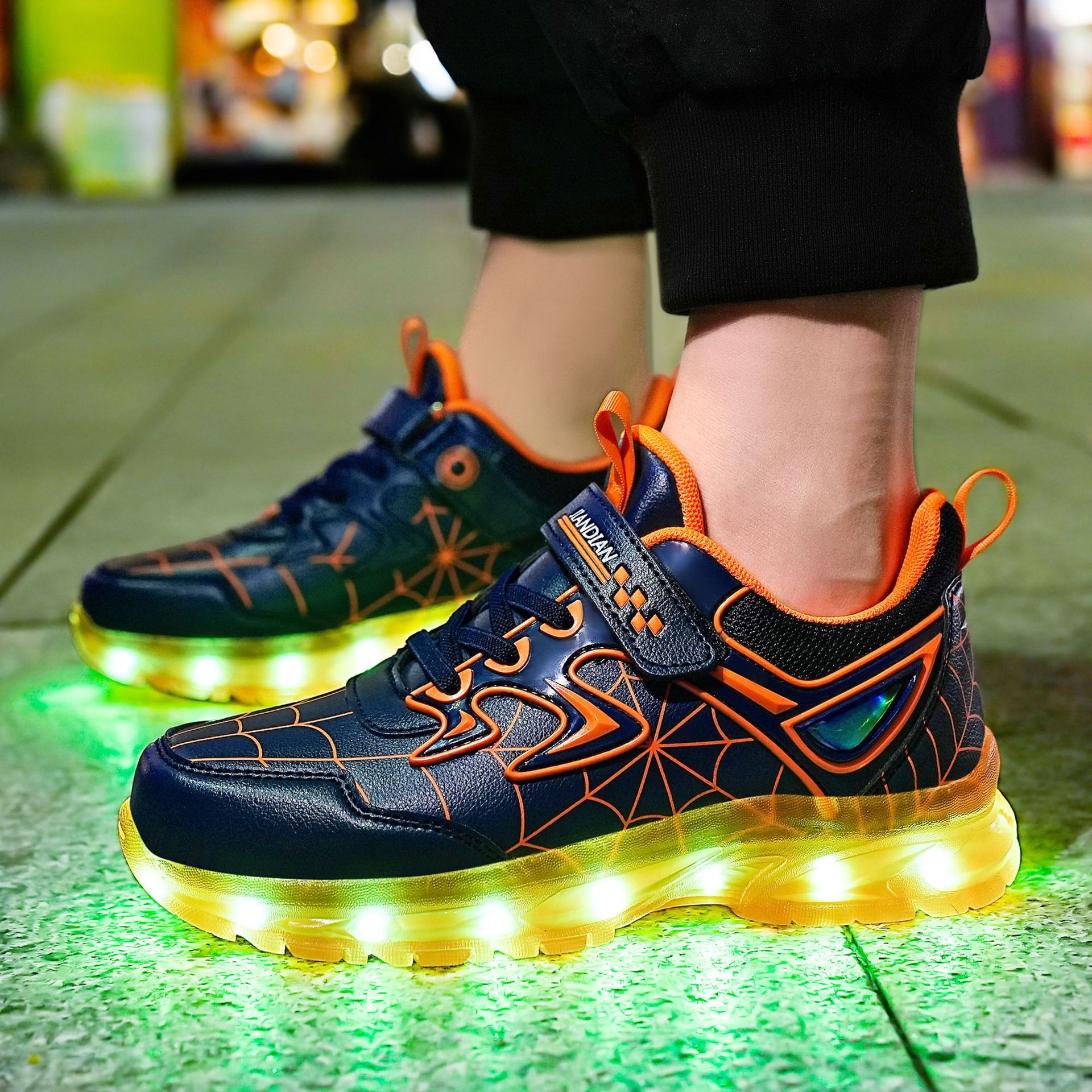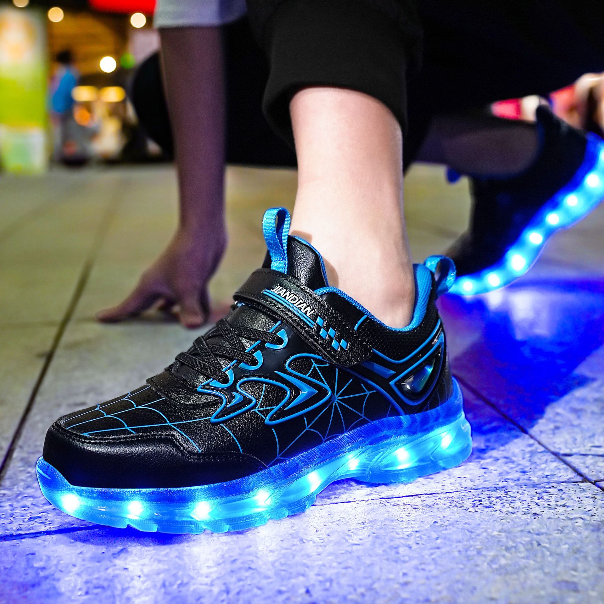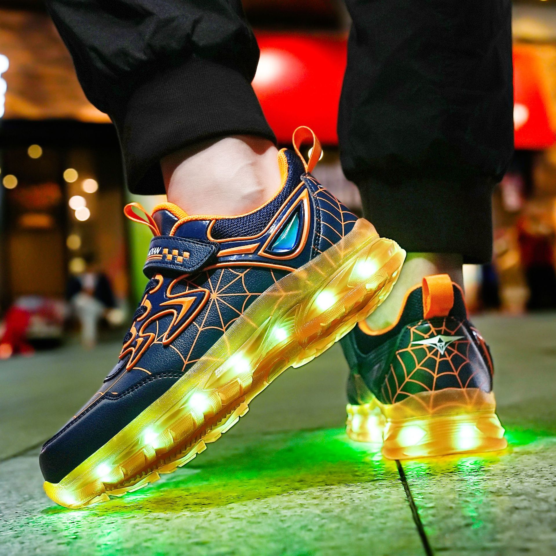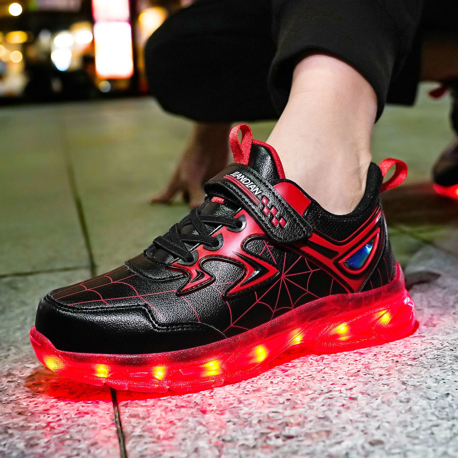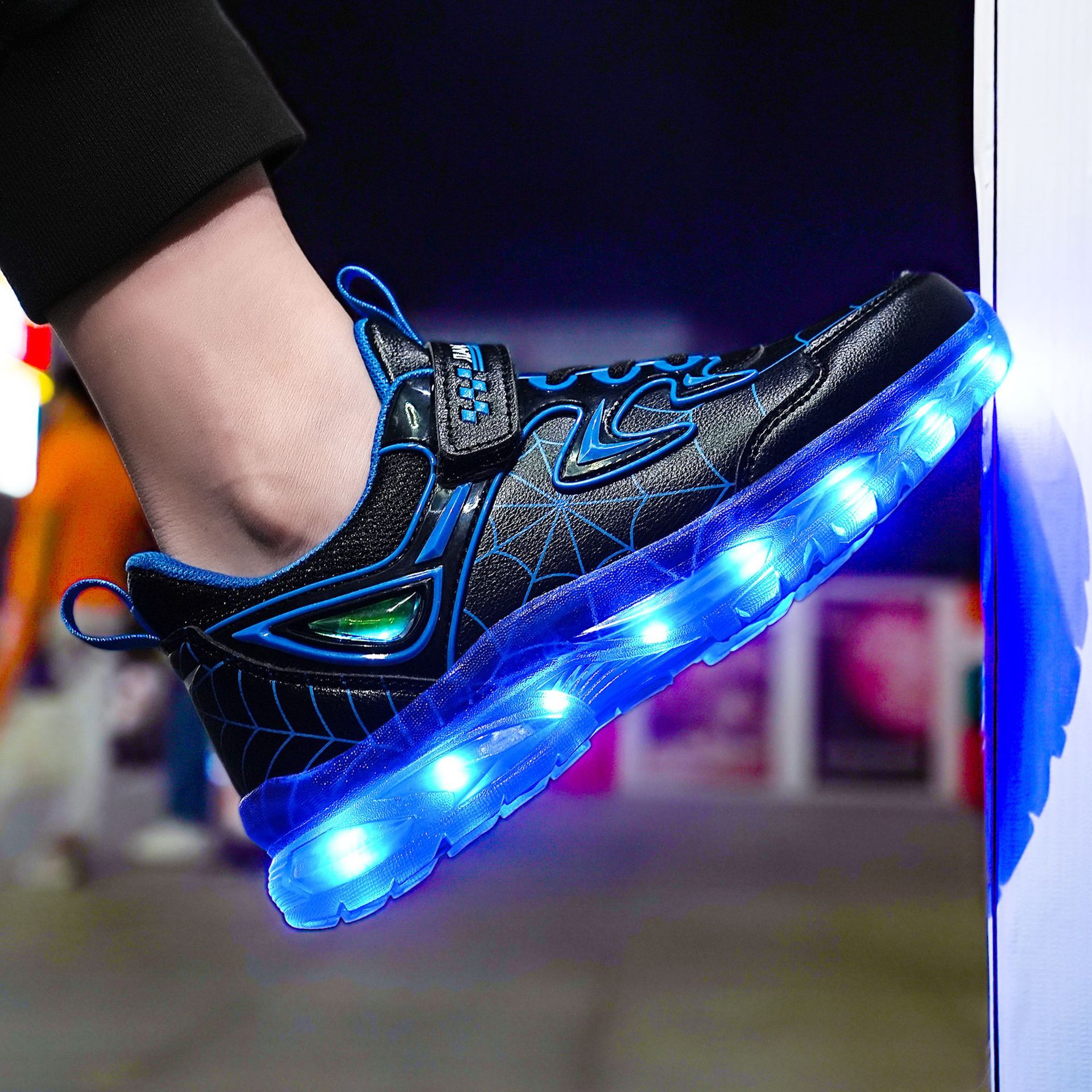 도매 국경 핫 세일 어린이 운동화 LED 충전 화려한 조명 신발 빛나는 신발 소년 신발 거미 신발 7스토어 가기