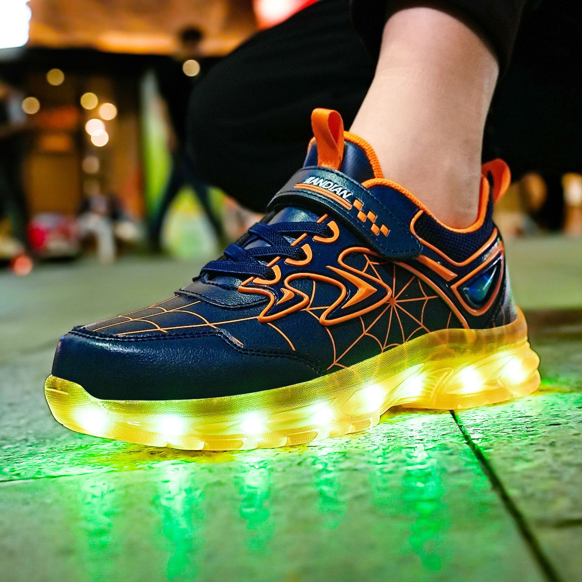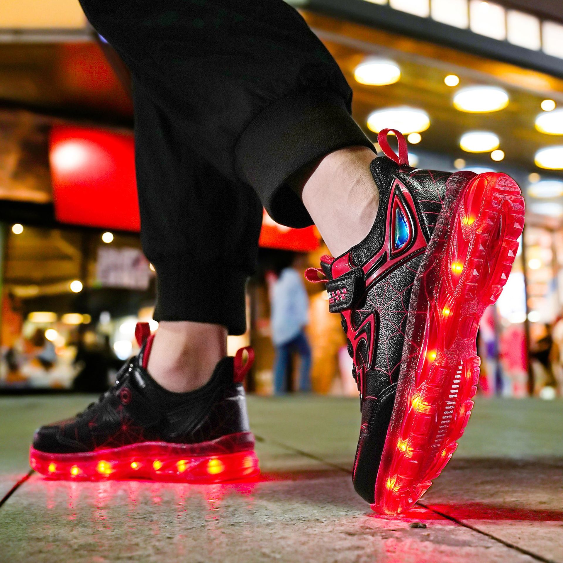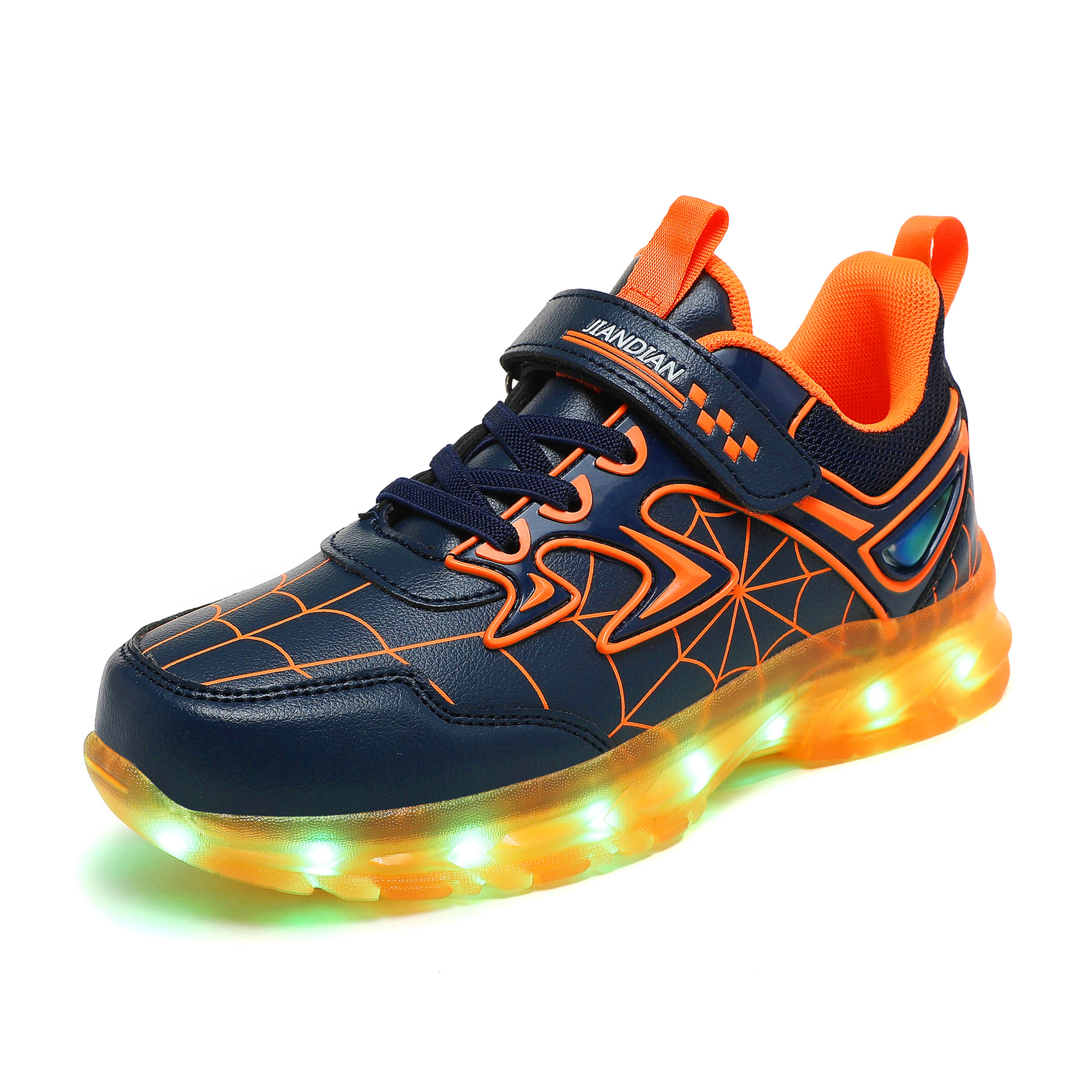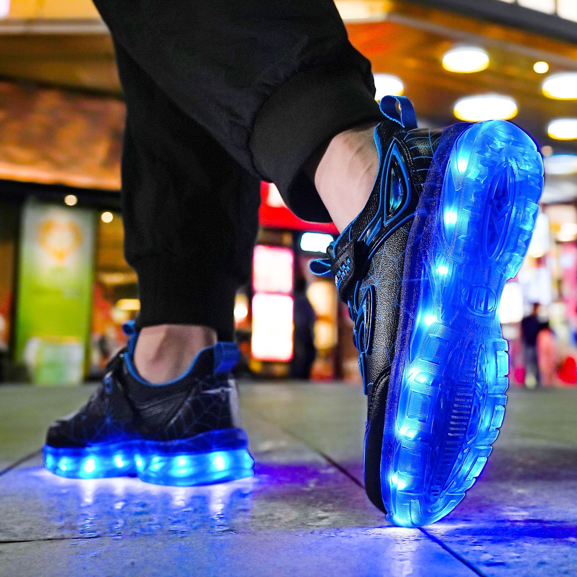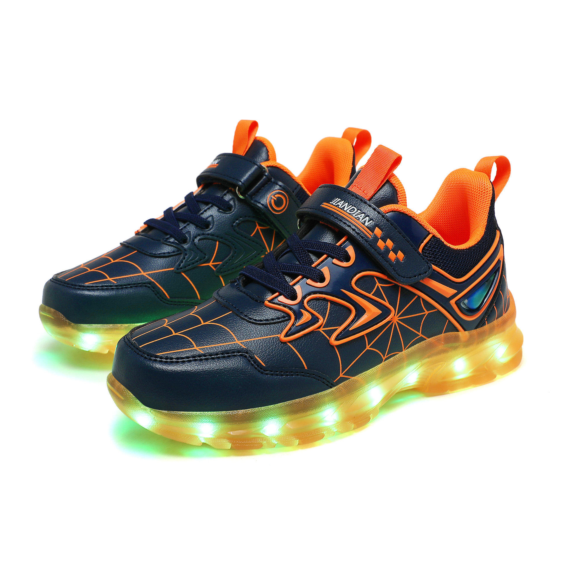 도매 국경 핫 세일 어린이 운동화 LED 충전 화려한 조명 신발 빛나는 신발 소년 신발 거미 신발 7스토어 가기
