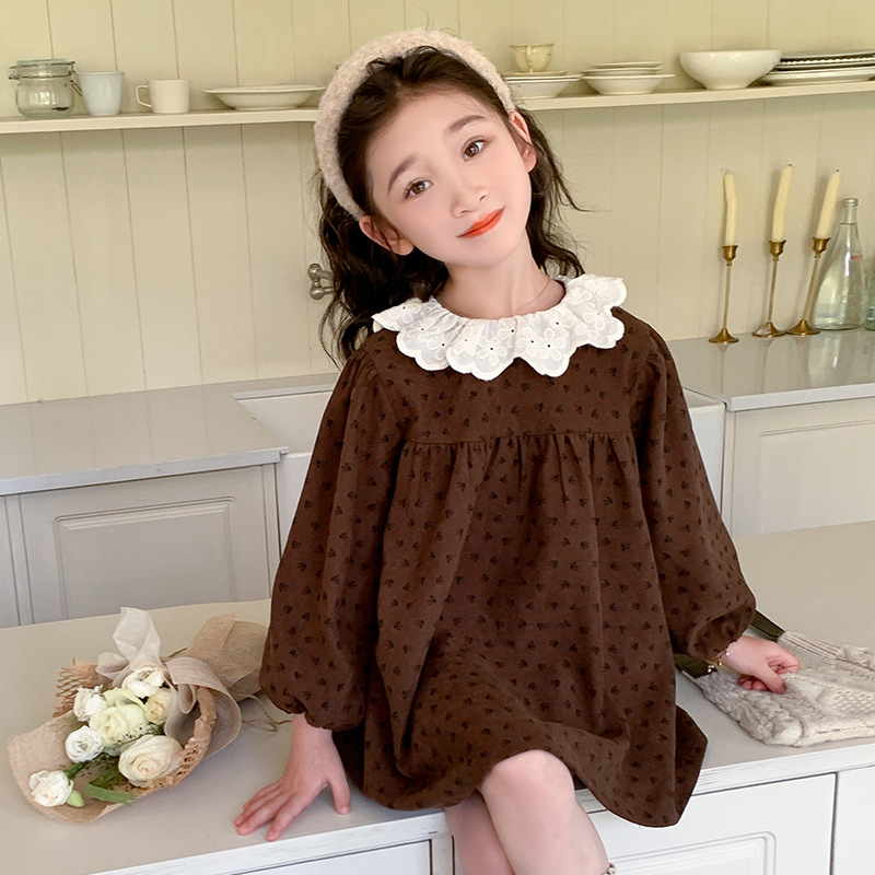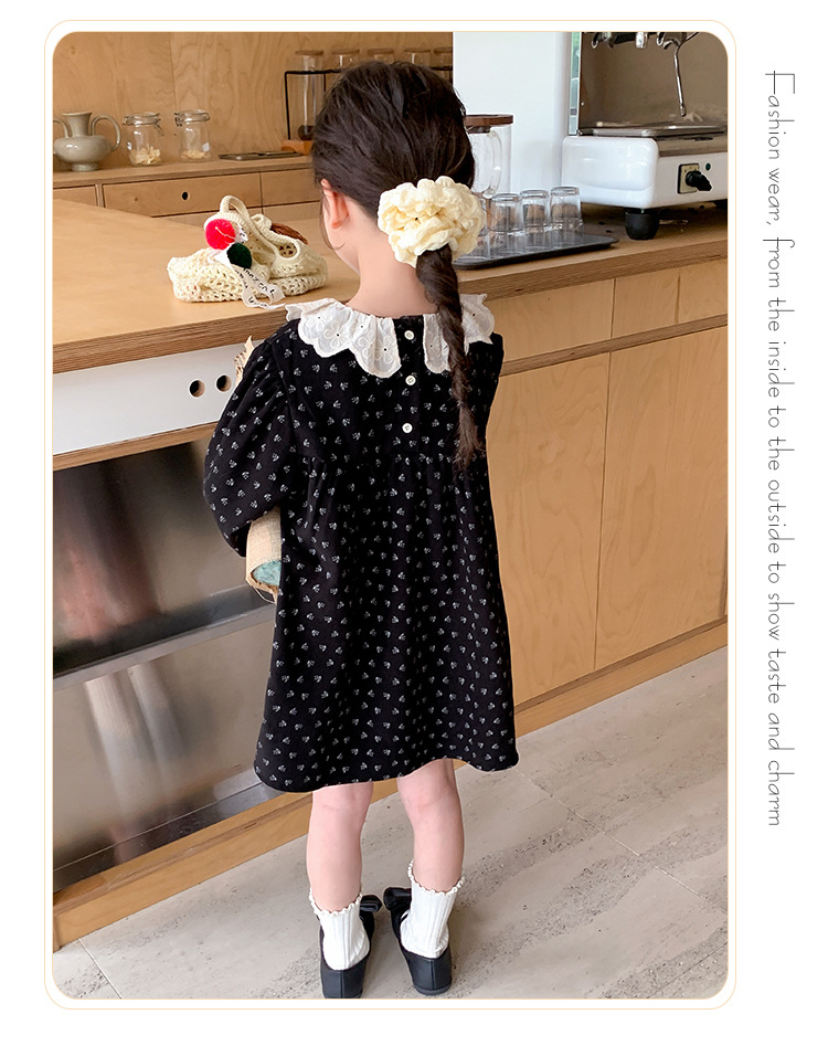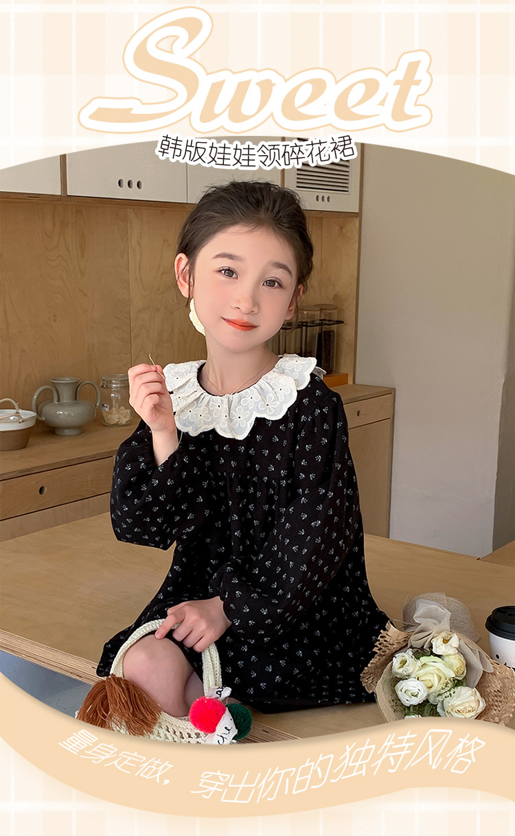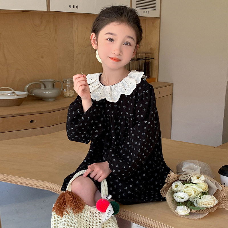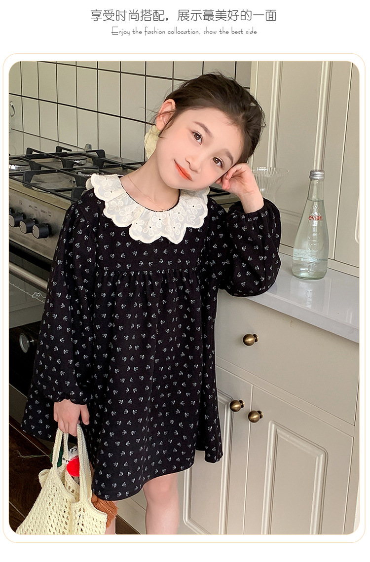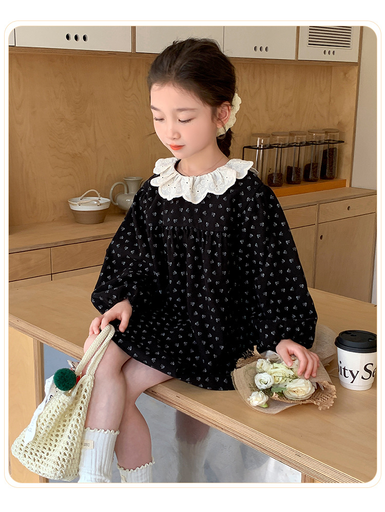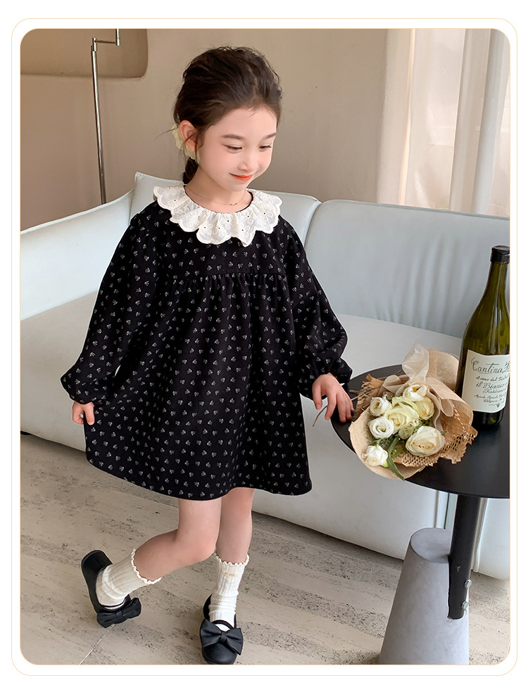 여아 드레스 봄, 가을 2025 새로운 패션 어린 소녀 숲 스타일 레이스 칼라 꽃무늬 스커트 어린이 및 중년 어린이용스토어 가기