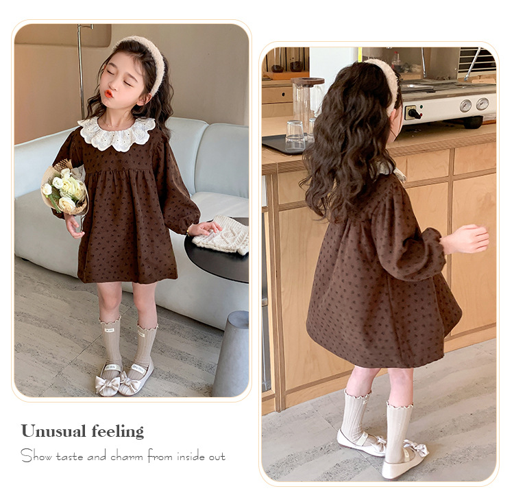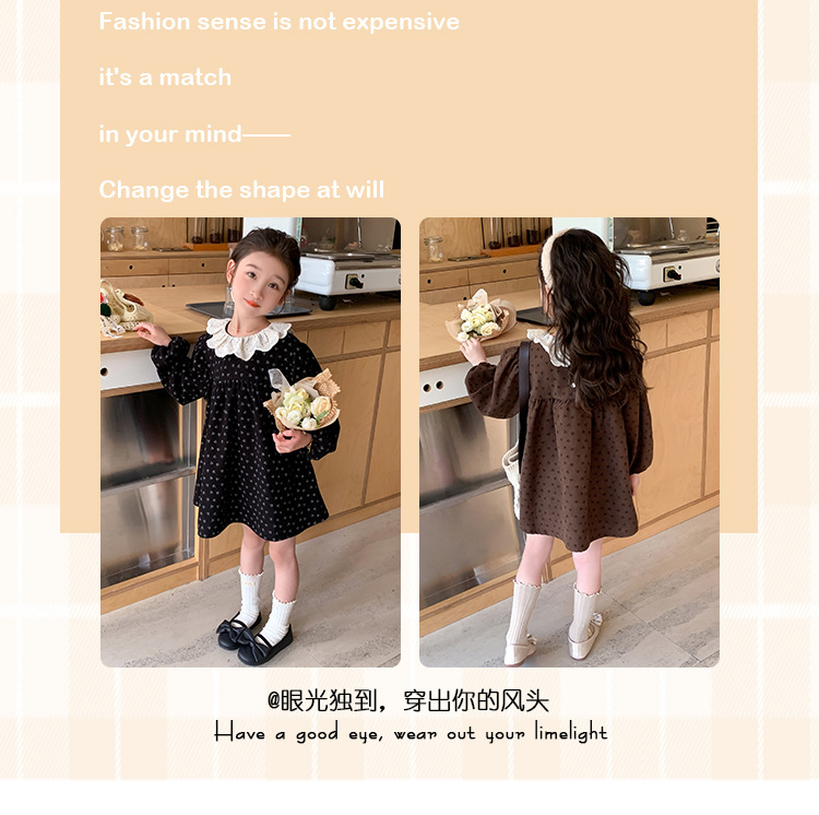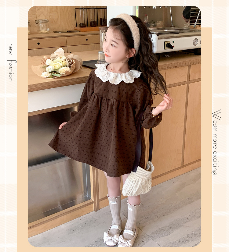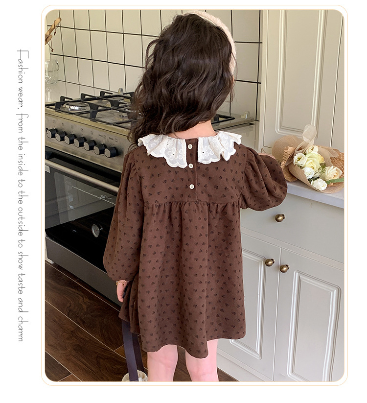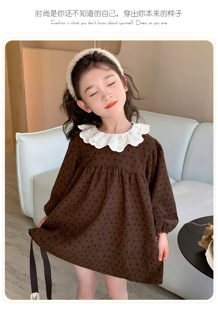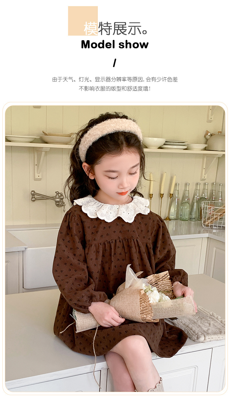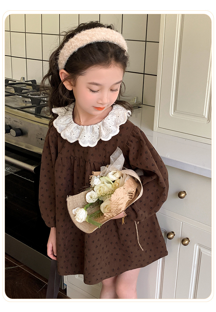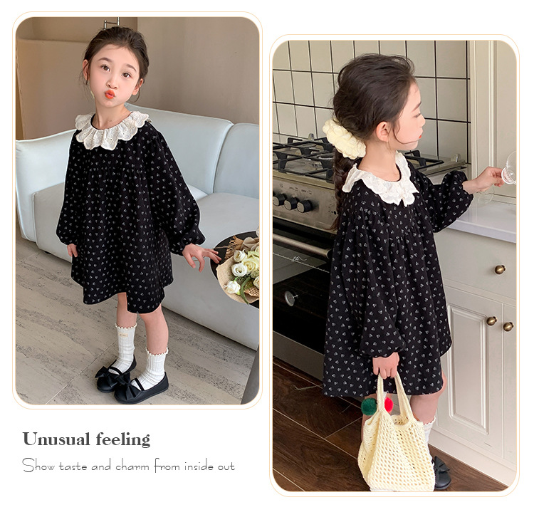 여아 드레스 봄, 가을 2025 새로운 패션 어린 소녀 숲 스타일 레이스 칼라 꽃무늬 스커트 어린이 및 중년 어린이용스토어 가기