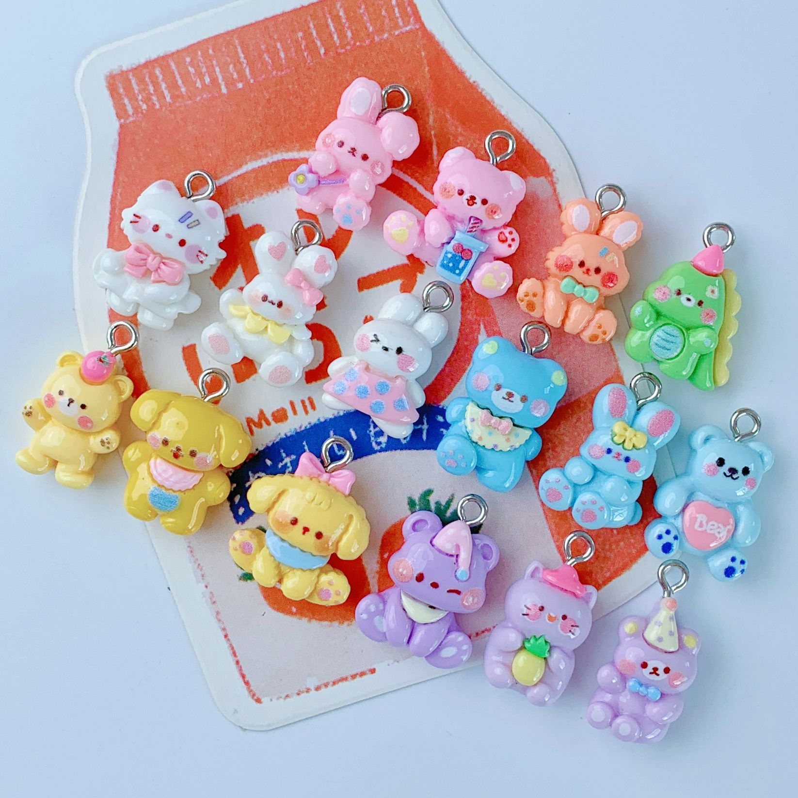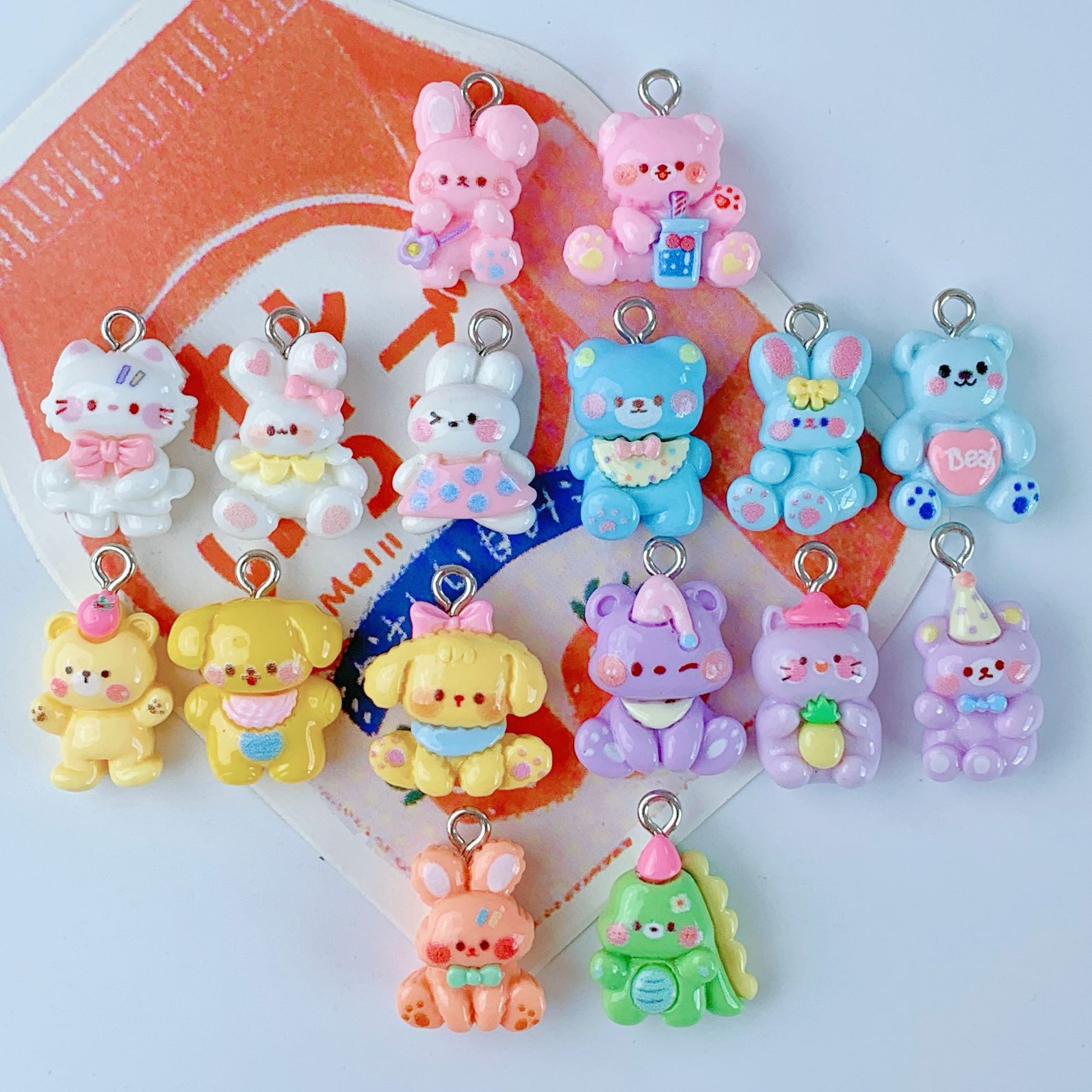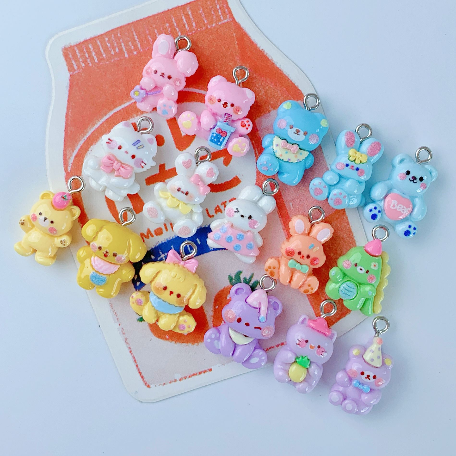 귀여운 재미 작은 동물 만화 펜던트 토끼 팬더 수지 DIY 보석 귀걸이 펜던트 펜던트 키 체인