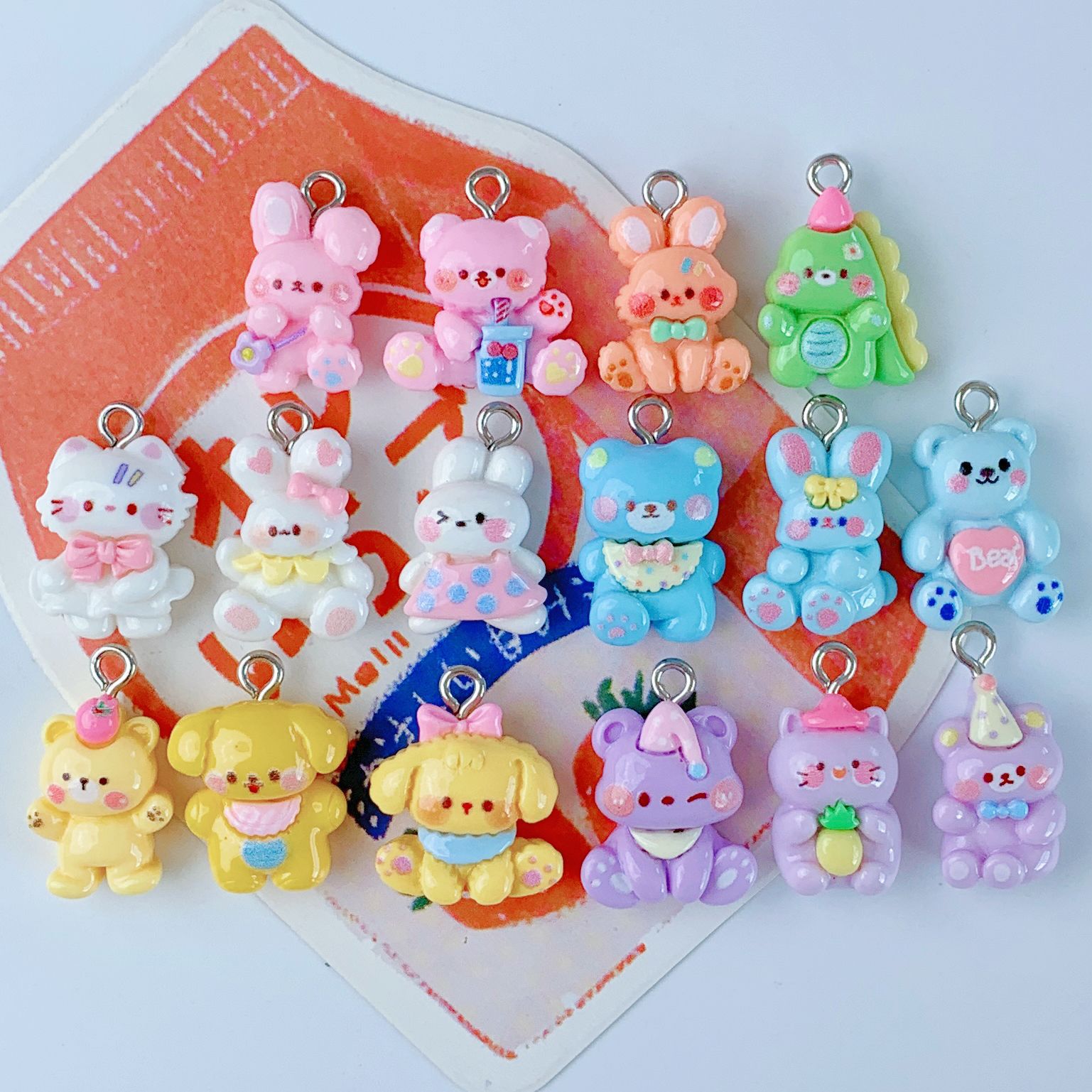 귀여운 재미 작은 동물 만화 펜던트 토끼 팬더 수지 DIY 보석 귀걸이 펜던트 펜던트 키 체인스토어 가기