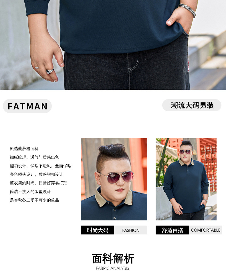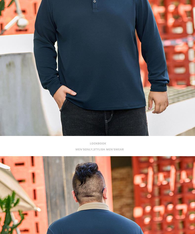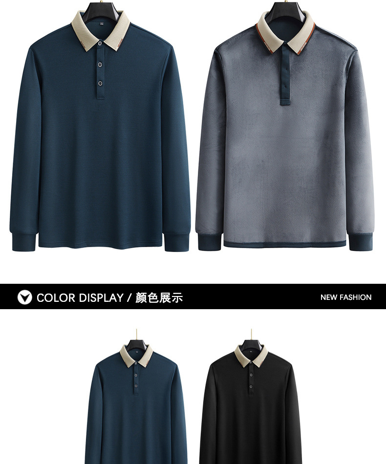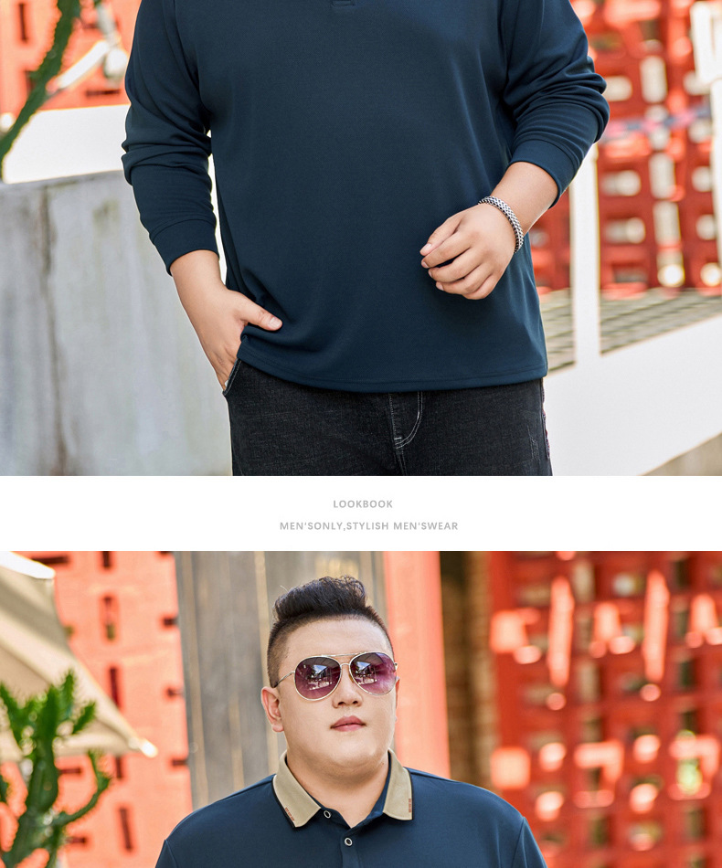 [M-9XL] 중년 남성 긴팔 POLO 셔츠 뚱뚱한 남자 느슨한 티셔츠 가을과 겨울 플러스 사이즈 레저 기지 기모