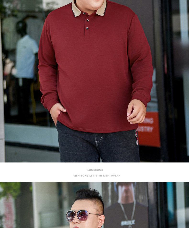 [M-9XL] 중년 남성 긴팔 POLO 셔츠 뚱뚱한 남자 느슨한 티셔츠 가을과 겨울 플러스 사이즈 레저 기지 기모스토어 가기