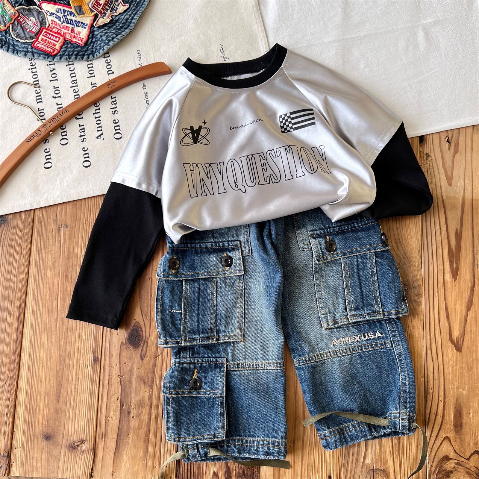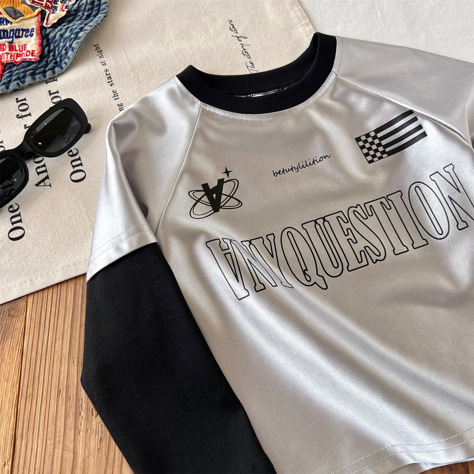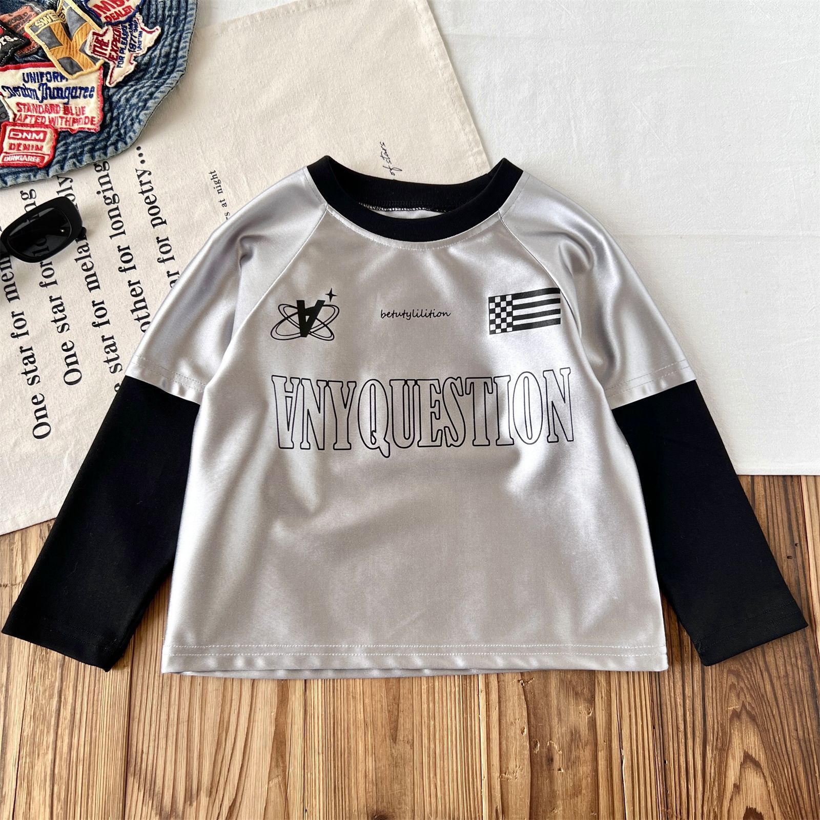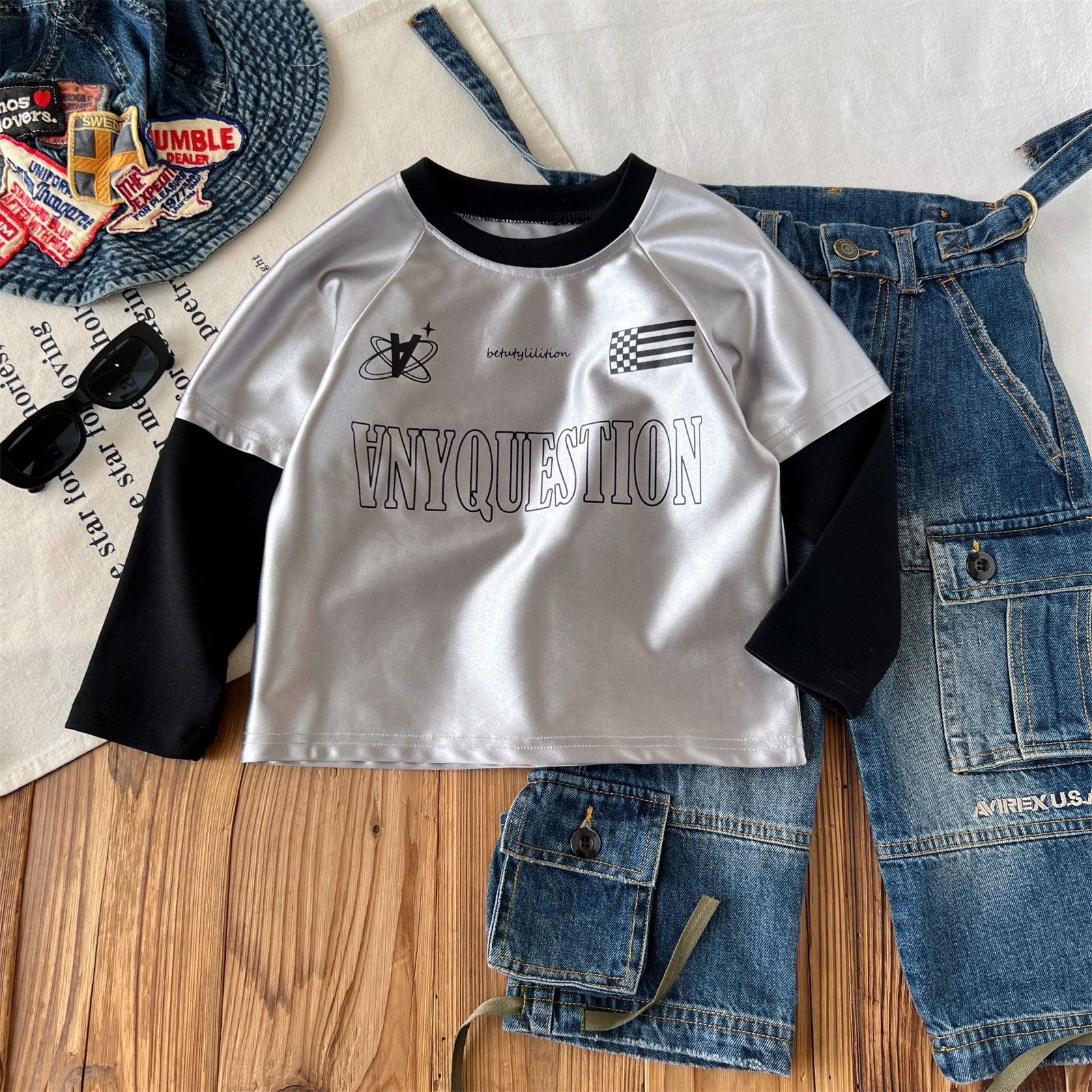 [재고] 일본과 한국식 봄 · 가을 어린이 편지 복고풍 가짜 투피스 긴팔 티셔츠 재킷스토어 가기