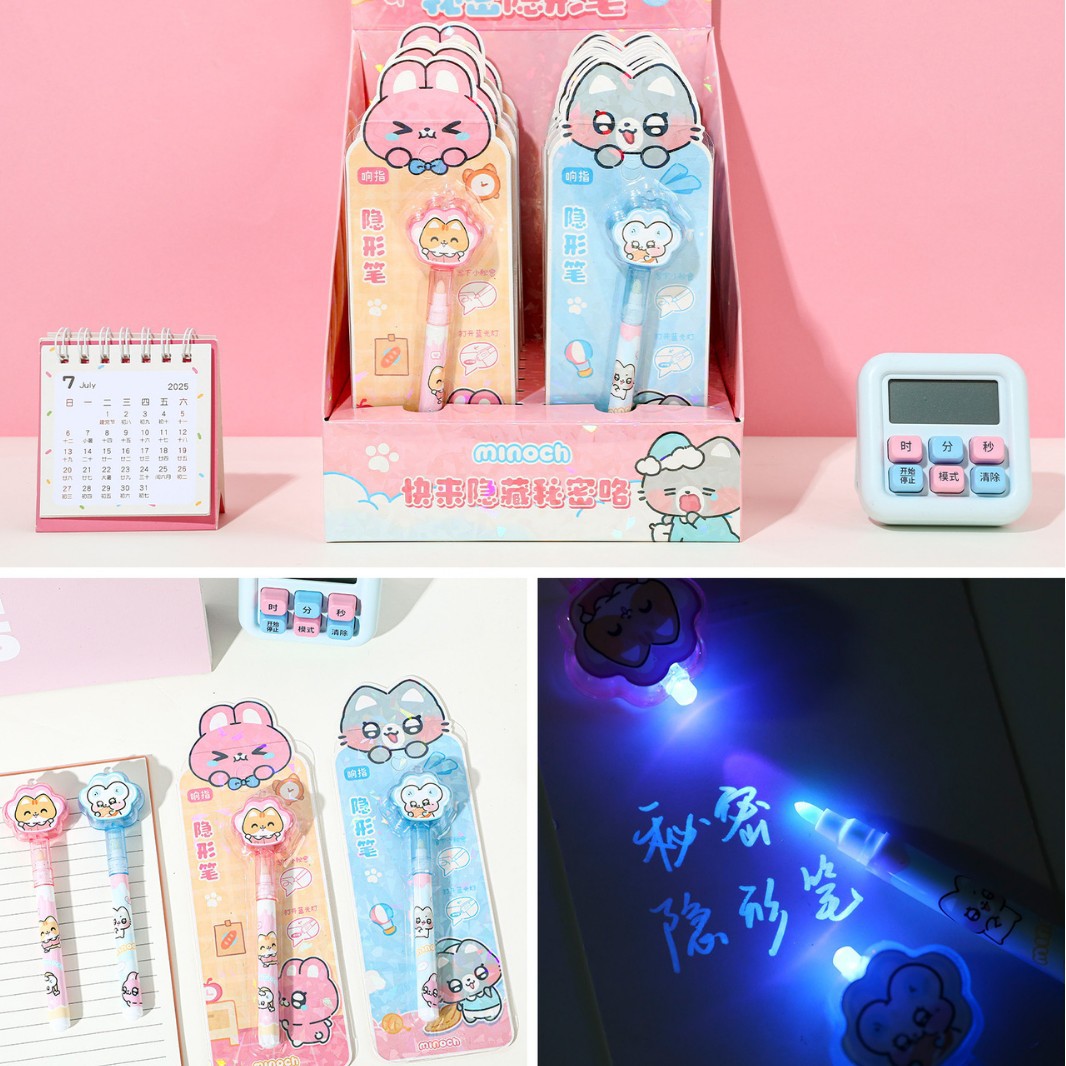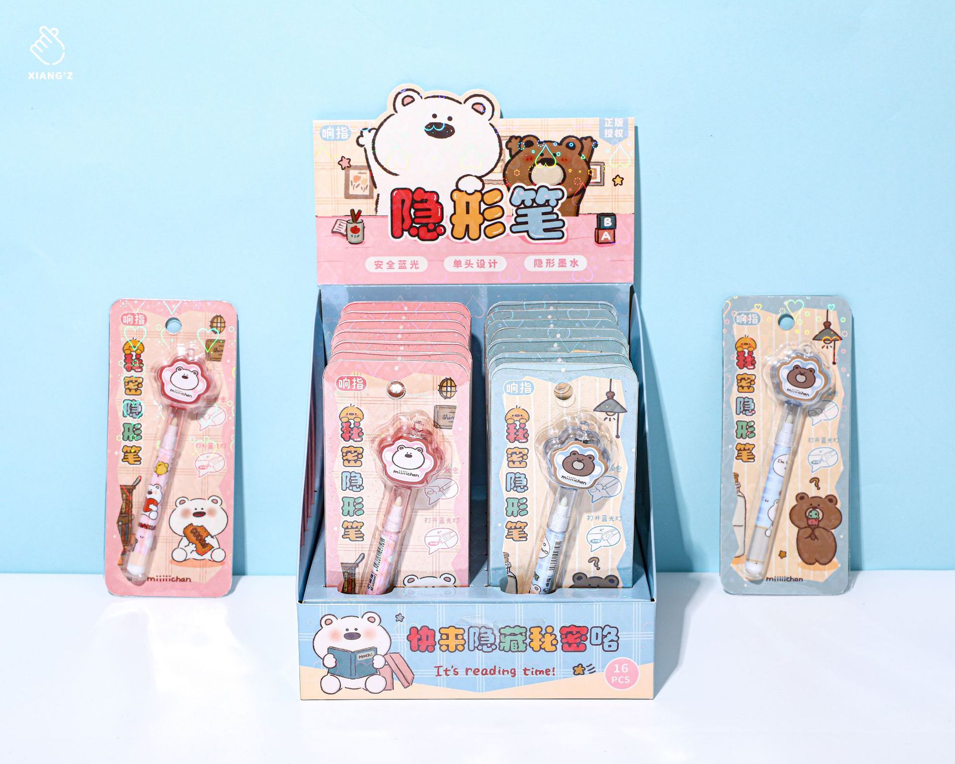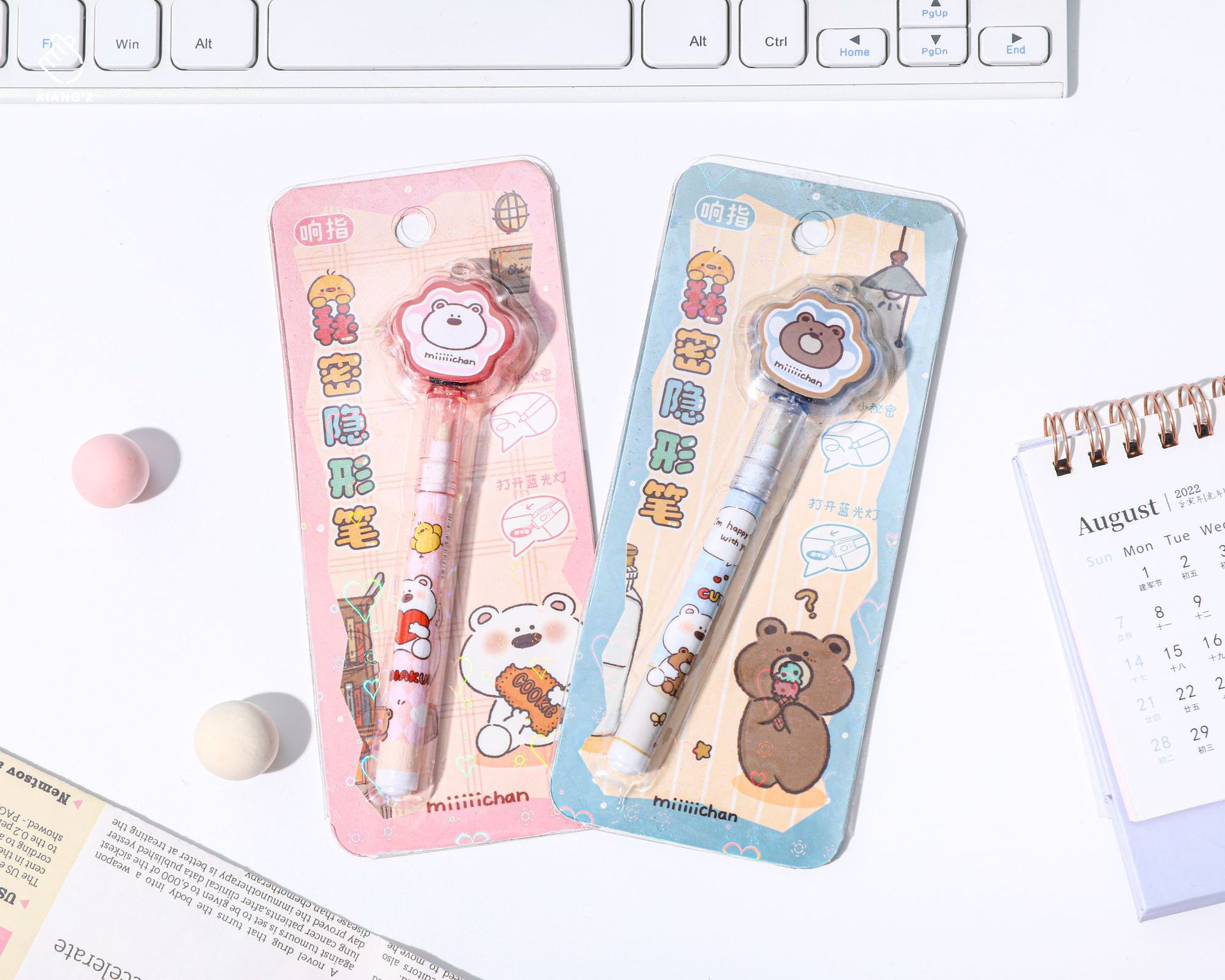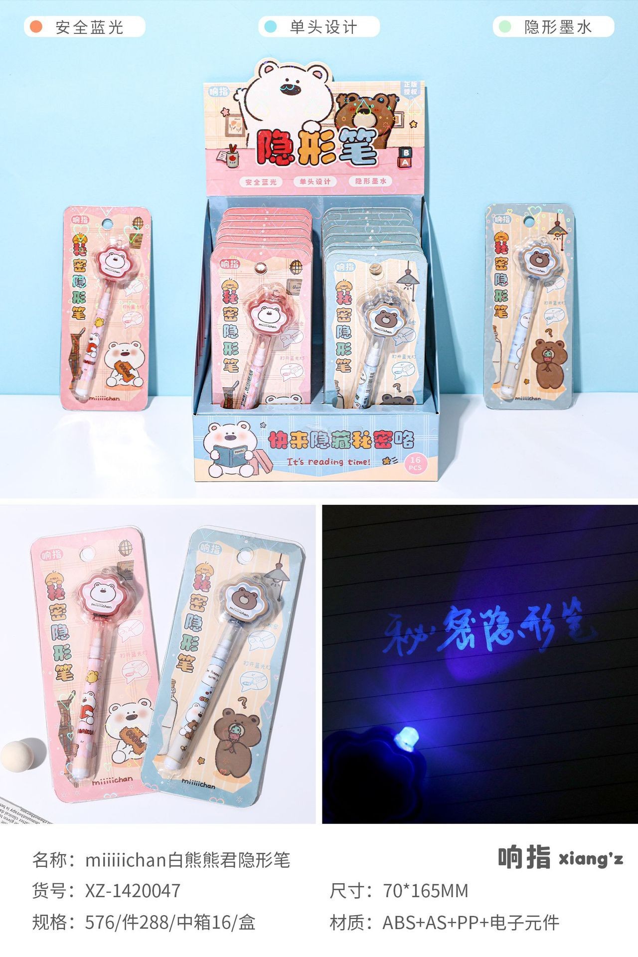 반지 손가락 창조적 인 miiiichan 흰 곰 곰 왕 보이지 않는 펜 만화 어린이 재미 표시 펜 빛 형광 펜스토어 가기