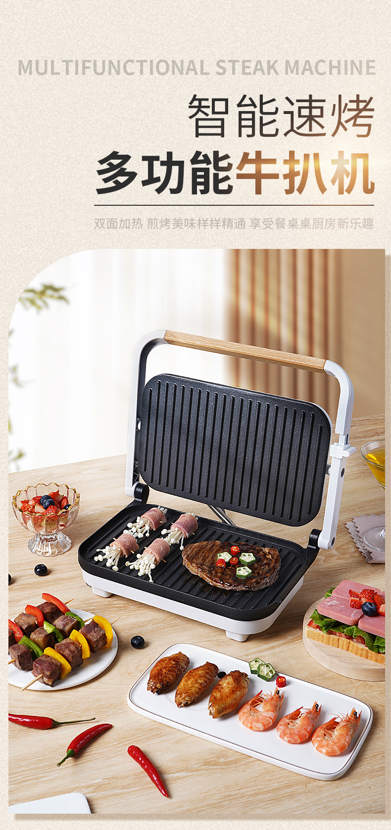 双面牛排机煎烤机欧规国标220v牛排机煎烤机全自动电煎锅烤肉机三明治电饼档早餐机
