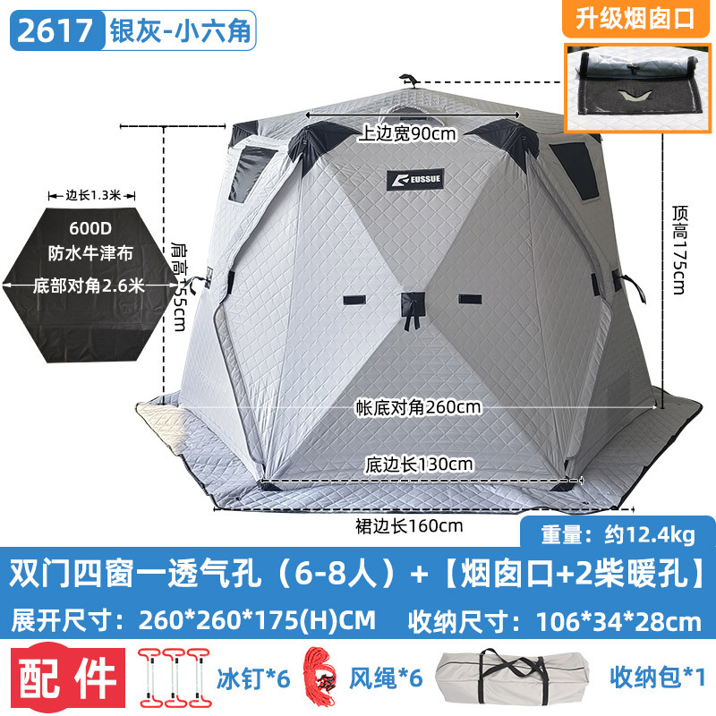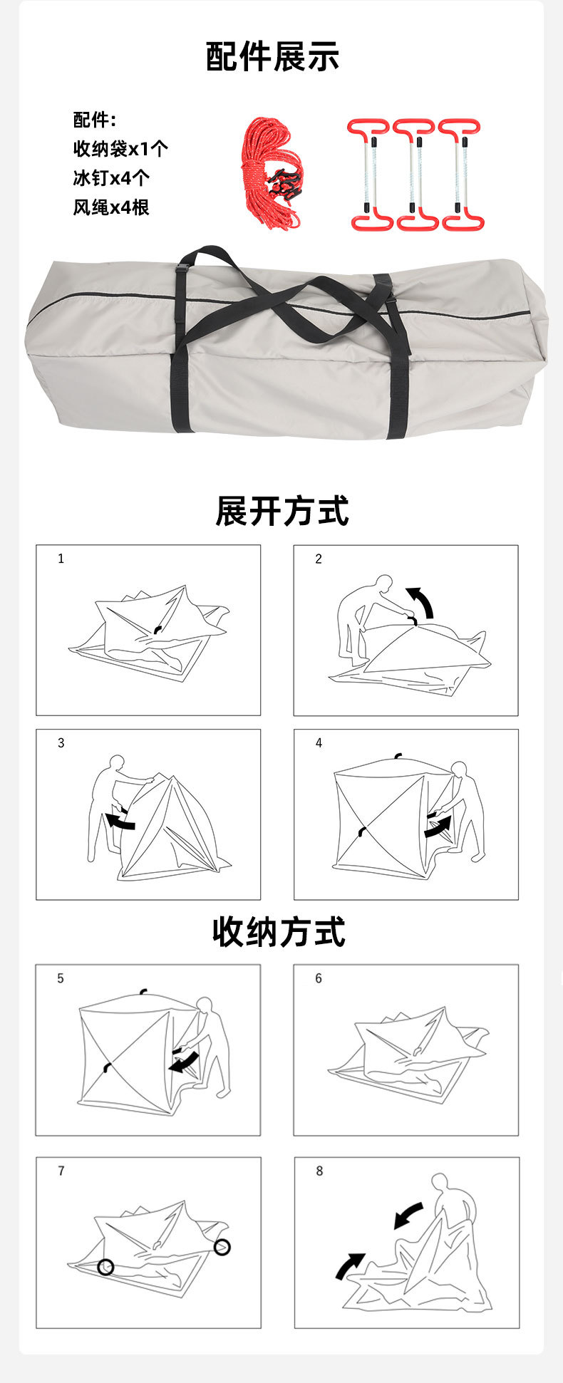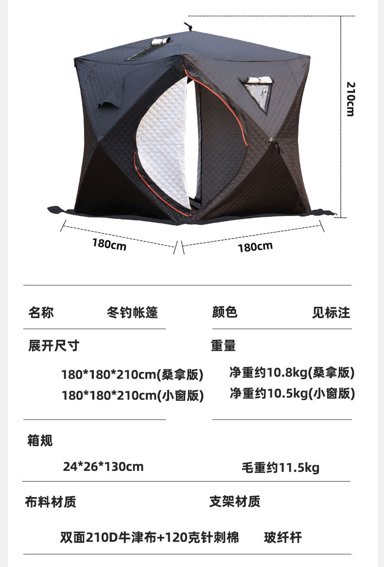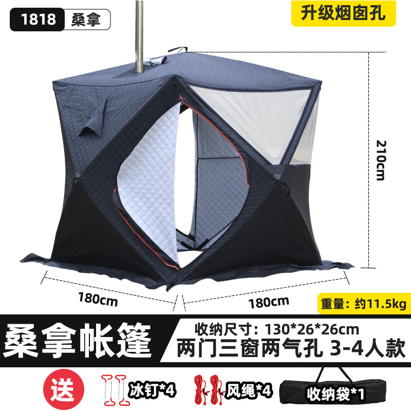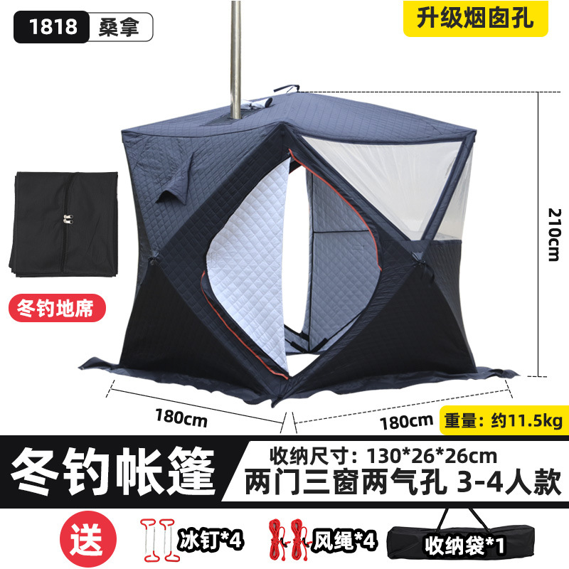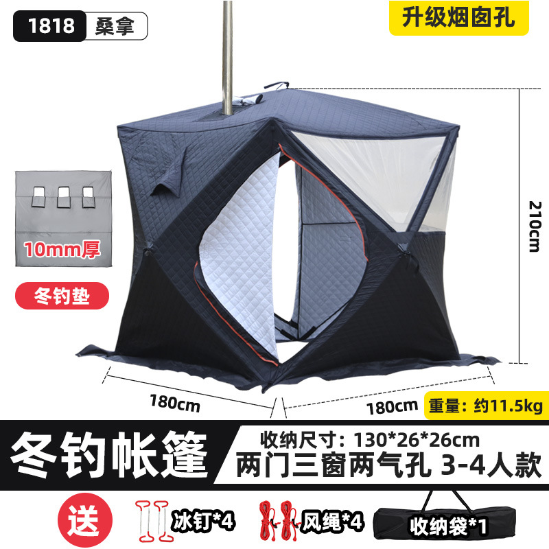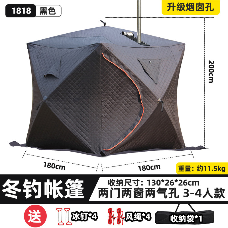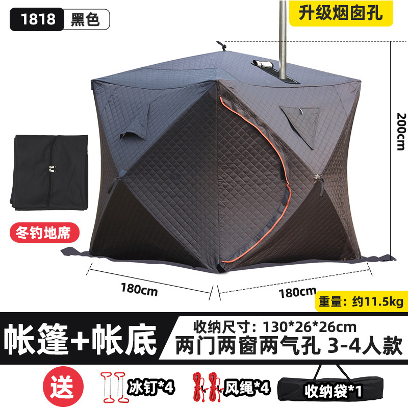 • 【3-4인용】 1.8m 블랙 + 얼음 낚시 매트 [굴뚝 구멍 포함]