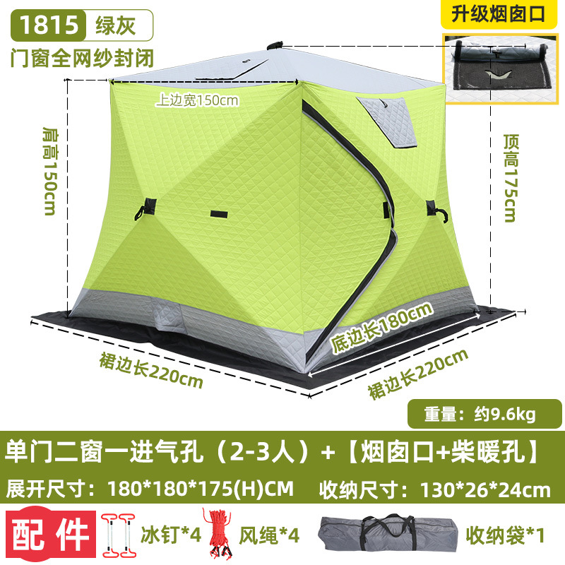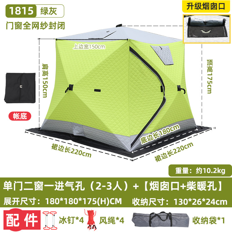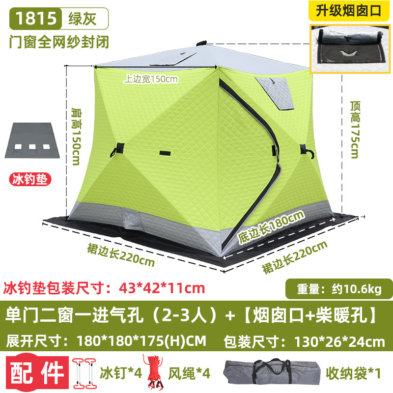 • [2~3인] 1.8m 그린 그레이 싱글도어 + 얼음낚시매트 [굴뚝구멍 있음]