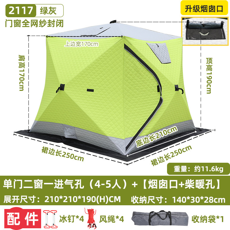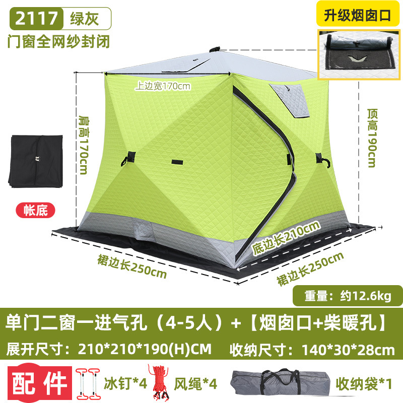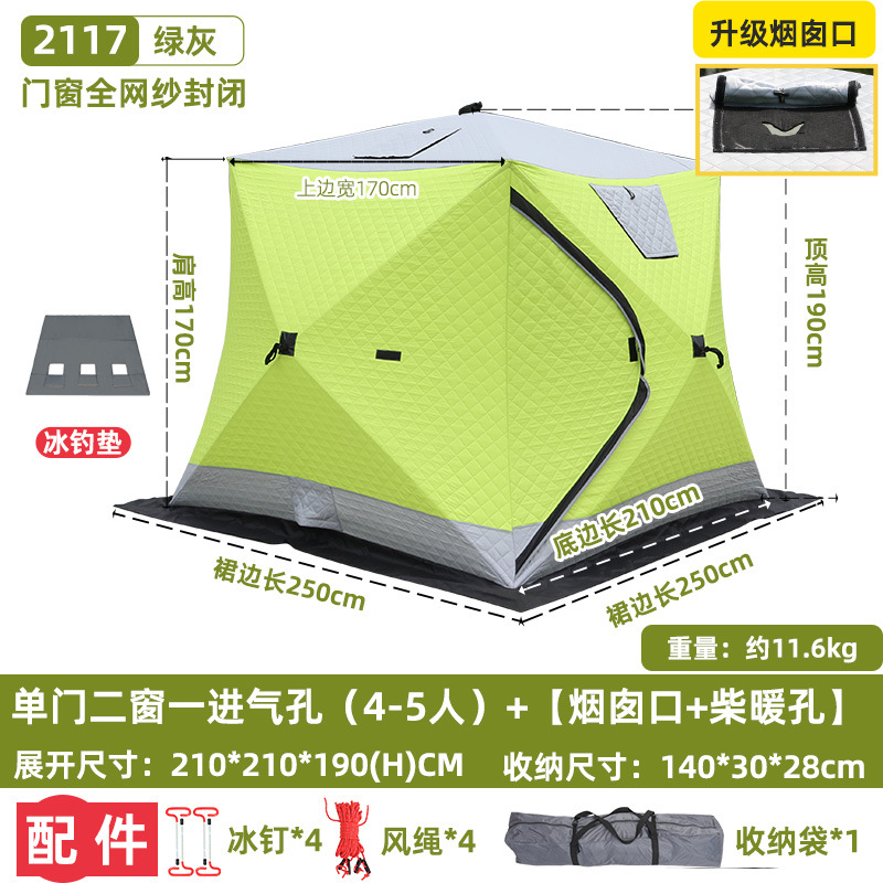 • [3~4인] 2.1m 그린 그레이 싱글도어 + 얼음낚시매트 [굴뚝구멍 있음]
