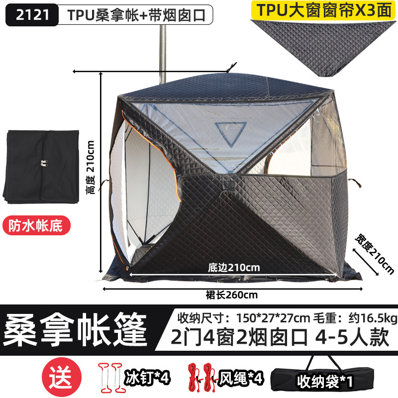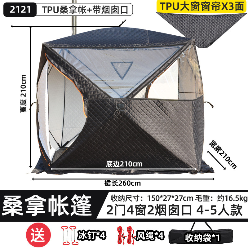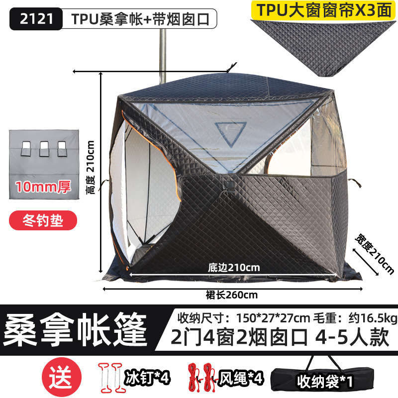 • 【4-5인용】 2.1m 블랙 【굴뚝형】 + 얼음 낚시 매트