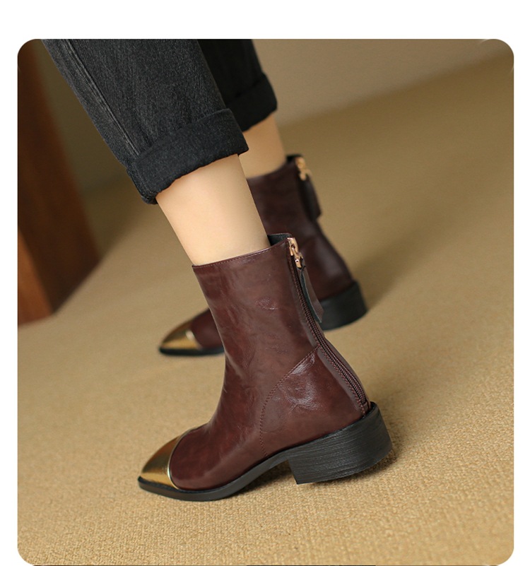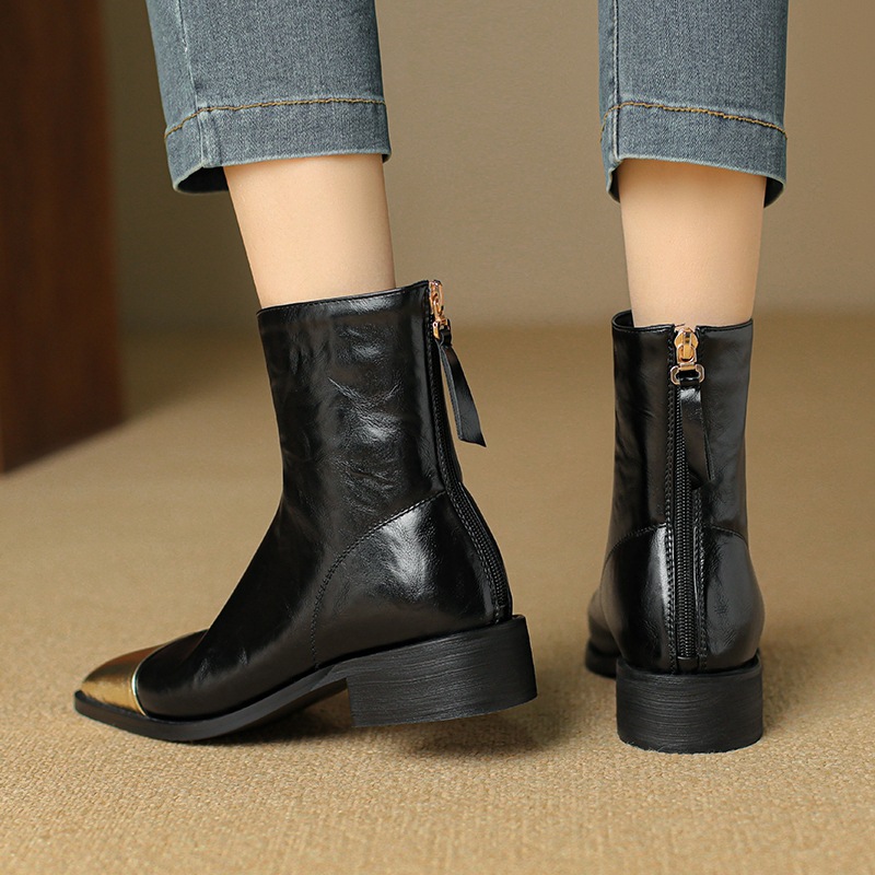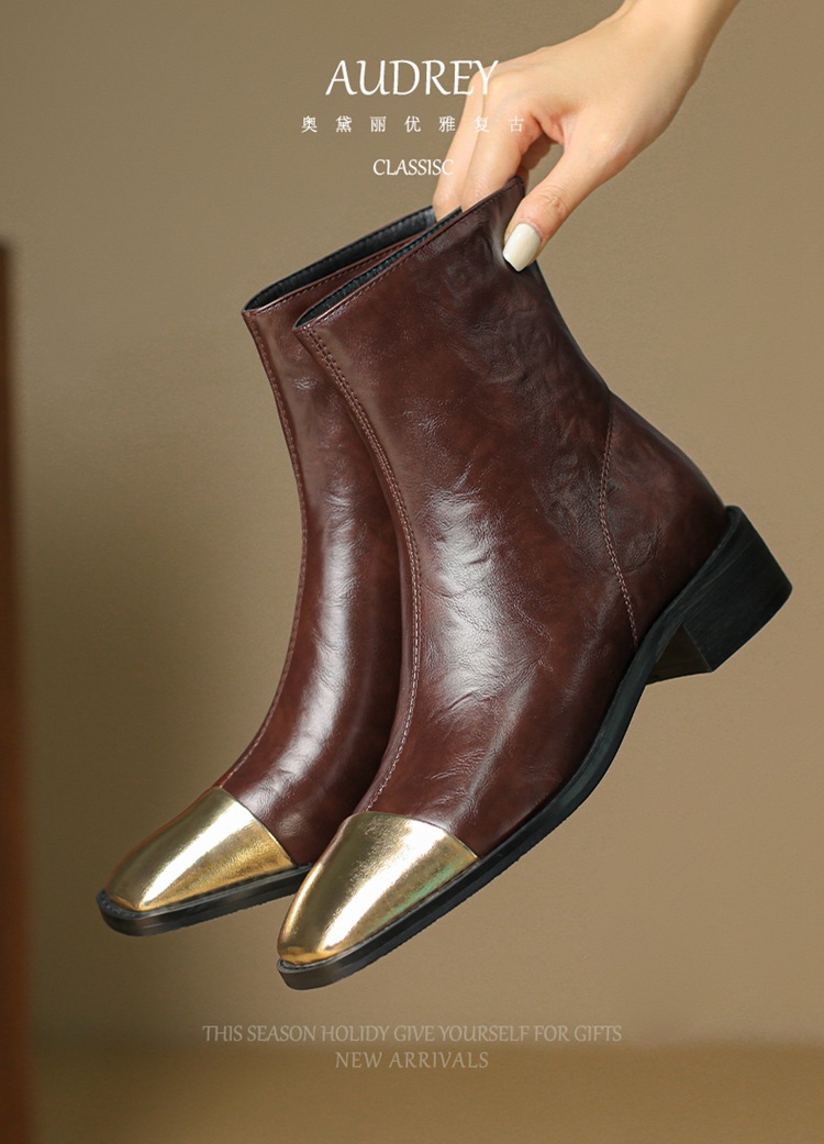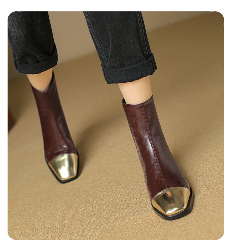 32-43 빈티지 컬러 블록 코어스 힐 발목 부츠 여성 가을 새 스퀘어 발가락 기사 부츠 미드 힐 웨스턴 부츠 플러스 사이즈 여성용 부츠스토어 가기