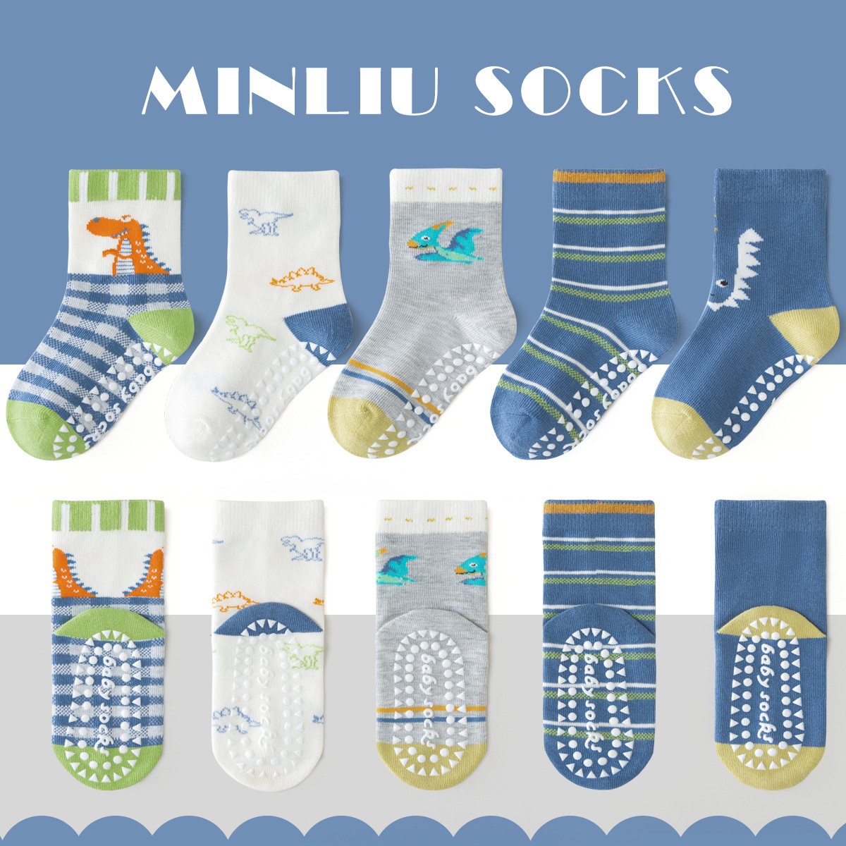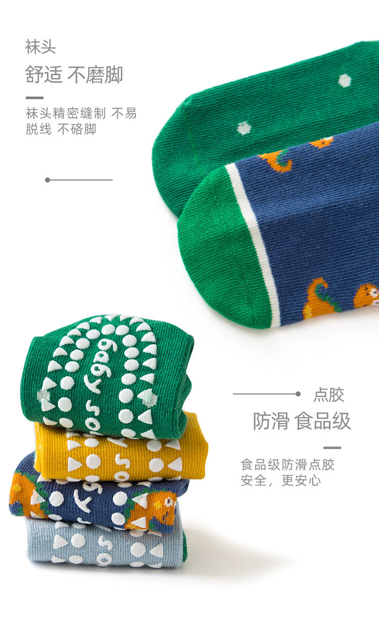 新款防滑地板袜秋冬季男童袜子点胶宝宝棉袜卡通恐龙男女童中筒袜