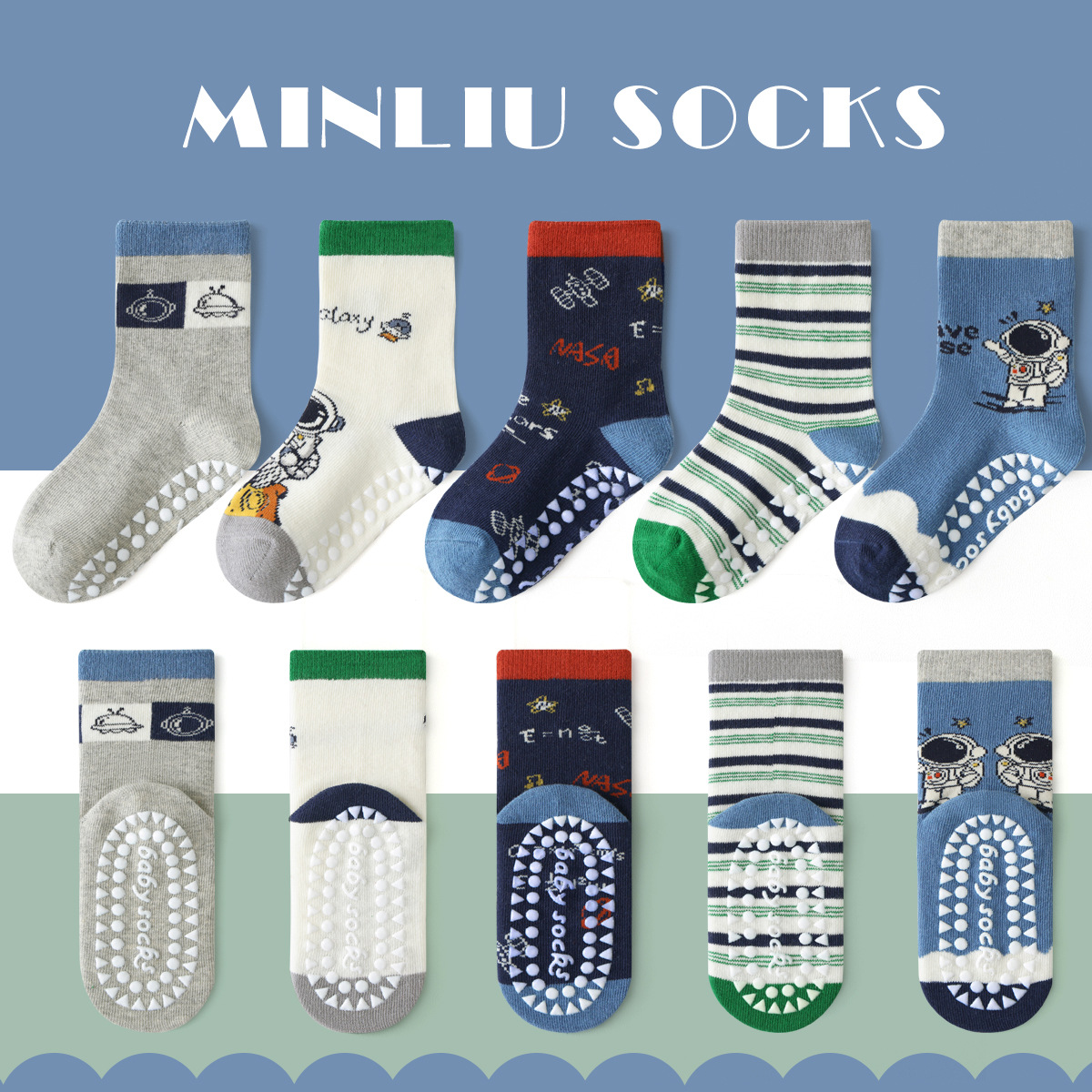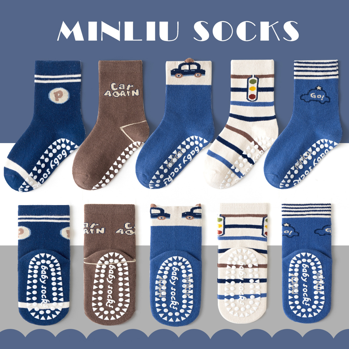 儿童地板袜防滑男童袜子秋季点胶儿童袜子卡通宝宝棉袜秋冬中筒袜