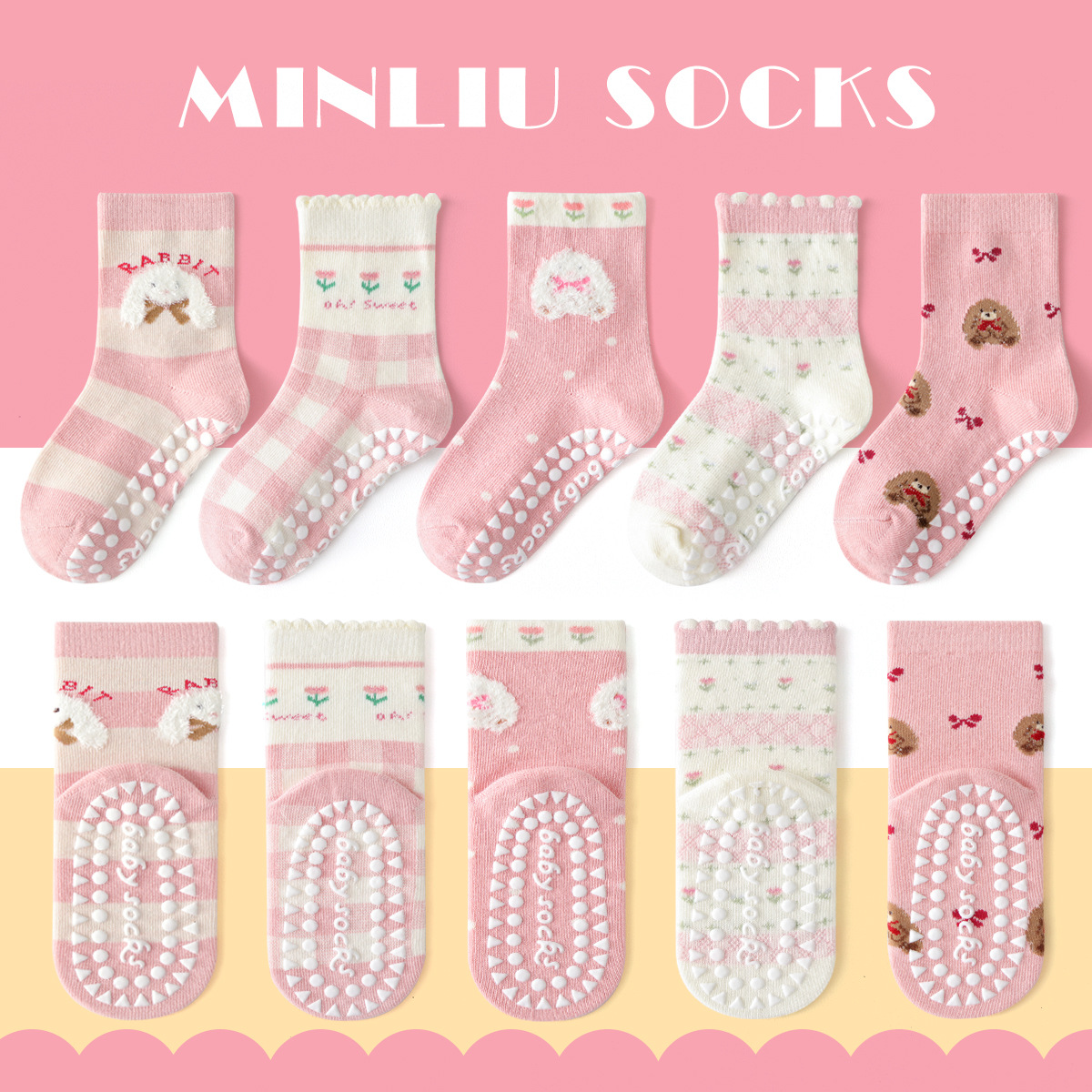 春秋季儿童袜子a类点胶防滑地板袜宝宝棉袜卡通男女童可爱中筒袜