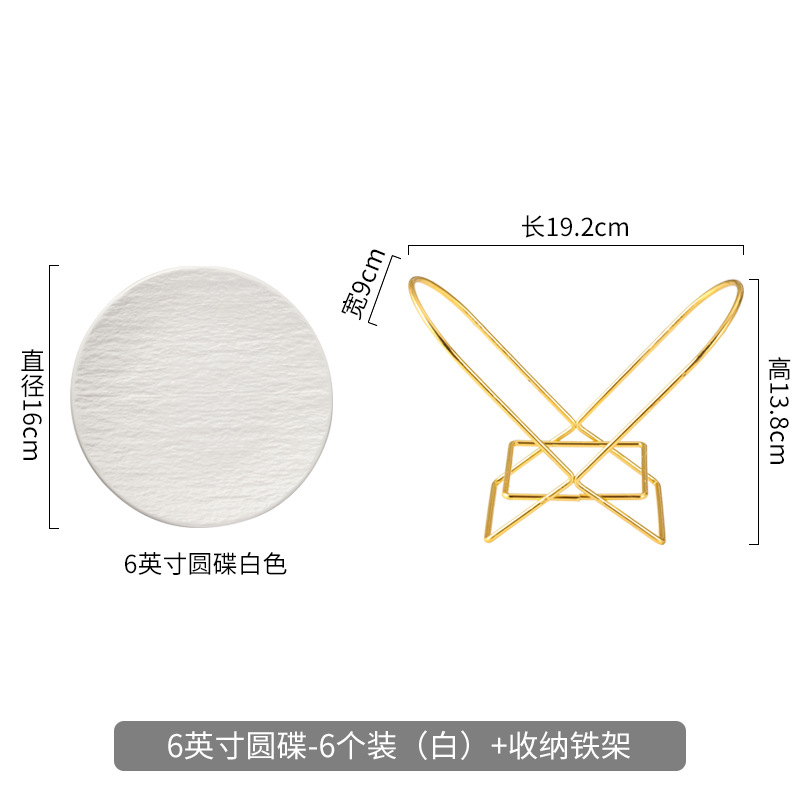 • 6개 + 수납선반 - 스톤그레인 6inch 원형접시 아이보리화이트