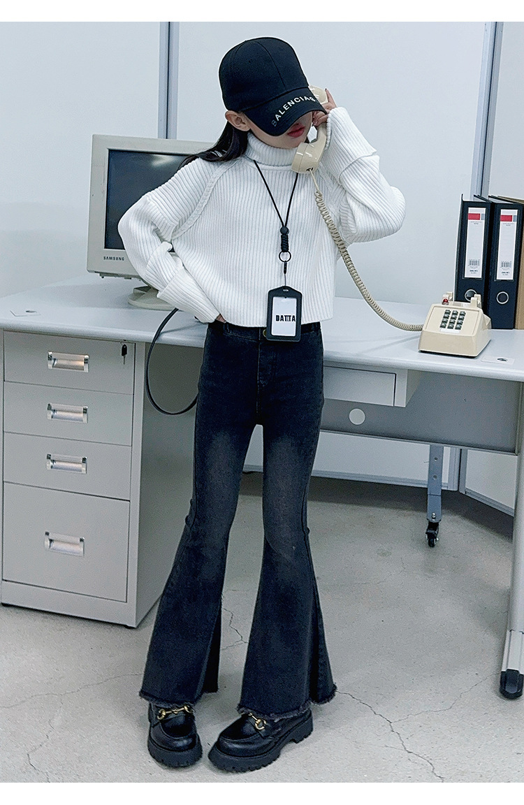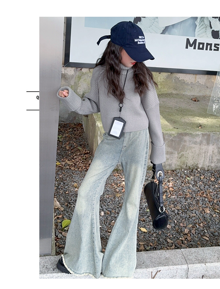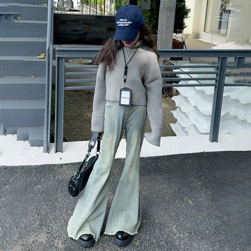 소녀 세트 가을 유행 투피스 세트 2024 새로운 충다 어린이 봄과 가을 캐주얼 한국 스웨터 청바지