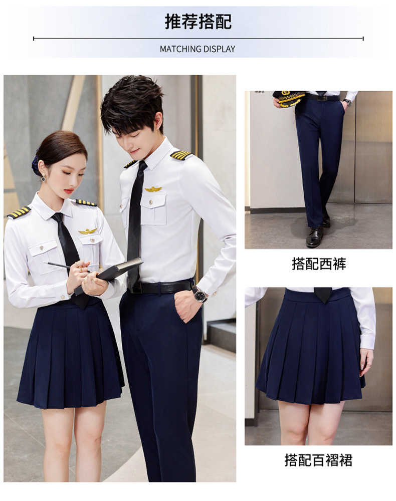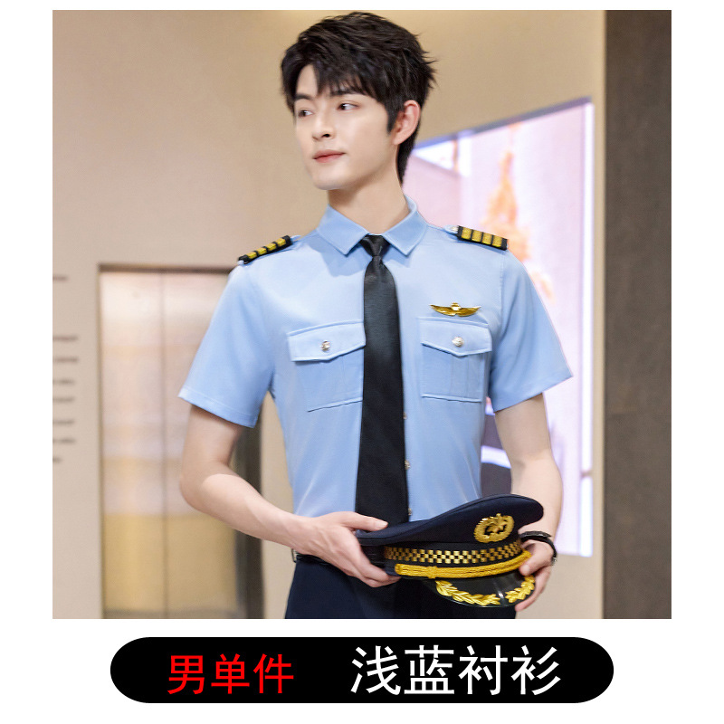 캡틴 유니폼 남자 셔츠 빈 조종사 반팔 셔츠 항공 유니폼 조종사 스튜어디스 승무원 여성 긴팔 셔츠