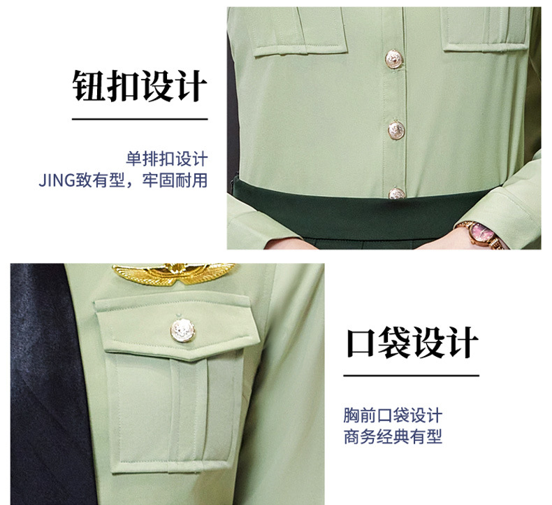• 여성용 녹색 긴팔 셔츠 + 견장
