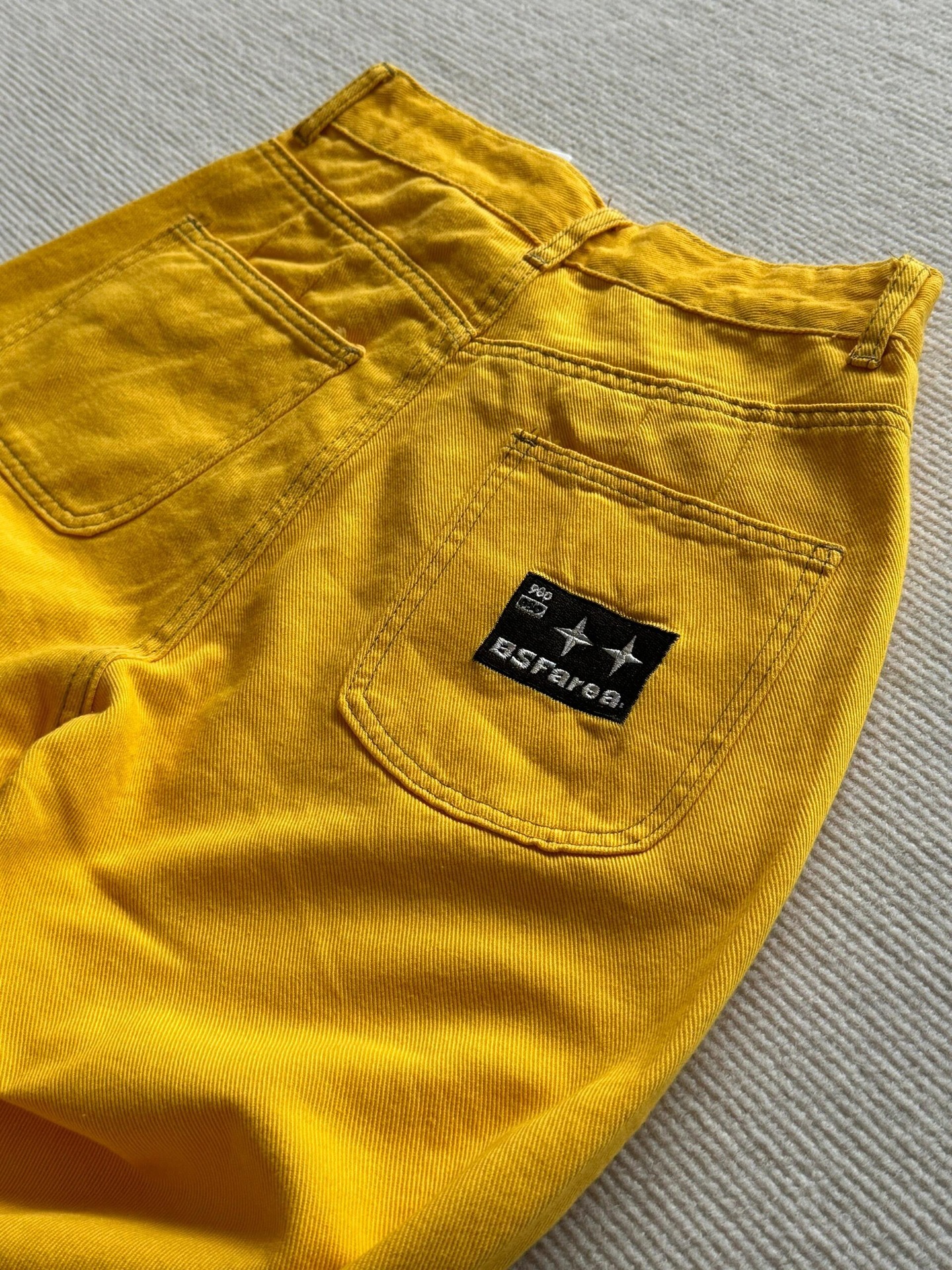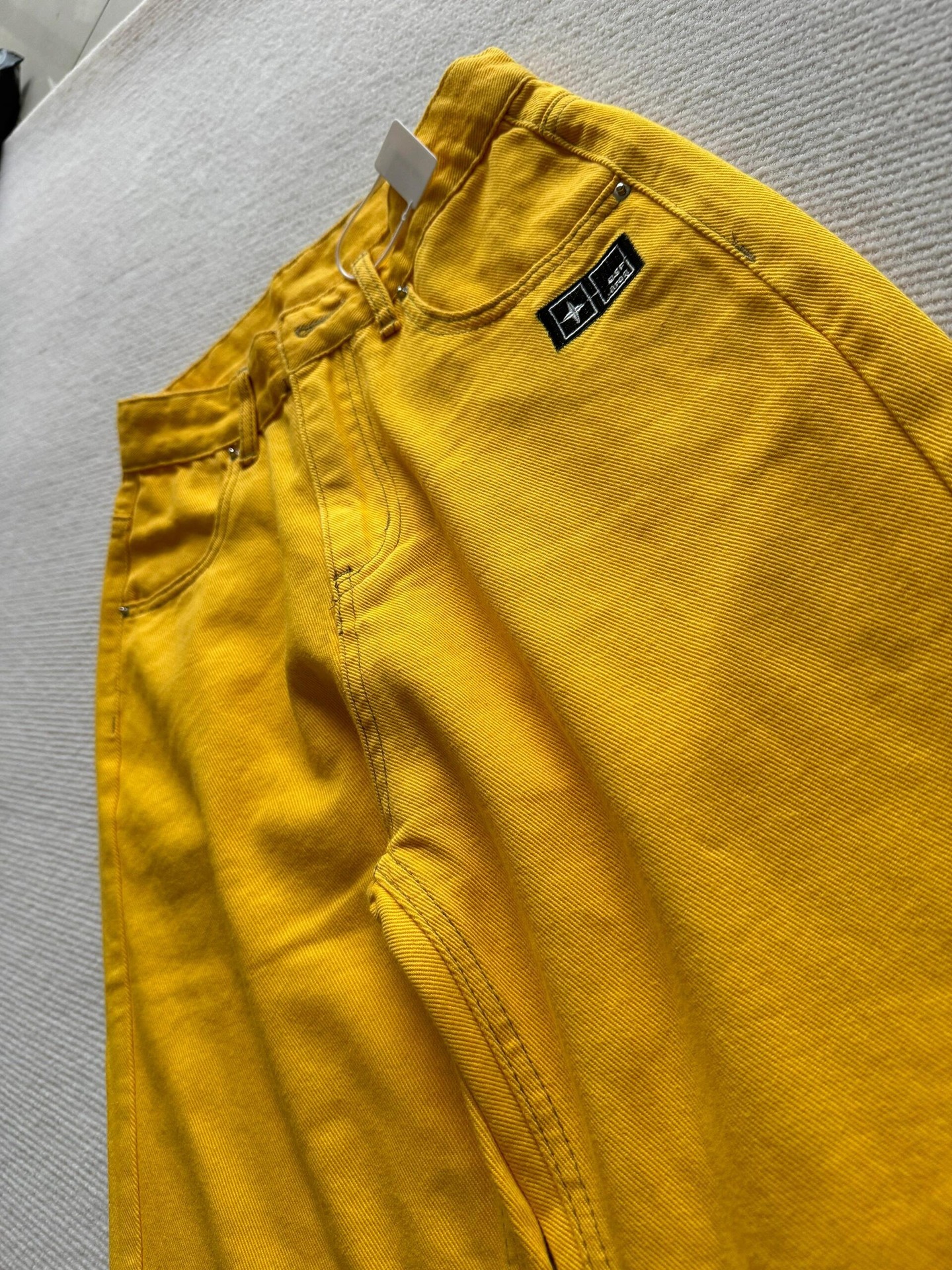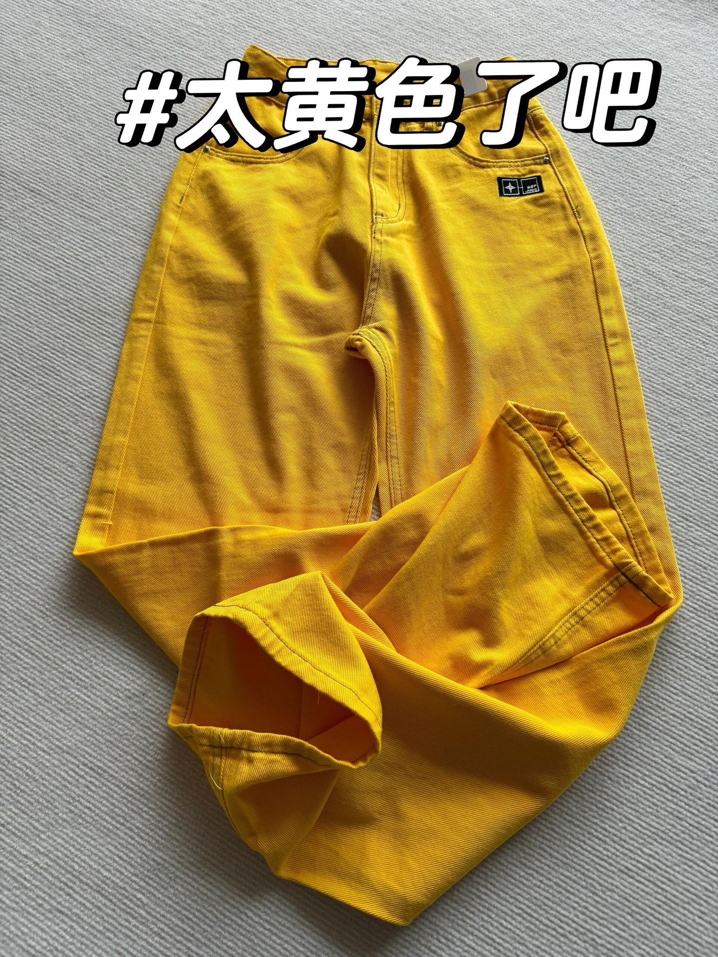 노란 청바지 여성의 높은 허리 바지 스트레이트 레그 넓은 다리 바지 슬리밍 느슨한 캐주얼 하이 스트리트 올 매치 스트레이트 레그 팬츠