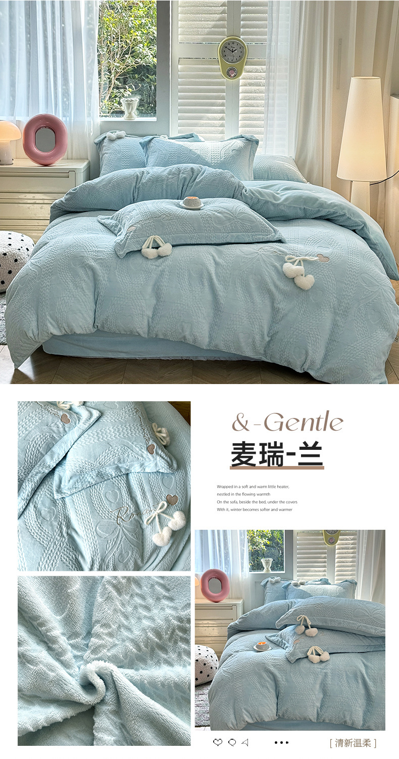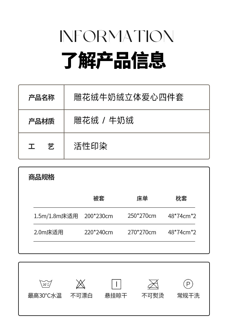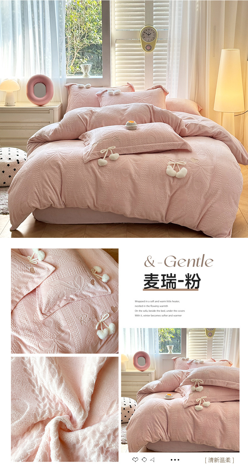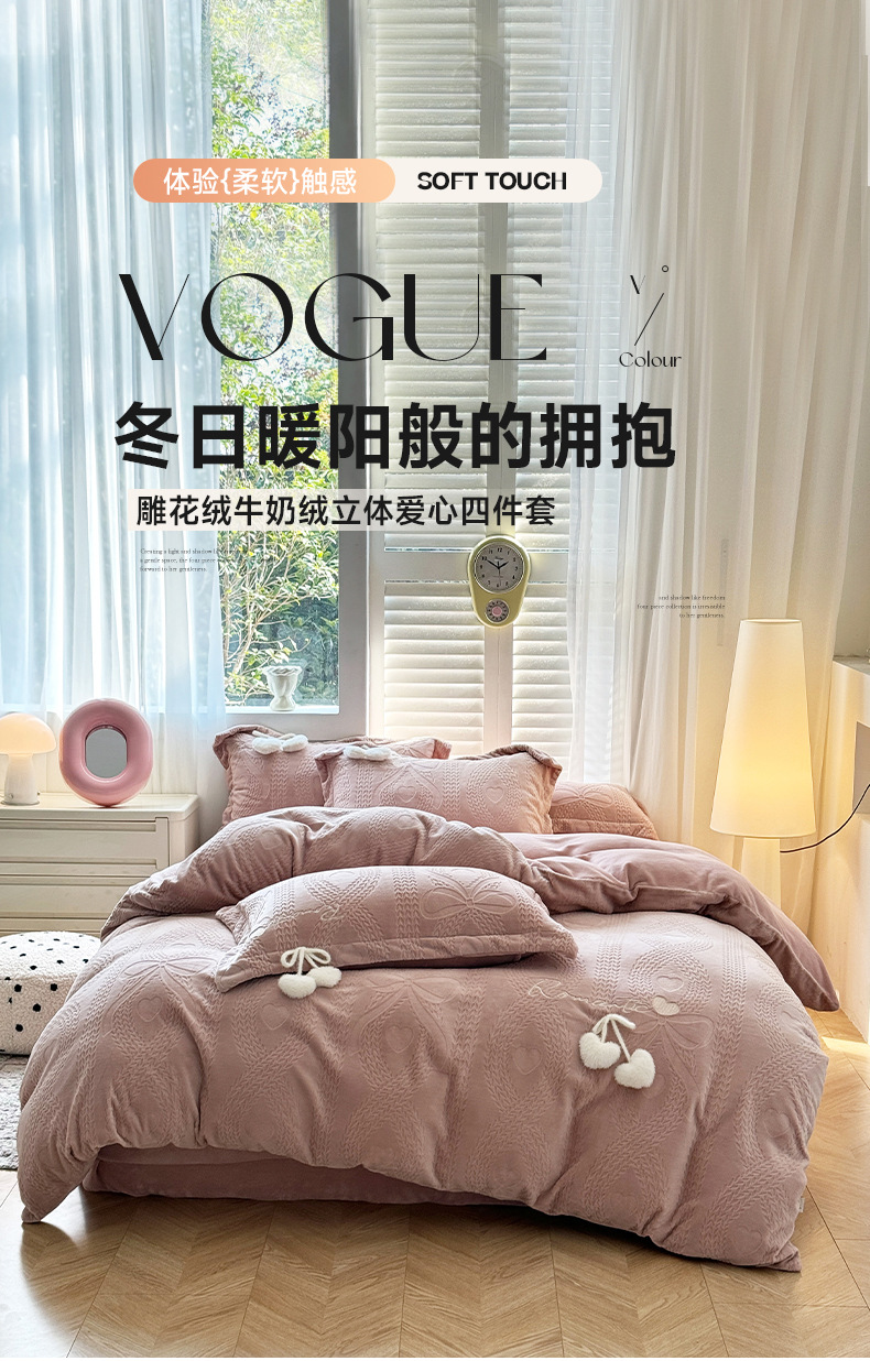 2024 새로운 새겨진 벨벳 밀크 벨벳 입체 사랑 4 피스 세트스토어 가기