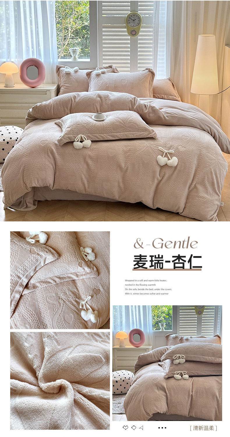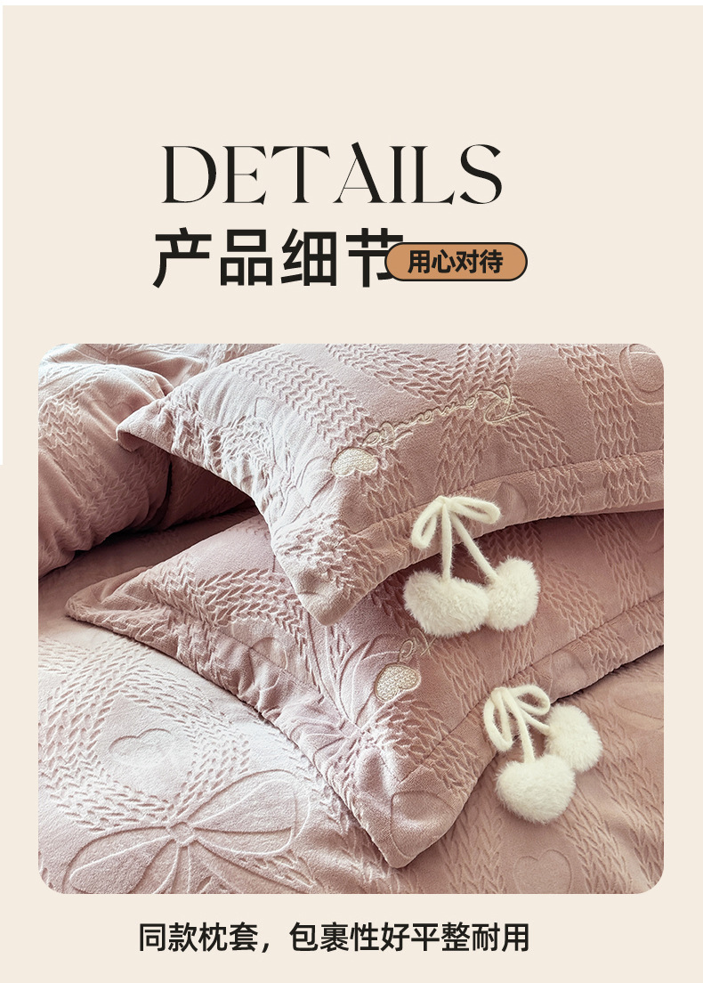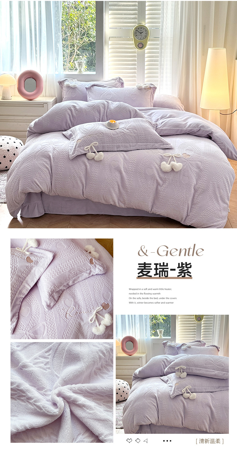 2024 새로운 새겨진 벨벳 밀크 벨벳 입체 사랑 4 피스 세트스토어 가기