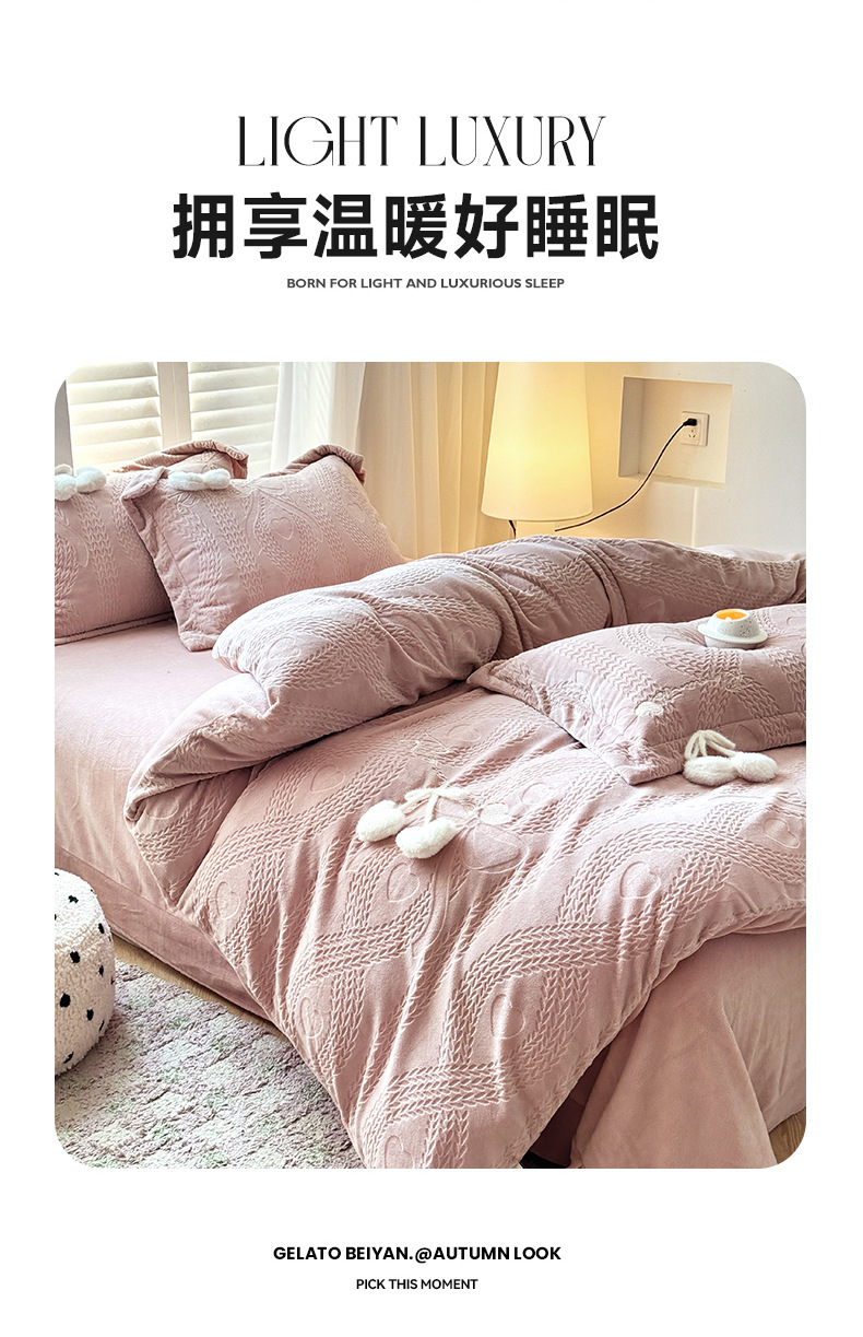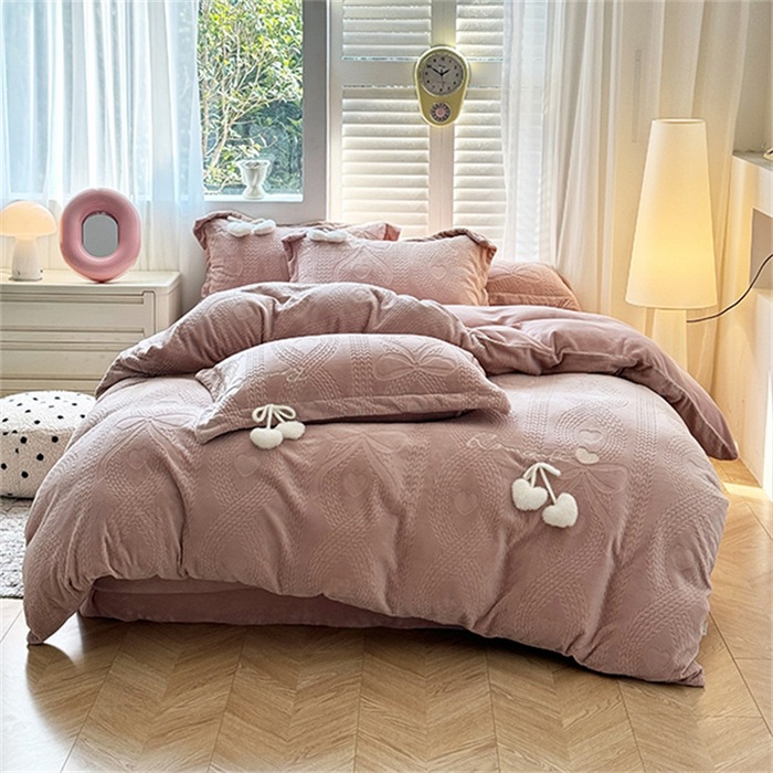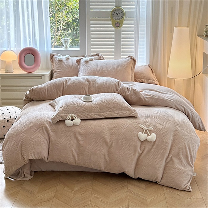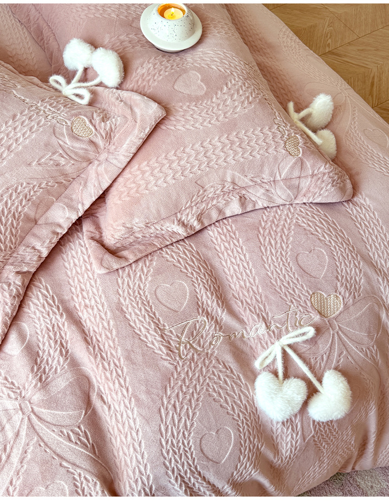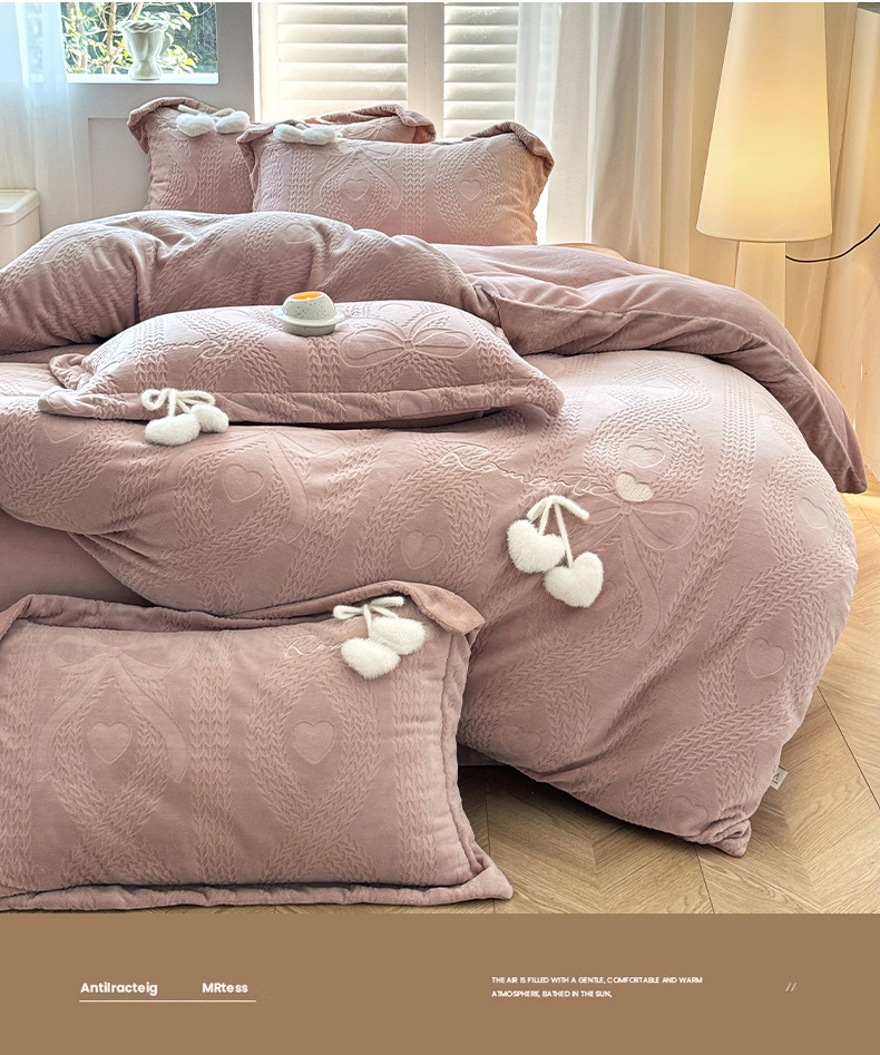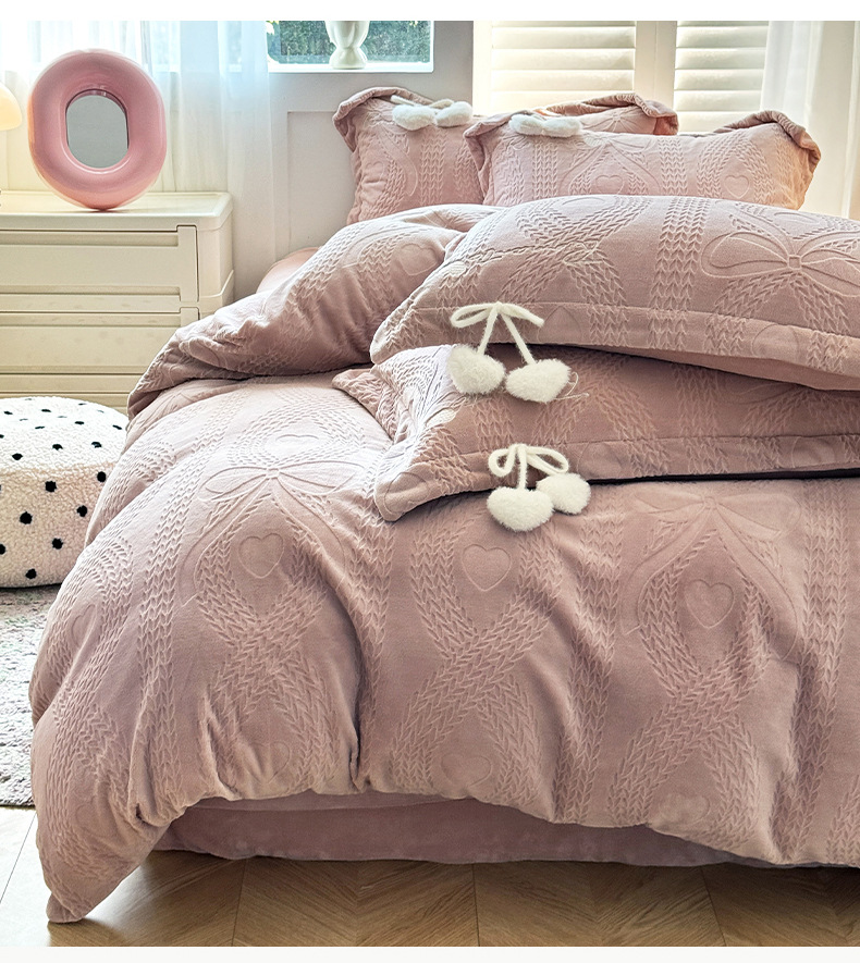 2024 새로운 새겨진 벨벳 밀크 벨벳 입체 사랑 4 피스 세트
