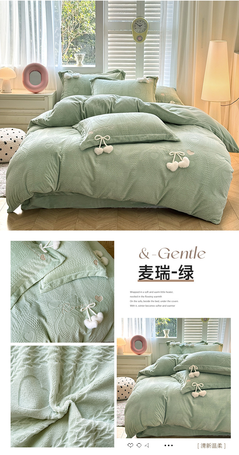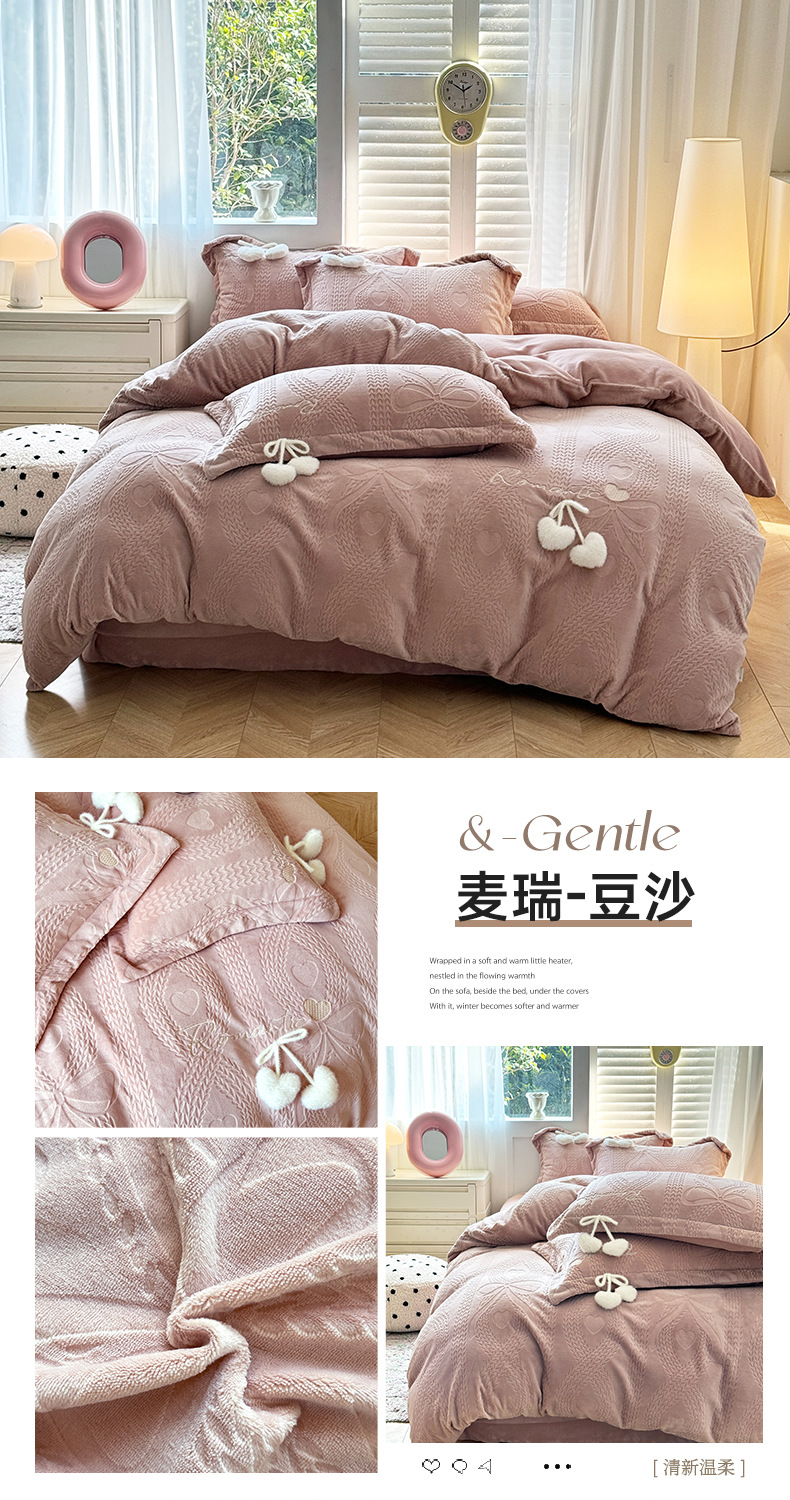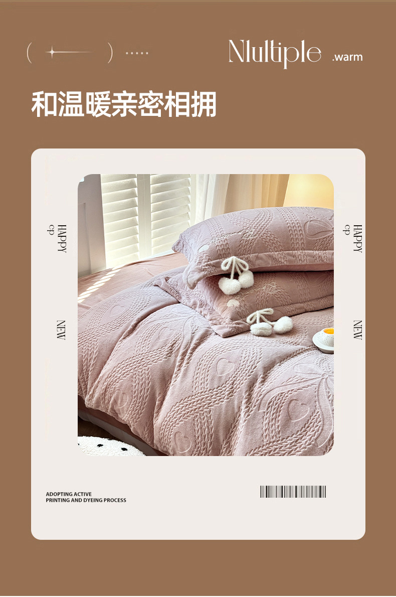 2024 새로운 새겨진 벨벳 밀크 벨벳 입체 사랑 4 피스 세트