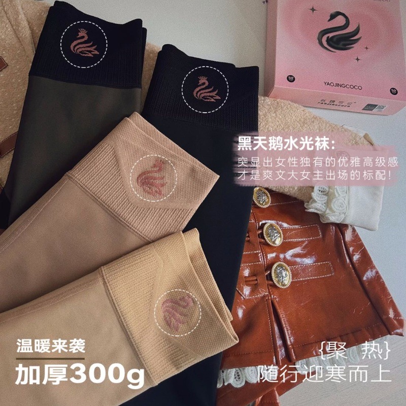 요정 코코아 블랙 스완 워터 라이트 양말 자연 피부 가을과 겨울 기모 두꺼운 검은 피부 팬티 스타킹 안티 주름 블랙 실크스토어 가기