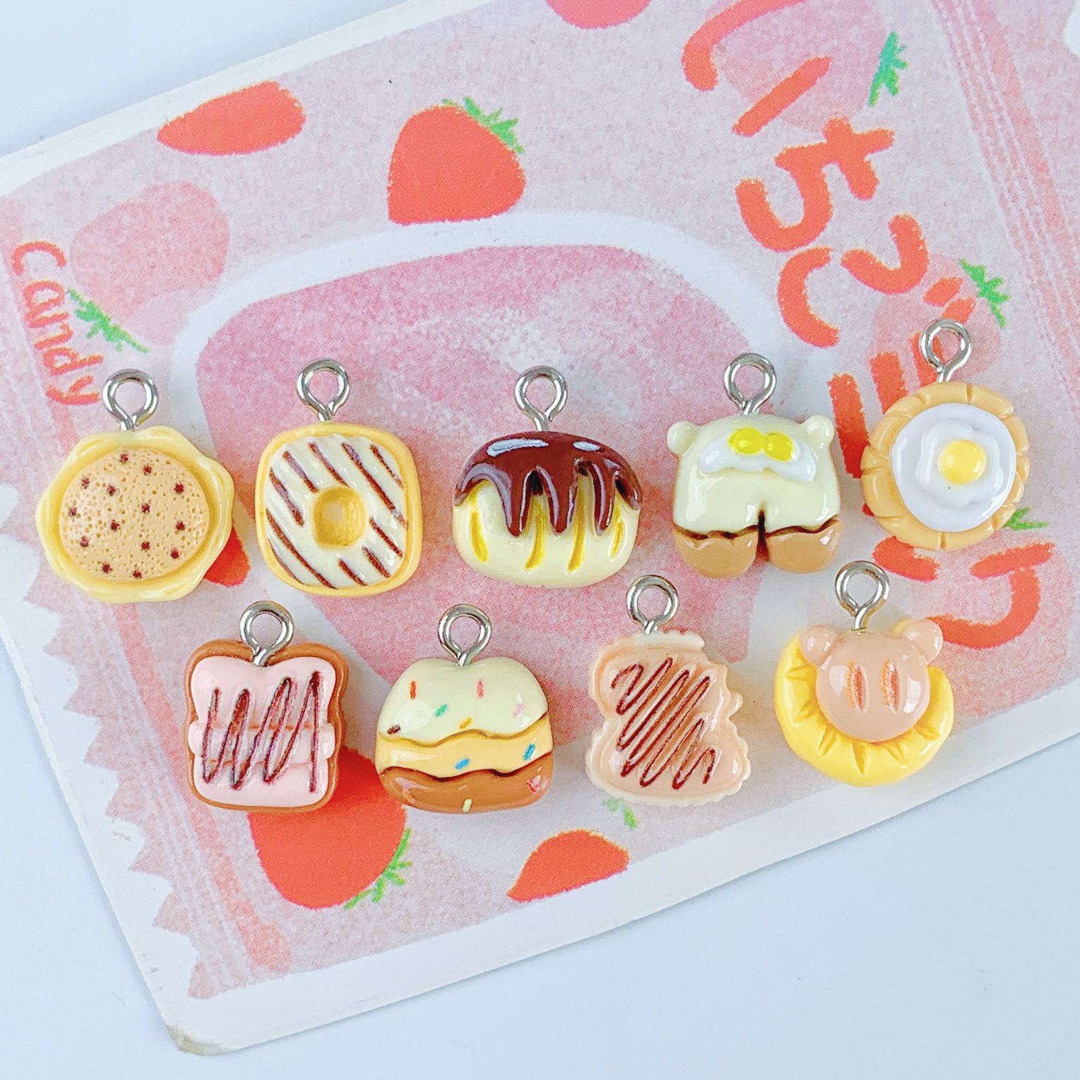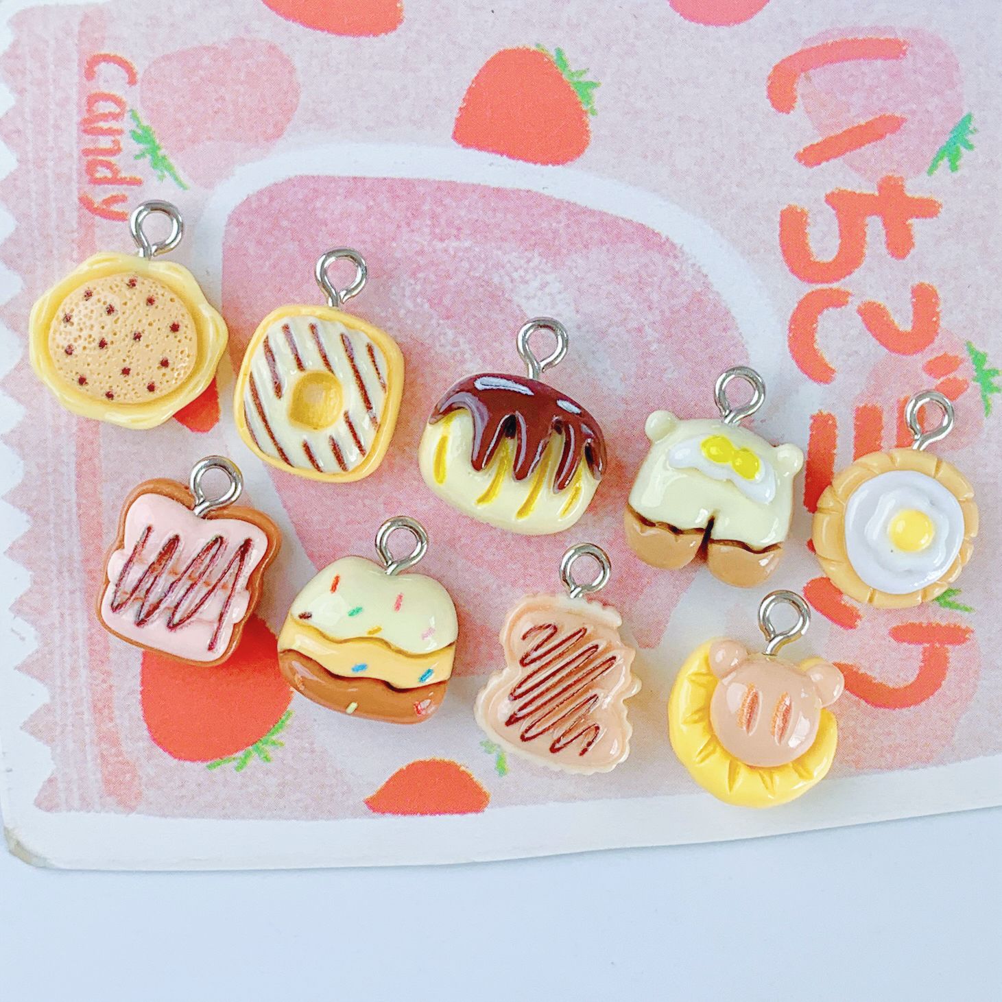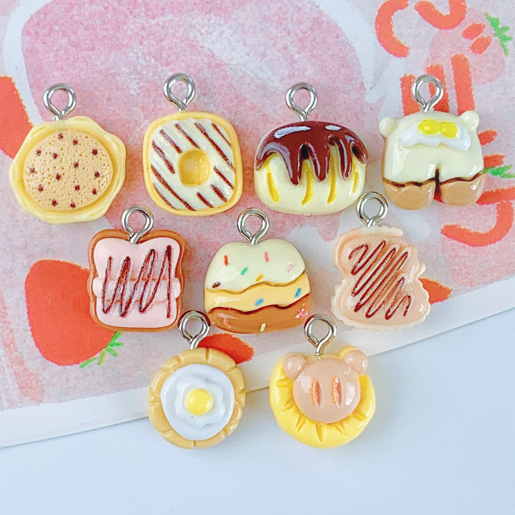 미니 초콜릿 비스킷 토스트 음식 놀이 수지 액세서리 diy 보석 펜던트 펜던트 목걸이 키 체인 소재