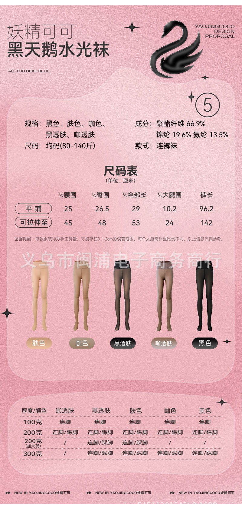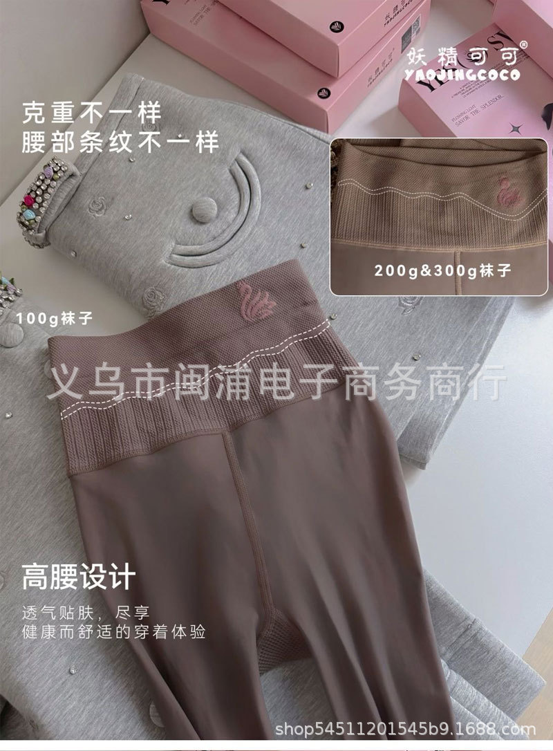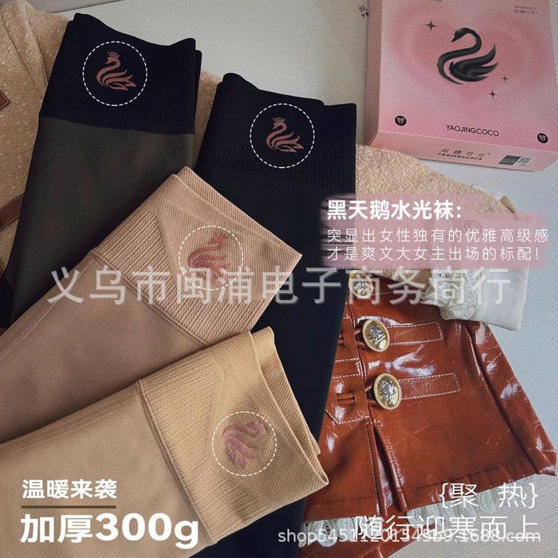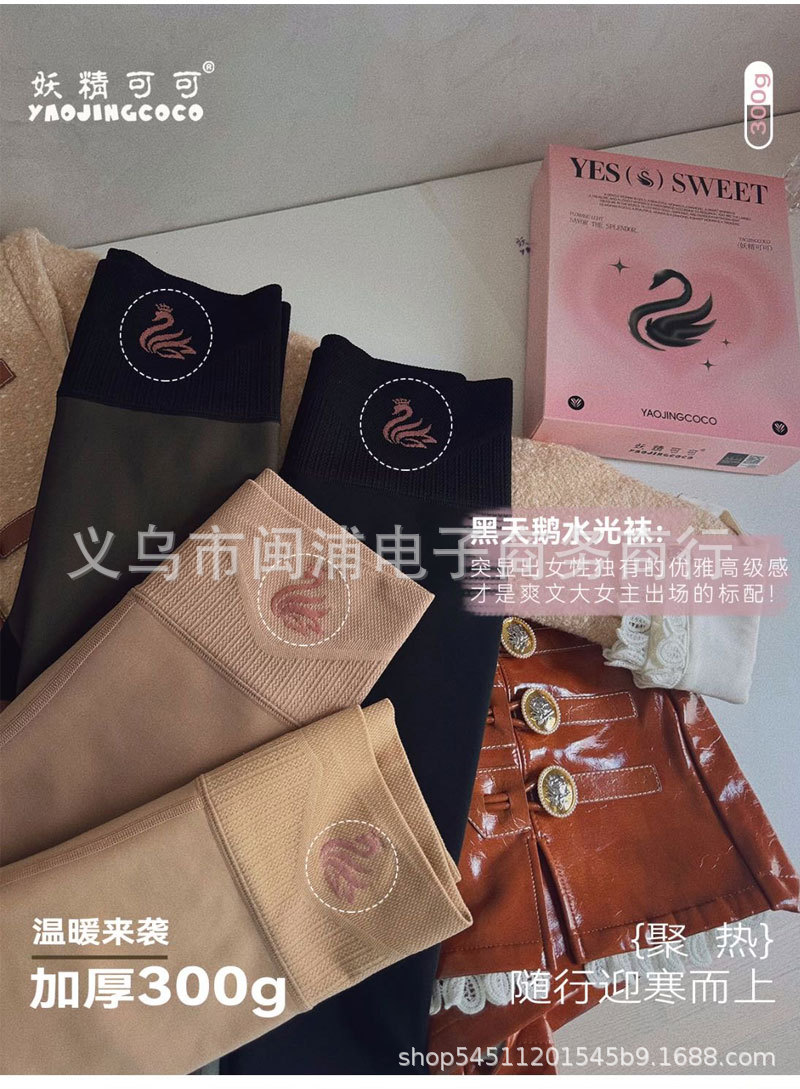 요정 코코아 블랙 스완 워터 라이트 양말 여성용 가을과 겨울 풋리스 팬티 스타킹 블랙 실크 라이트 레그 팬티 스타킹 벨리 힙 리프팅 팬티 스타킹