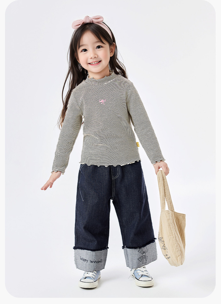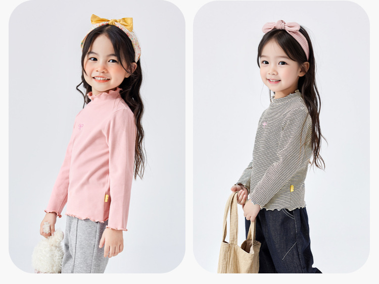 Doodle Girl's semi-high Collar Base 셔츠 가을 착용 아기 소녀의 긴팔 티셔츠 가을 소녀의 최고 아동복 트렌디스토어 가기