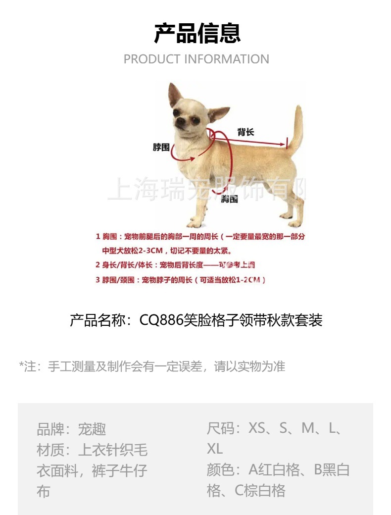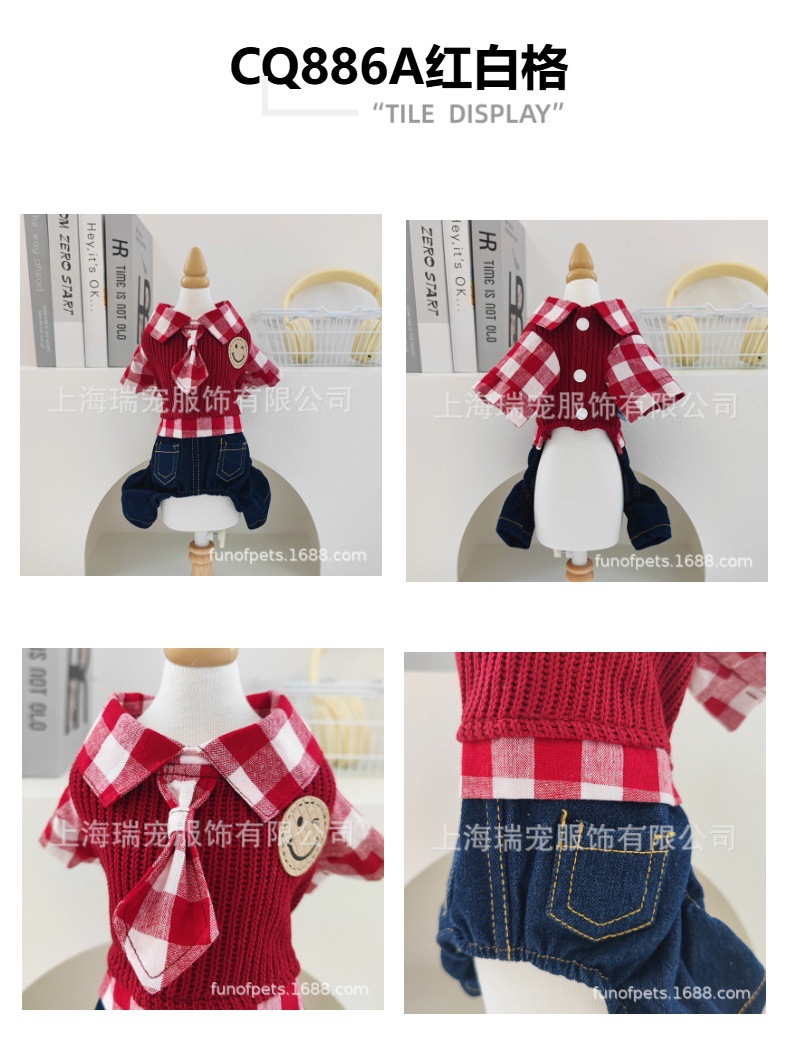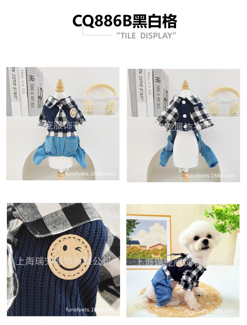CQ886 웃는 격자 무늬 넥타이 가을 세트 [귀여운 귀여운 애완 동물 의류 개 옷]