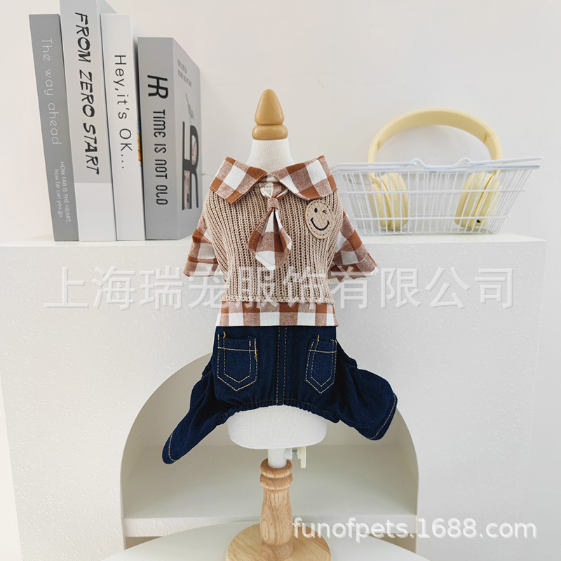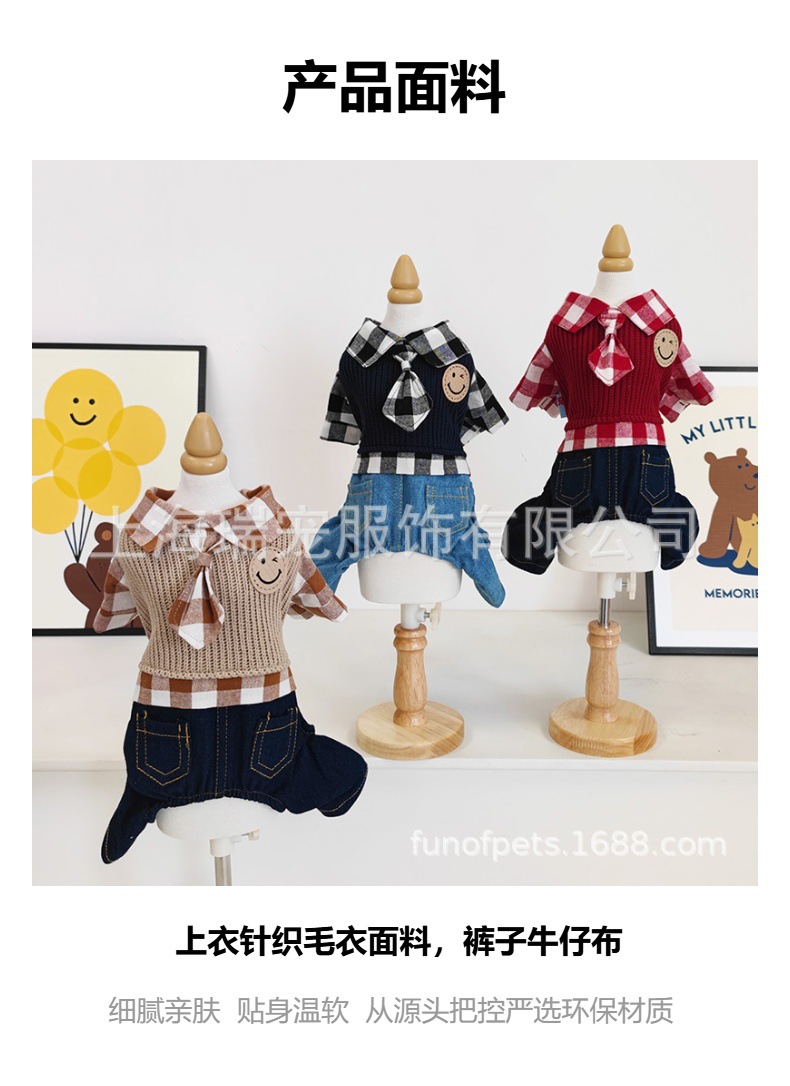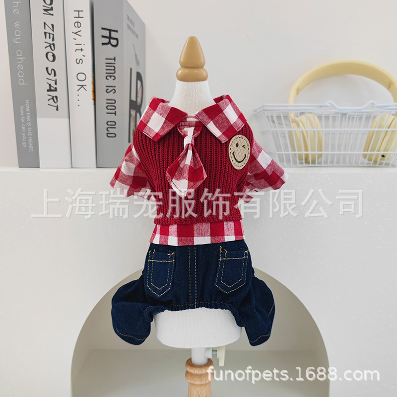 CQ886 웃는 격자 무늬 넥타이 가을 세트 [귀여운 귀여운 애완 동물 의류 개 옷]스토어 가기