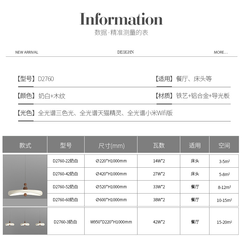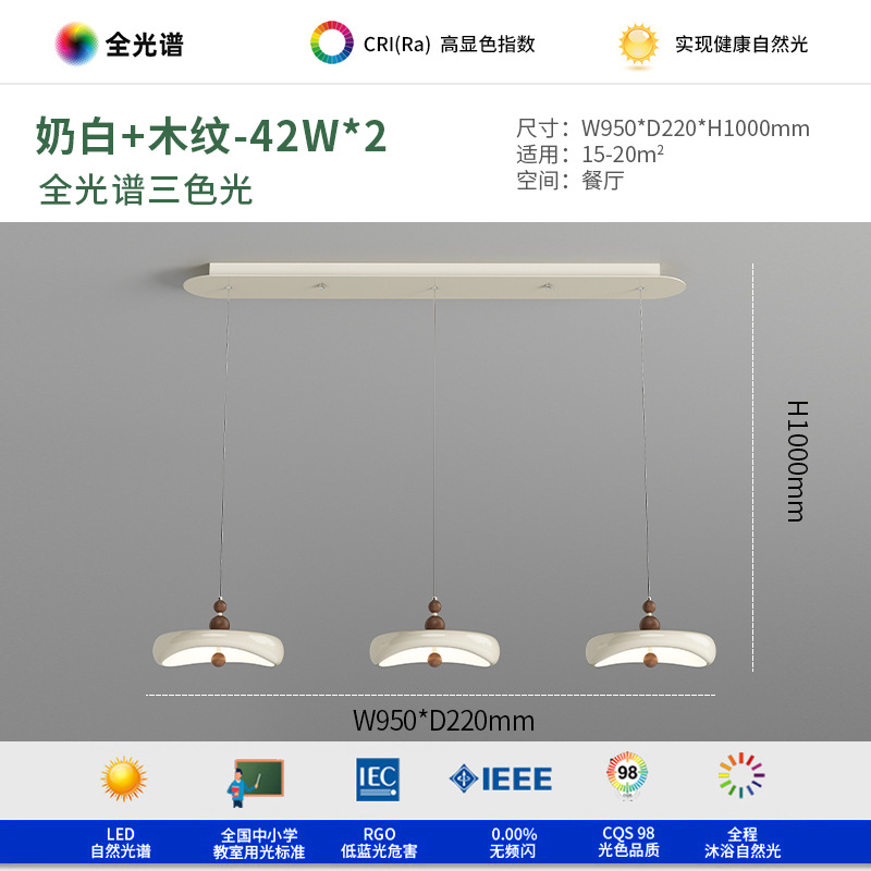 • 밀크 화이트 + 나뭇결, 헤드 3개 95CM, 풀 스펙트럼, 3가지 색상