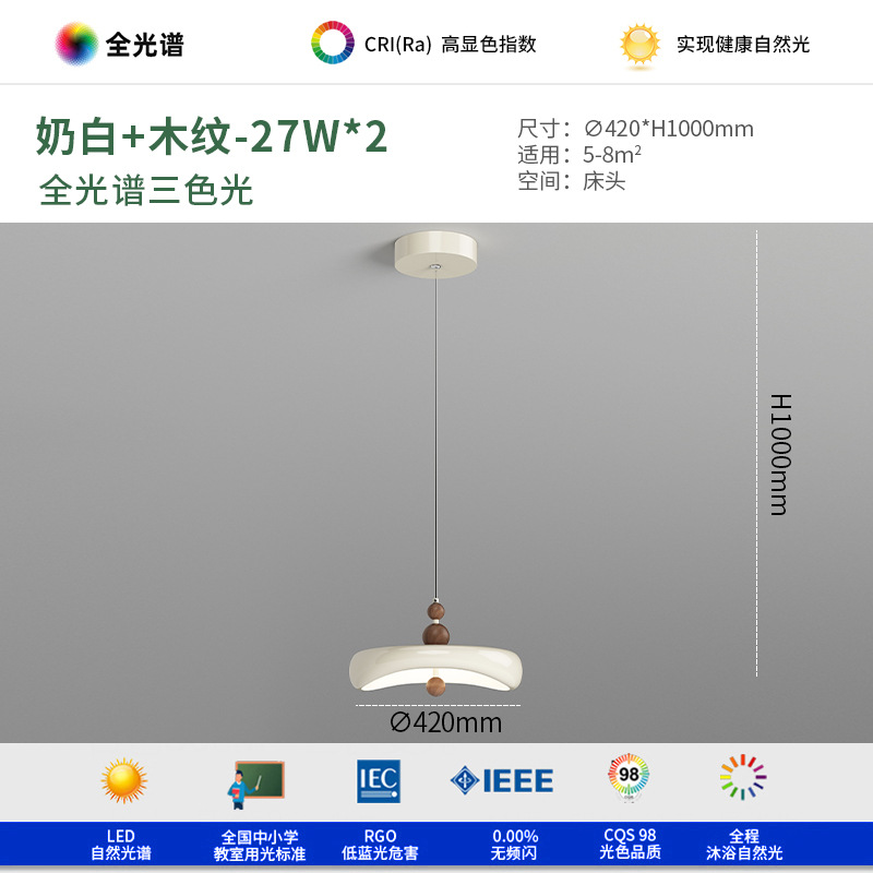 • 밀크 화이트 + 나뭇결 42CM 풀 스펙트럼 3가지 색상
