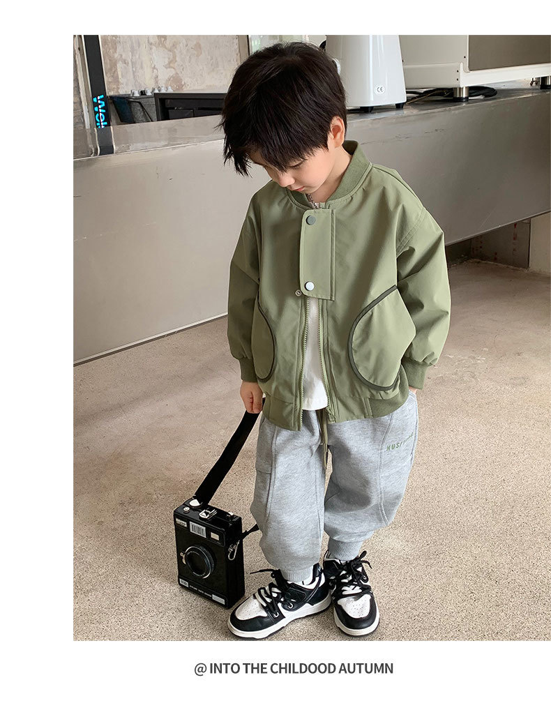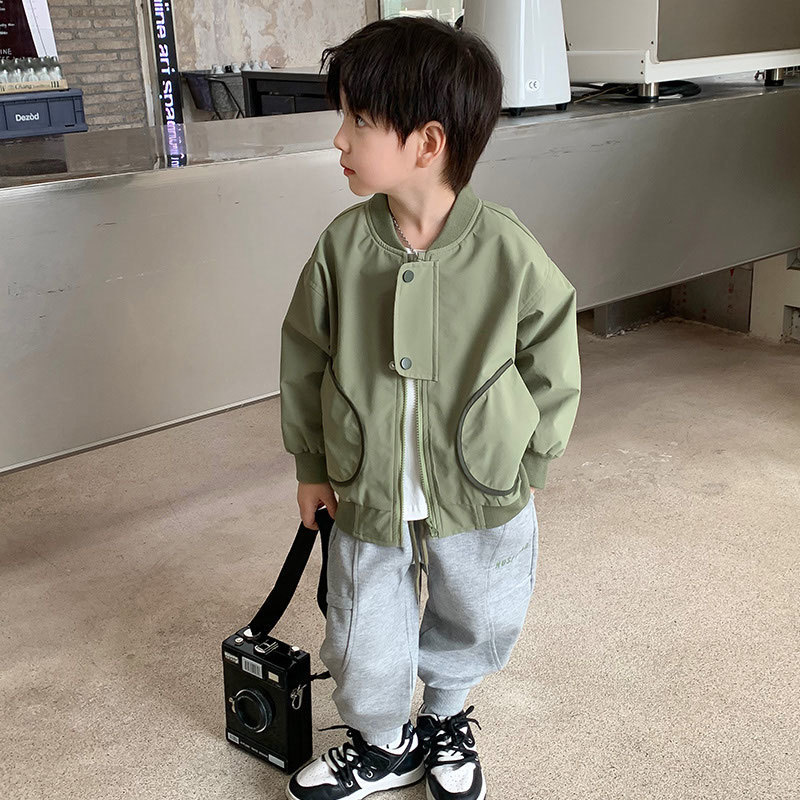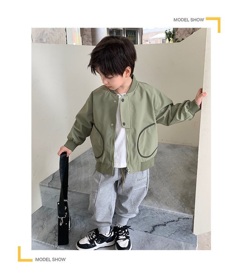 남학생 코트 2024 새로운 봄과 가을 서양식 어린이 야구 칼라 봄 착용 어린 소년의 스포츠 후드 탑 트렌디스토어 가기