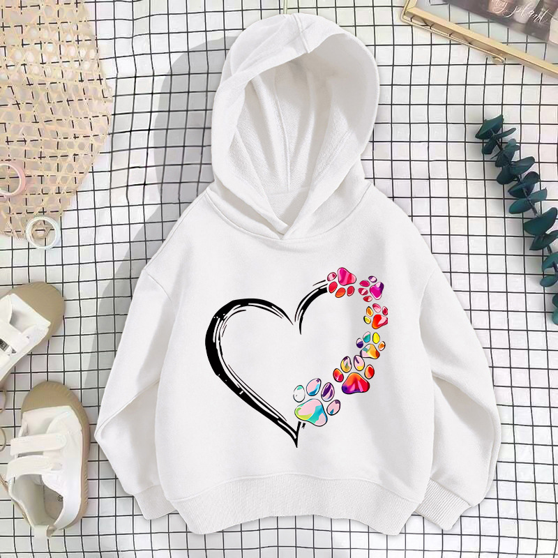 • 흰색 반사랑 발자국 고양이 스웨트셔츠 얇은 스타일