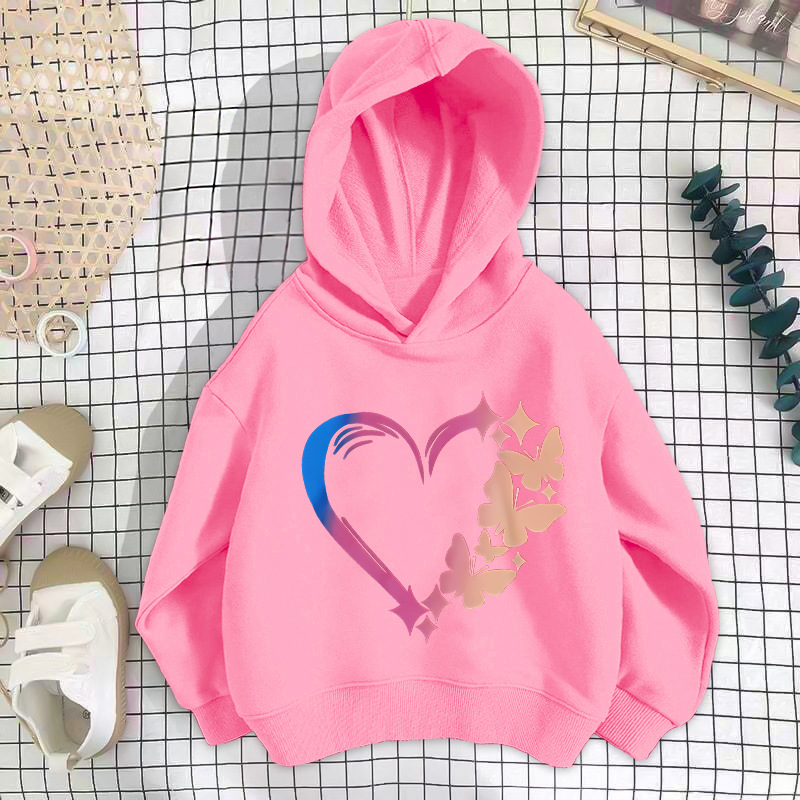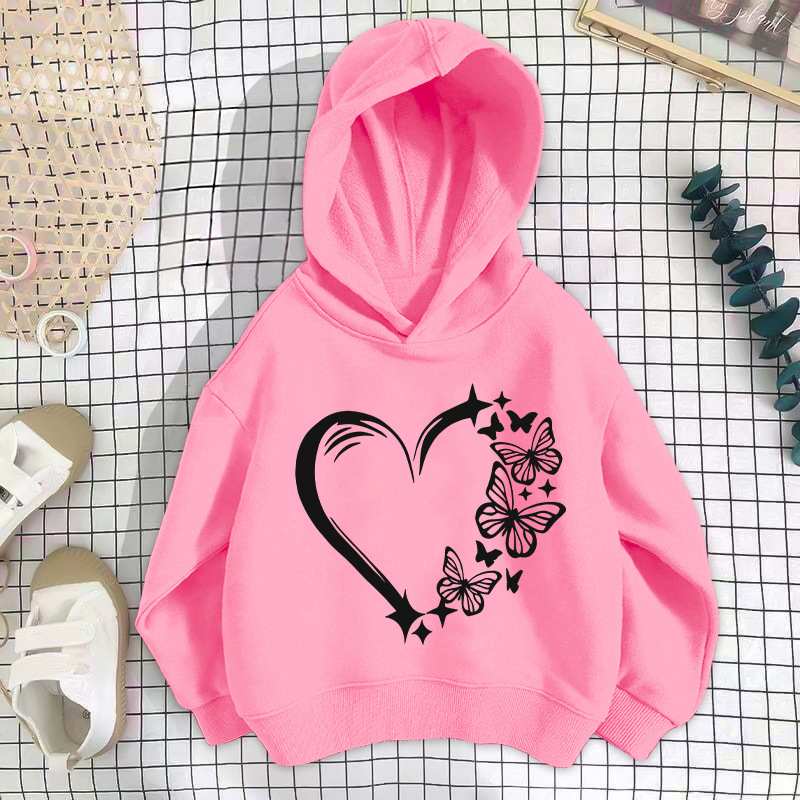 • 핑크 나비 러브 스웨트셔츠 얇은 스타일