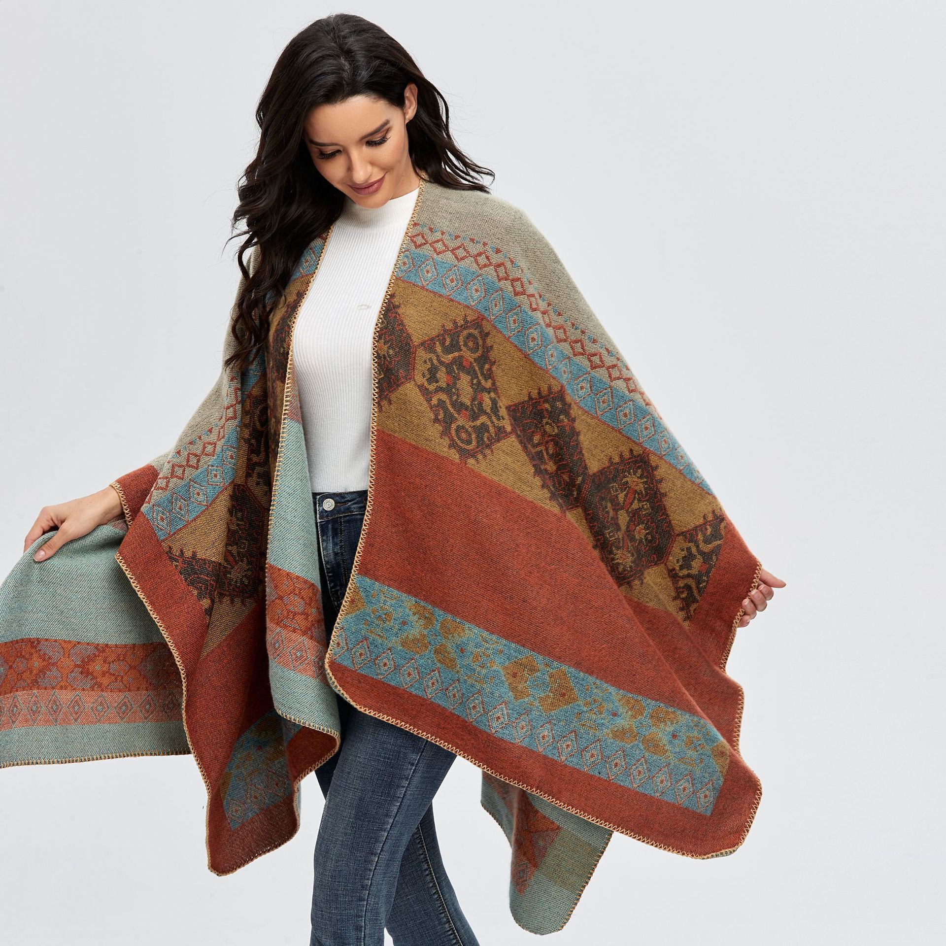 재고 간단한 하이 엔드 스타일 대형 목도리 초원 윈난 민족 스타일 목도리 판초 케이프 캐시미어 스카프