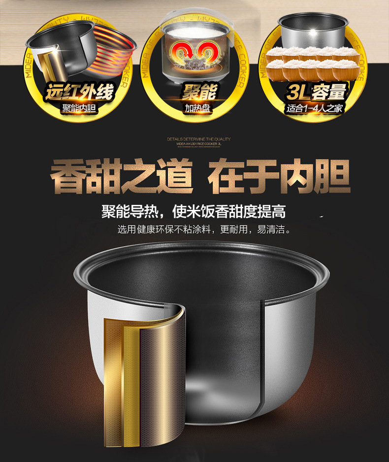 Midea MB-WYJ301 미니 전기 밥솥 가정용 전기 밥솥 2-4 명 전기 밥솥 전기 밥솥 3L스토어 가기
