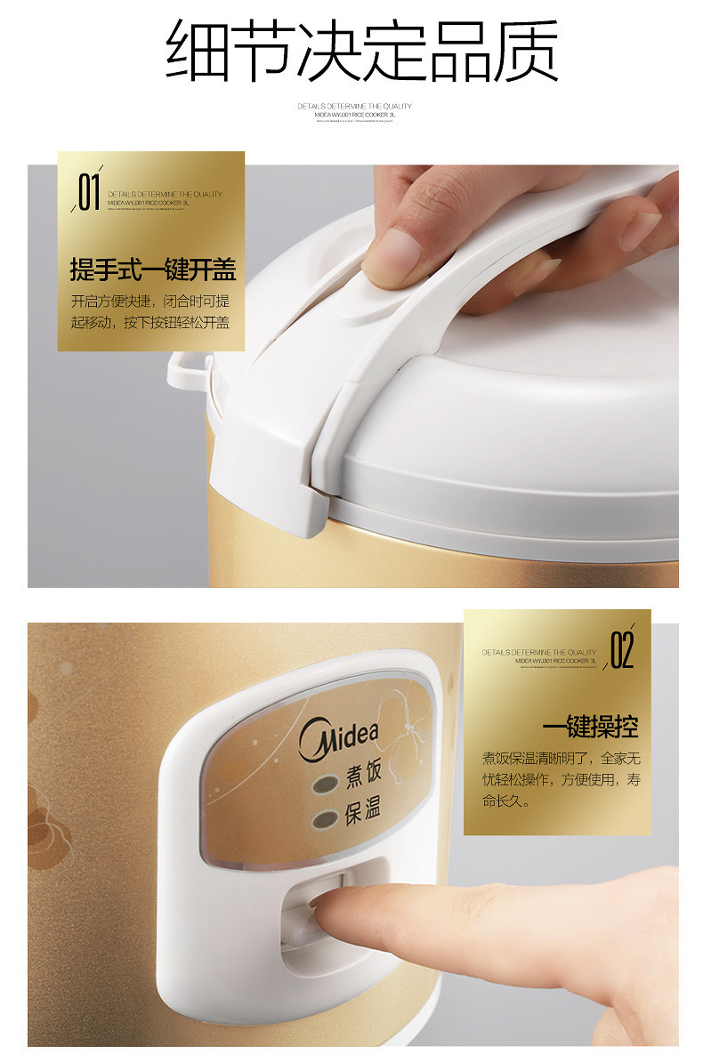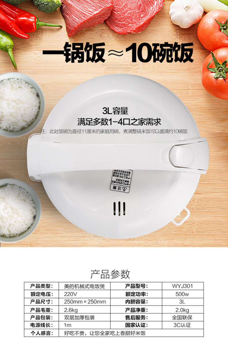 Midea MB-WYJ301 미니 전기 밥솥 가정용 전기 밥솥 2-4 명 전기 밥솥 전기 밥솥 3L