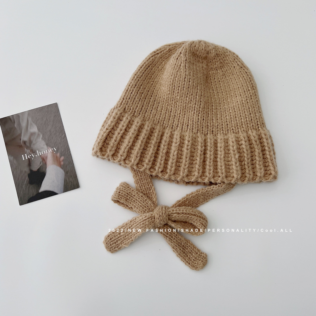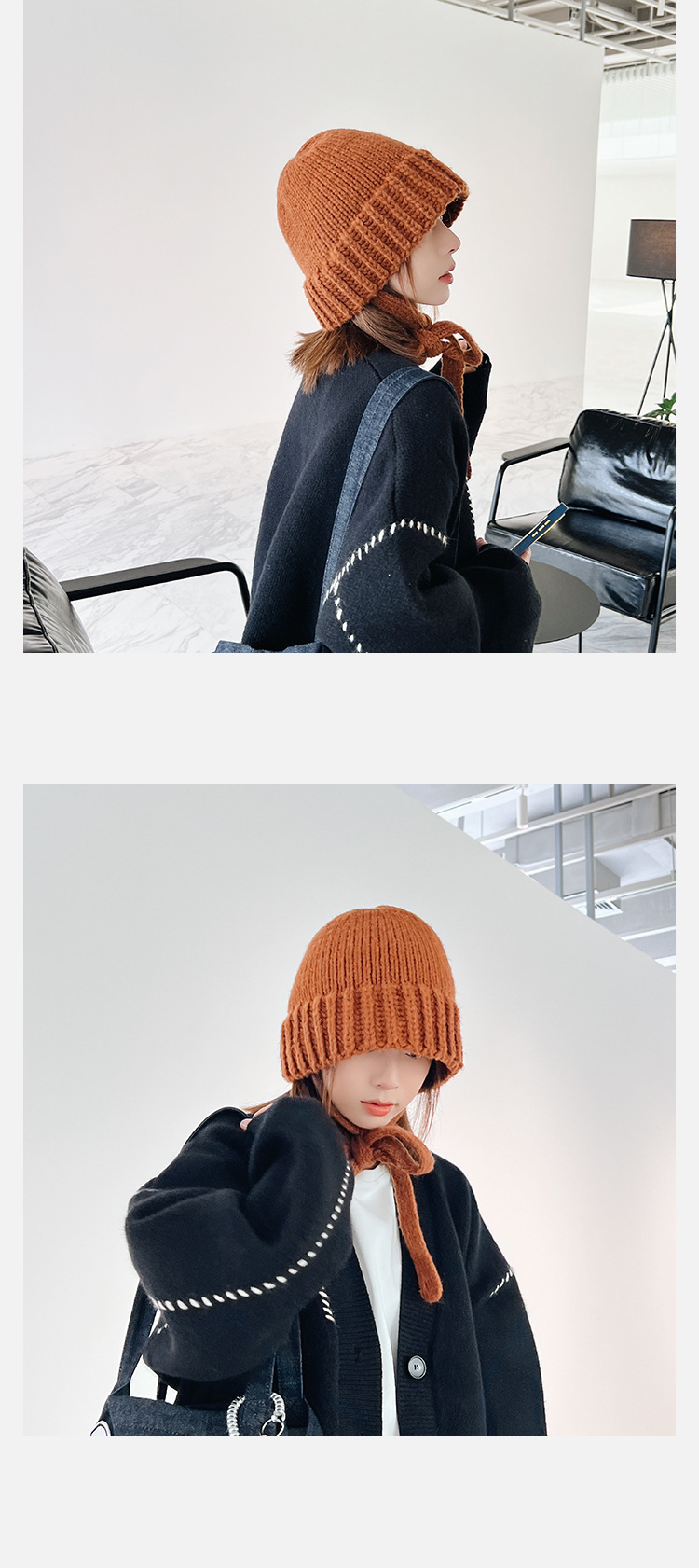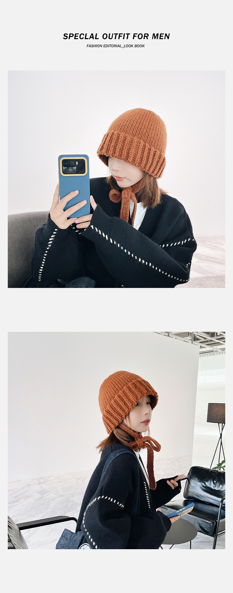 새로운 스트랩 니트 모자 여성 한국 귀 보호 얼굴 작은 귀여운 모자 단어 조커 울 모자 가을과 겨울 따뜻한 도매