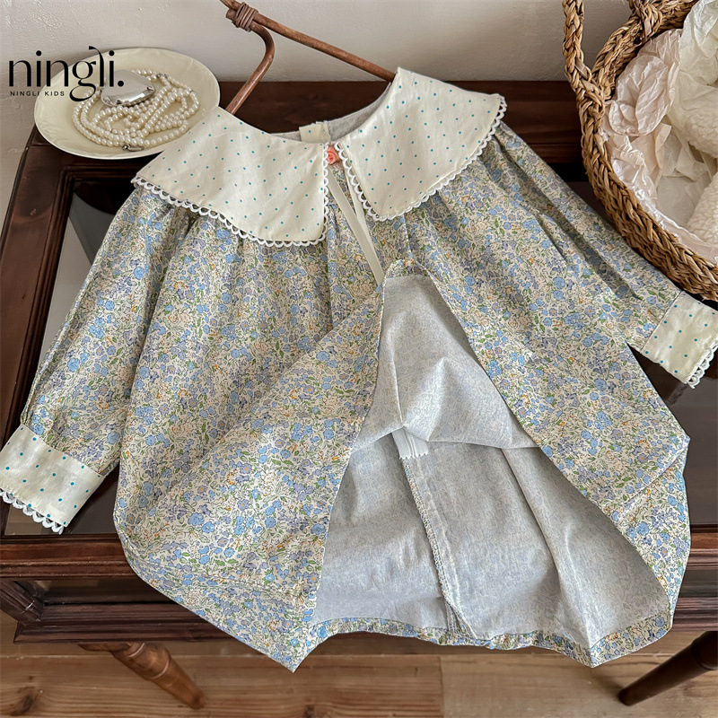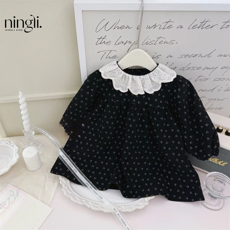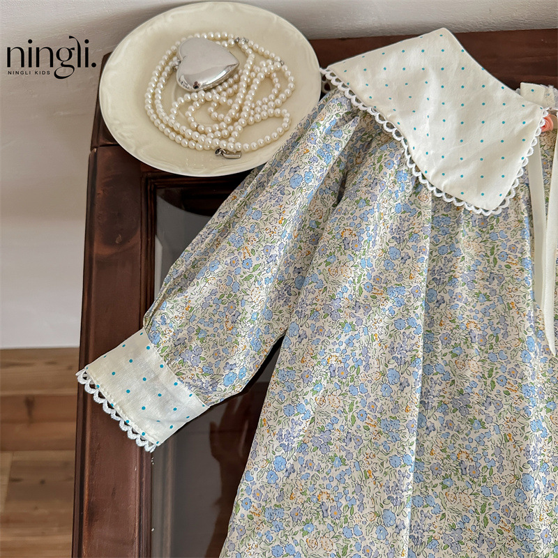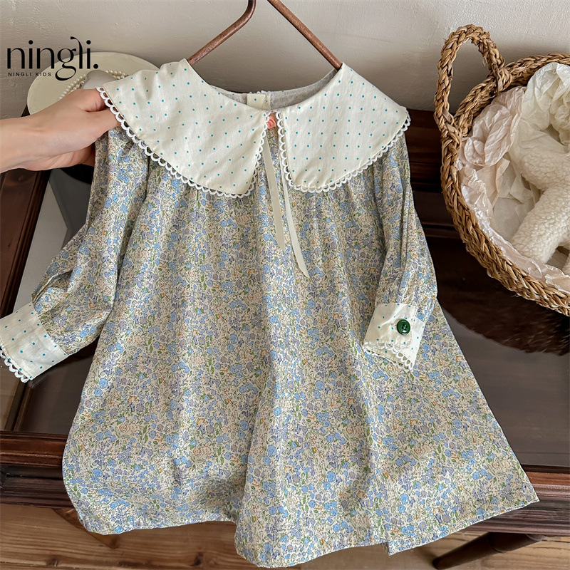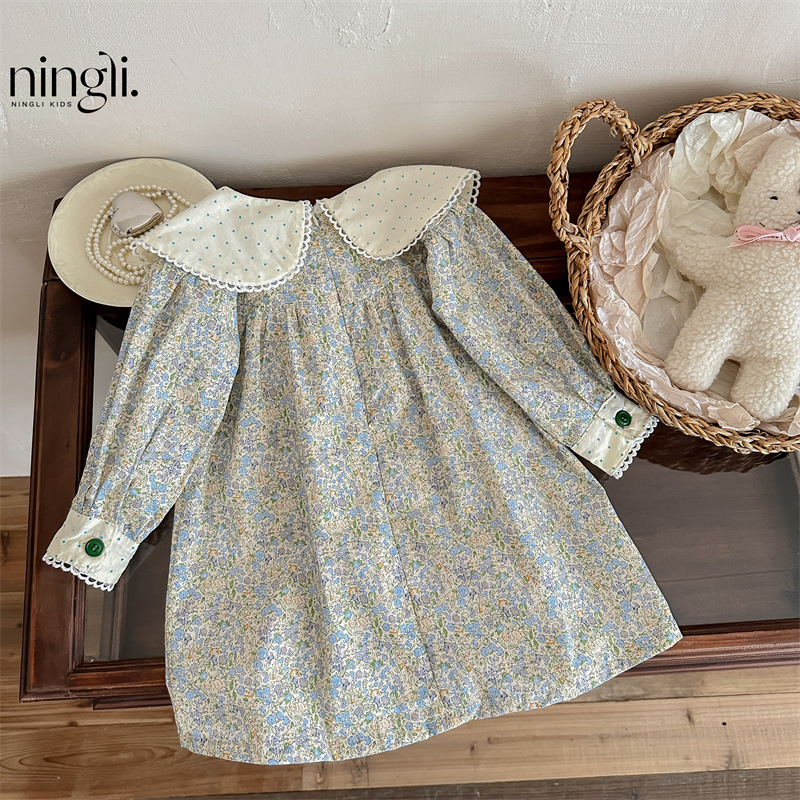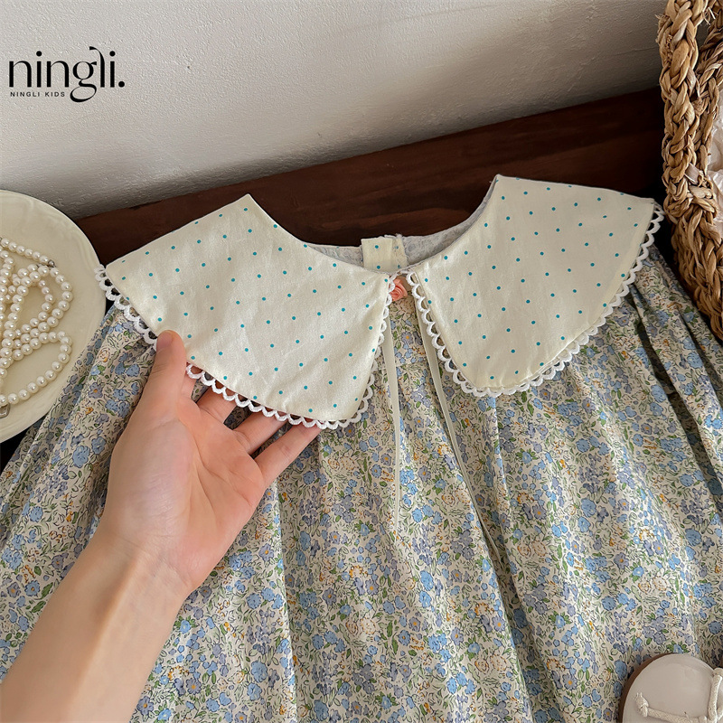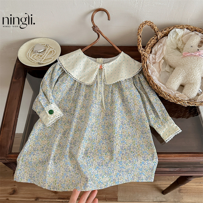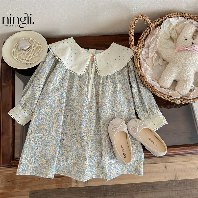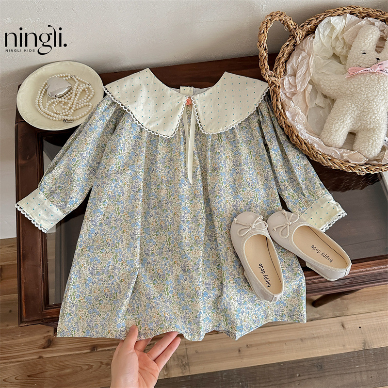 Ningli 여자 인형 칼라 드레스 2025 봄과 가을 새로운 여자 한국 스타일 유행 공주 드레스 유행스토어 가기