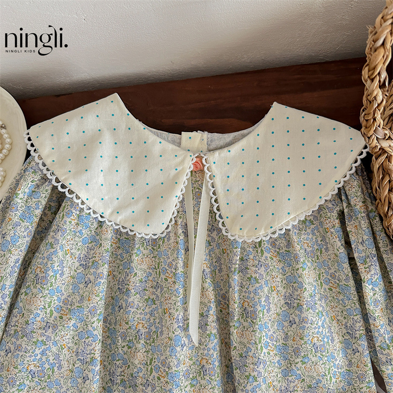 Ningli 여자 인형 칼라 드레스 2025 봄과 가을 새로운 여자 한국 스타일 유행 공주 드레스 유행